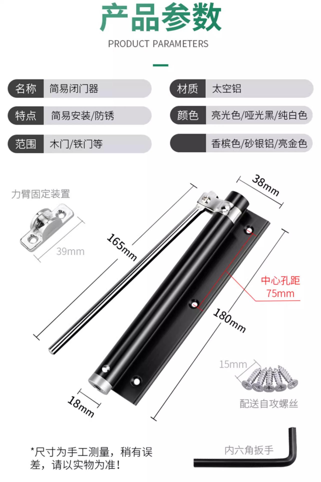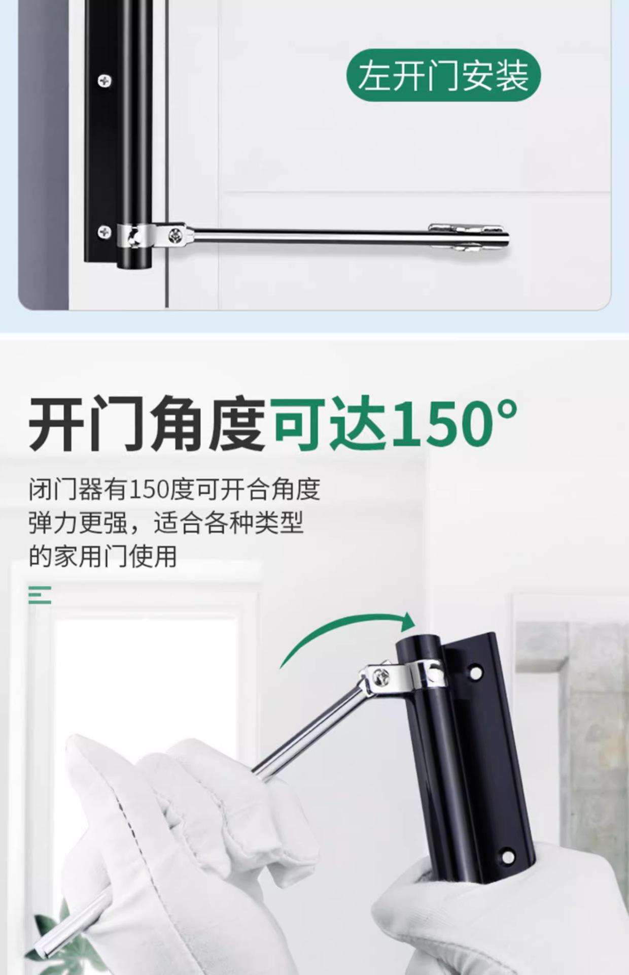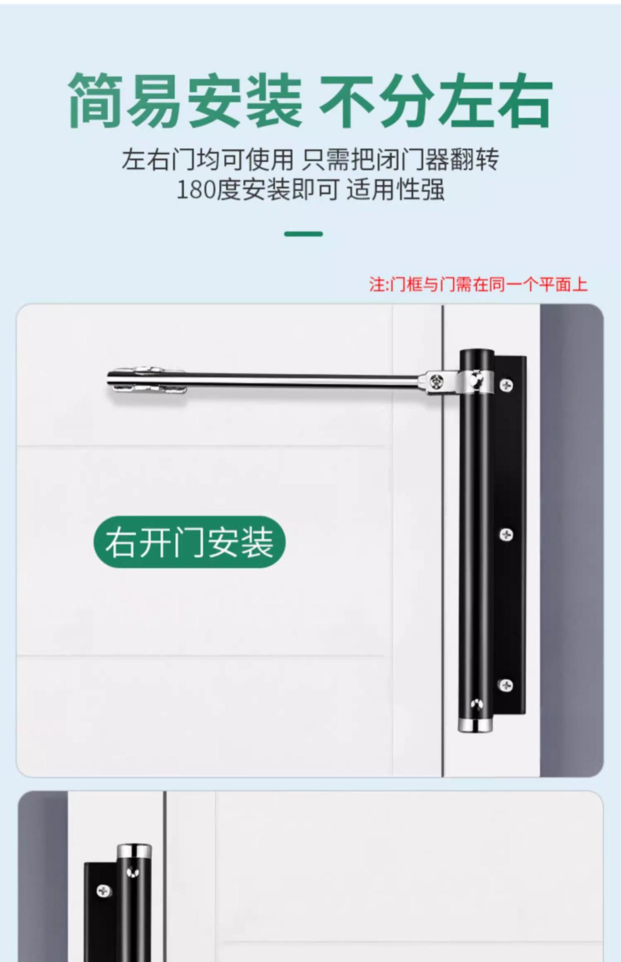 Cierrapuertas automático simple con amortiguador hidráulico y resorte sin perforaciones, silencioso, ligero y para el hogar