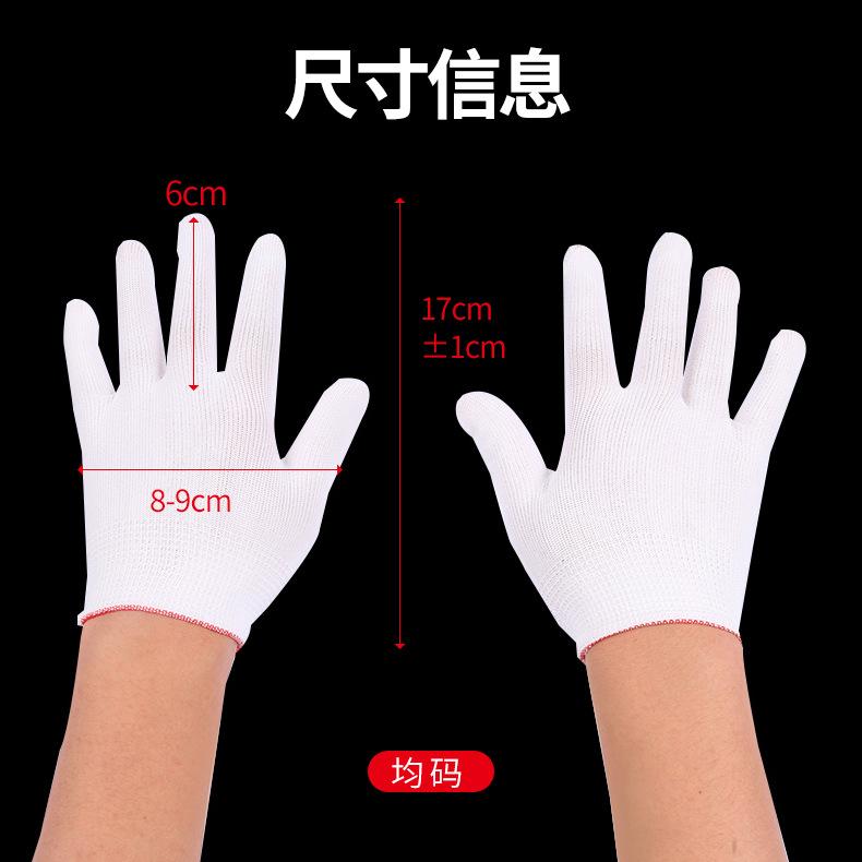 Guantes de protección laboral, guantes elásticos antiestáticos, guantes de trabajo, guantes de juego, guantes de nailon de 13 agujas, guantes blancos finos.