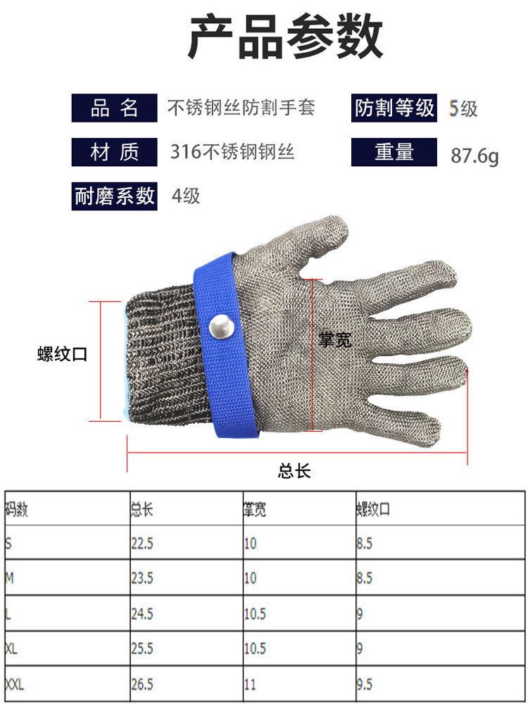 Guantes anticorte para sacrificio y matanza de peces, nivel 5, protección laboral anticorte, protección de manos, guantes de acero inoxidable 316, alambre de metal y hierro.