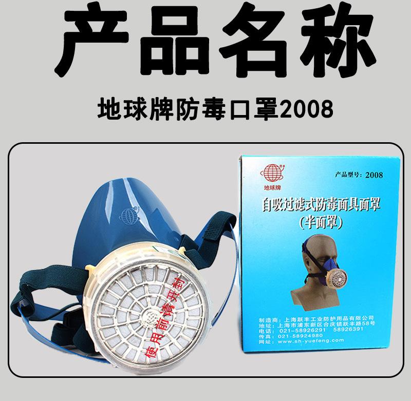 Máscara de gas de la marca Earth, montada en la cabeza, 2008, con aerosol individual, para pintura, carbón químico, gas, Shanghai Yuefeng