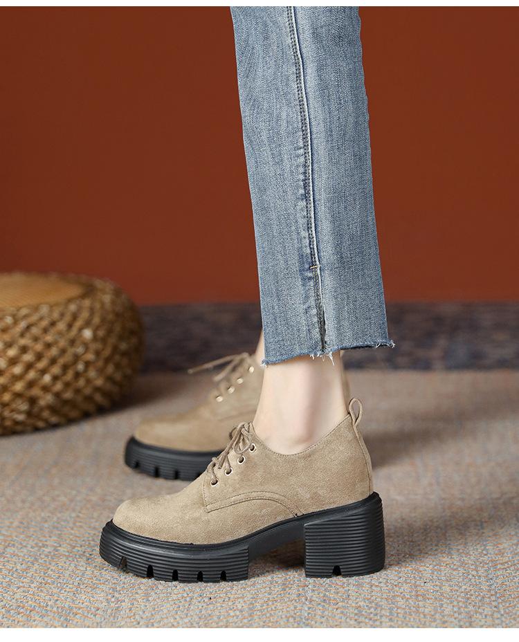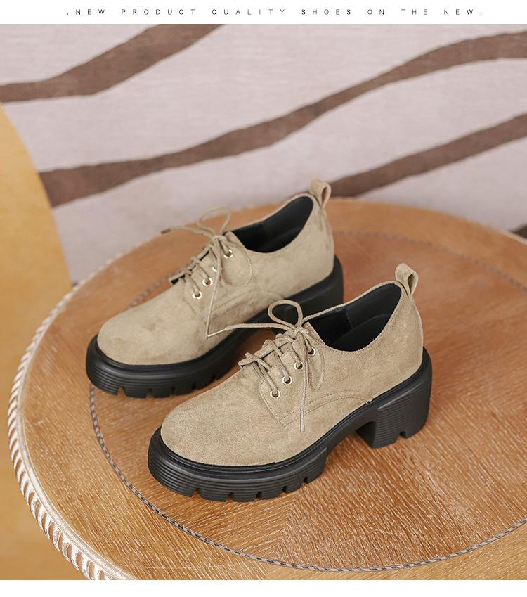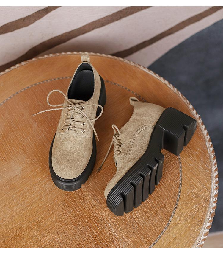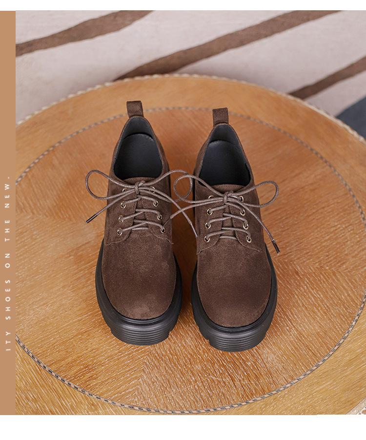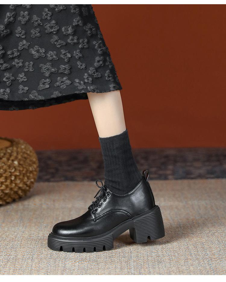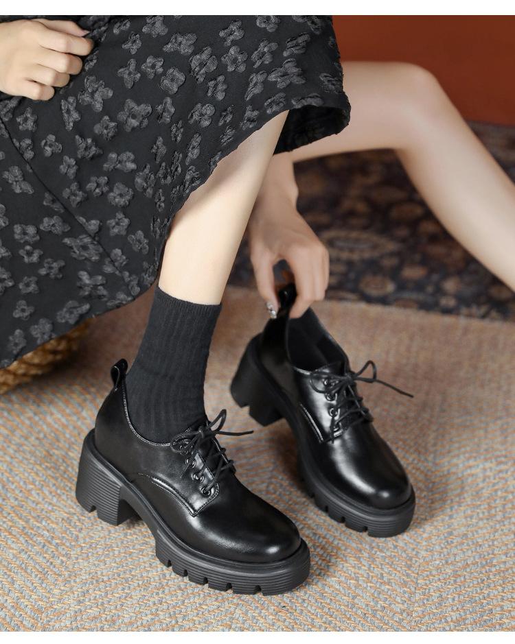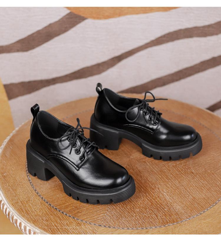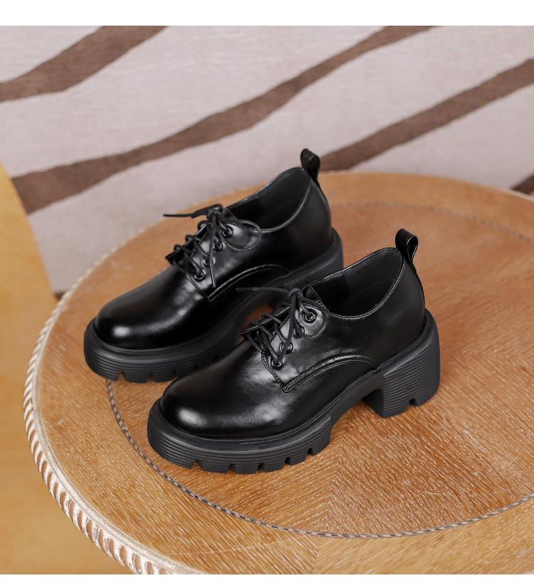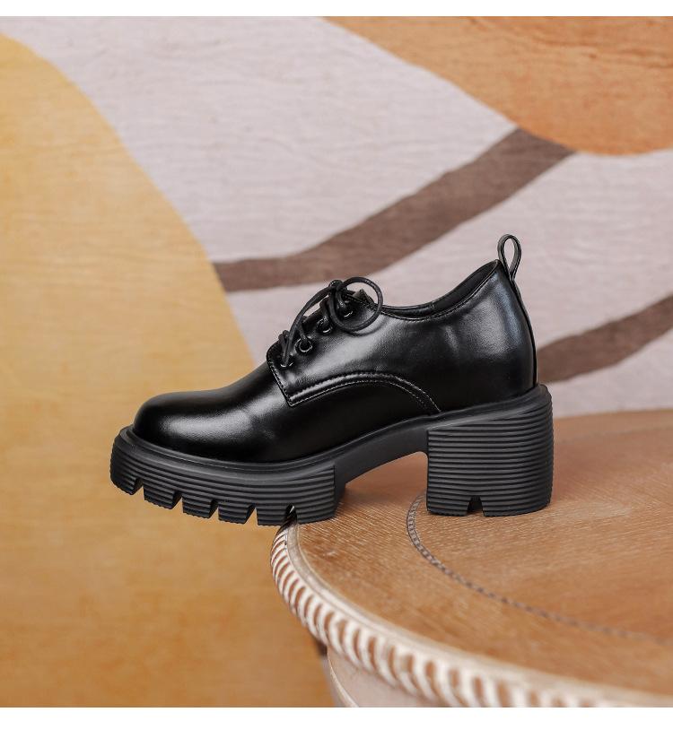 Mocasines de tacón alto con plataforma y cordones estilo británico de 10 cm de altura oculta, de piel, para mujer, 2024, nuevos zapatos de una sola capa.
