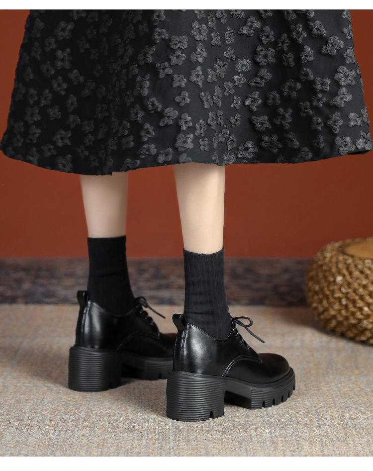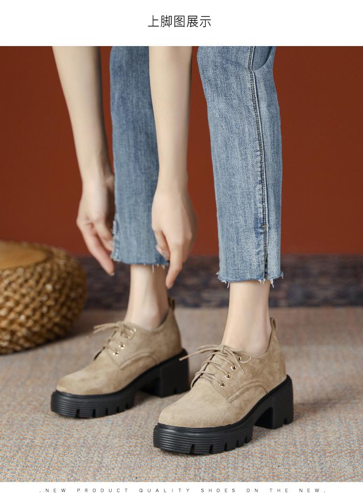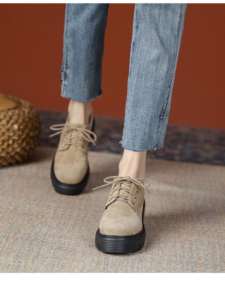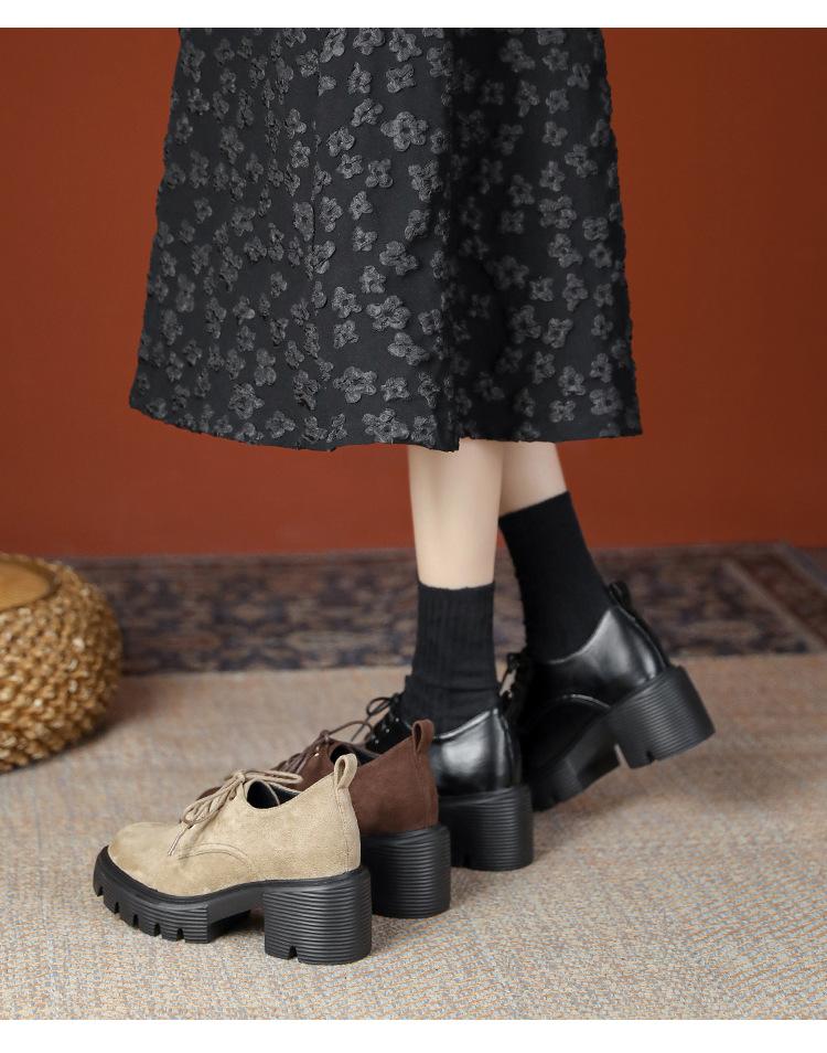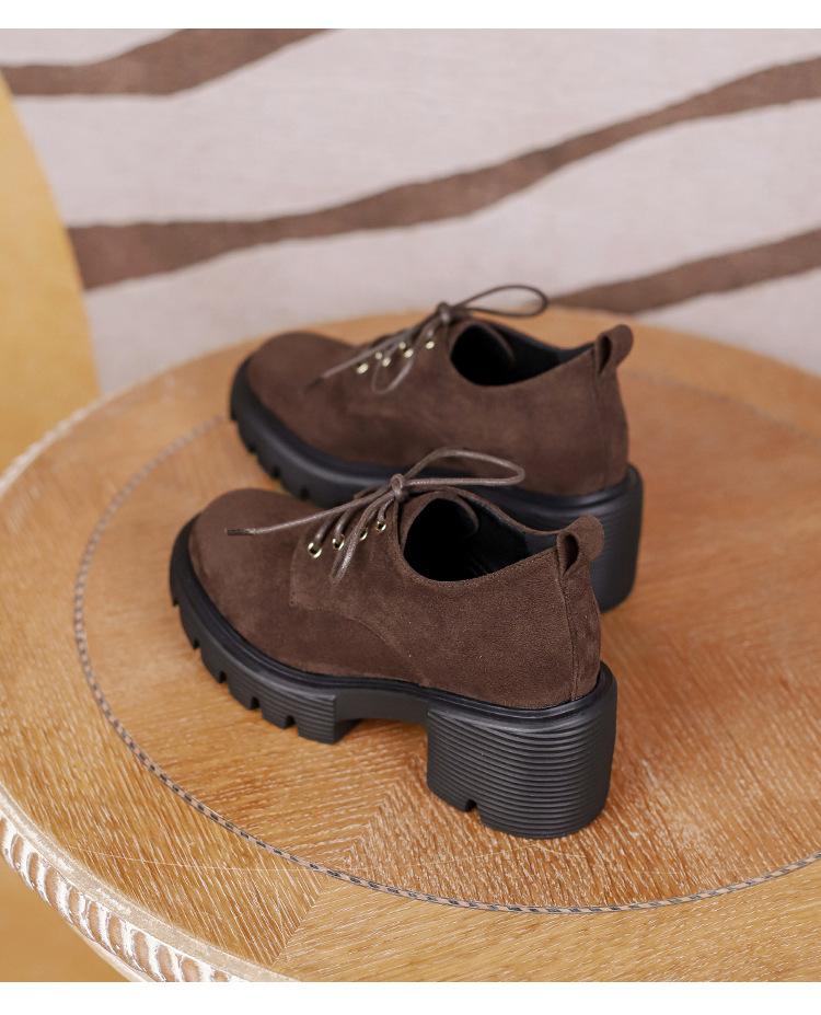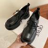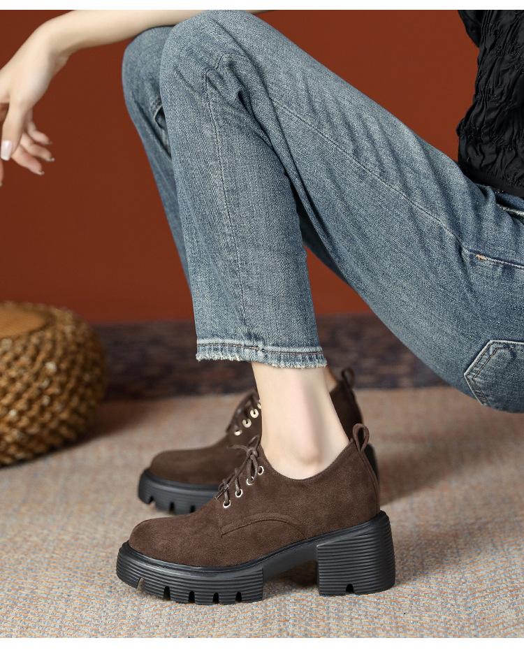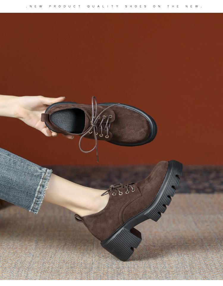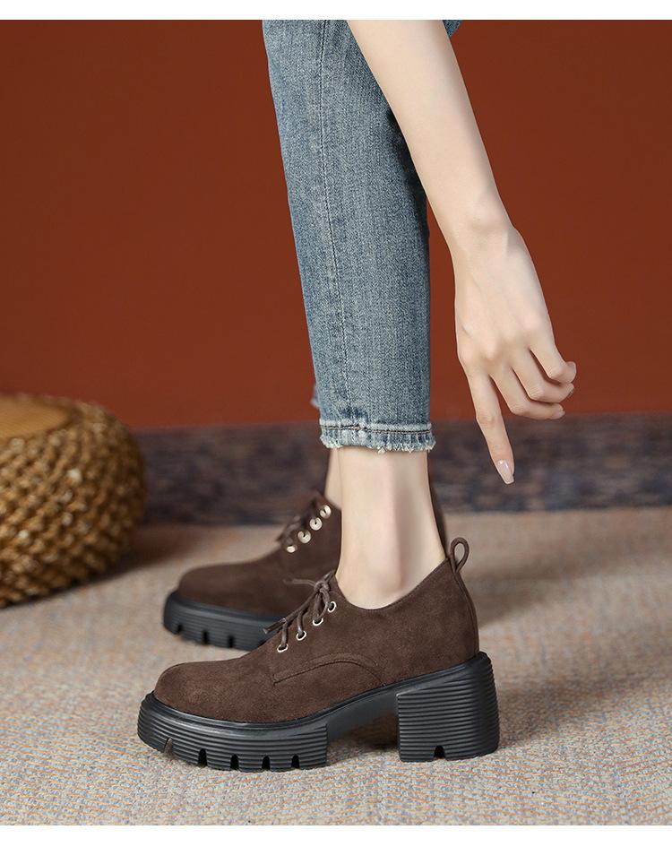 Mocasines de tacón alto con plataforma y cordones estilo británico de 10 cm de altura oculta, de piel, para mujer, 2024, nuevos zapatos de una sola capa.