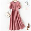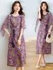 Vestido de Manga Corta para Mujer 2025 Verano Suave Elegante Silueta Adelgazante Floral Largo Cuello V Falda de Cola de Pez