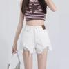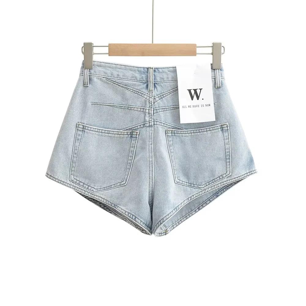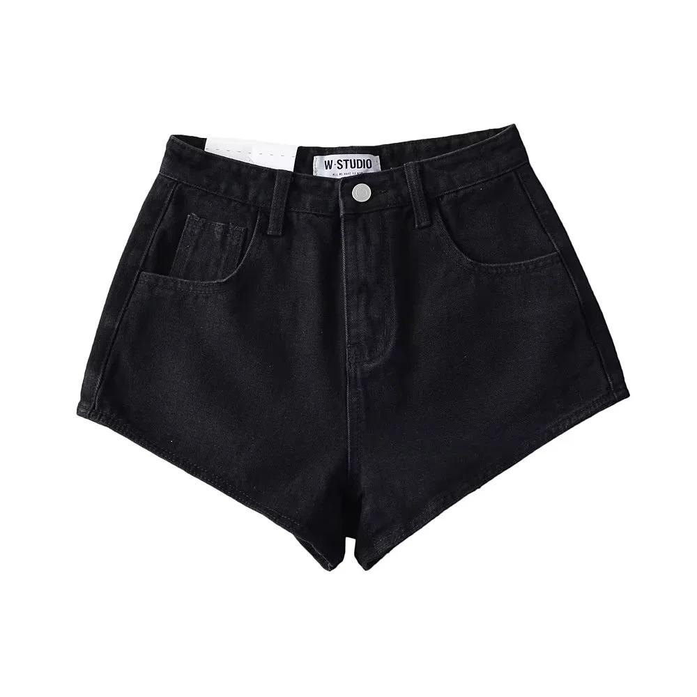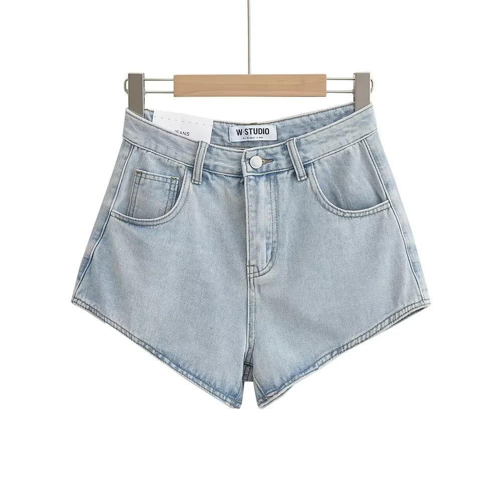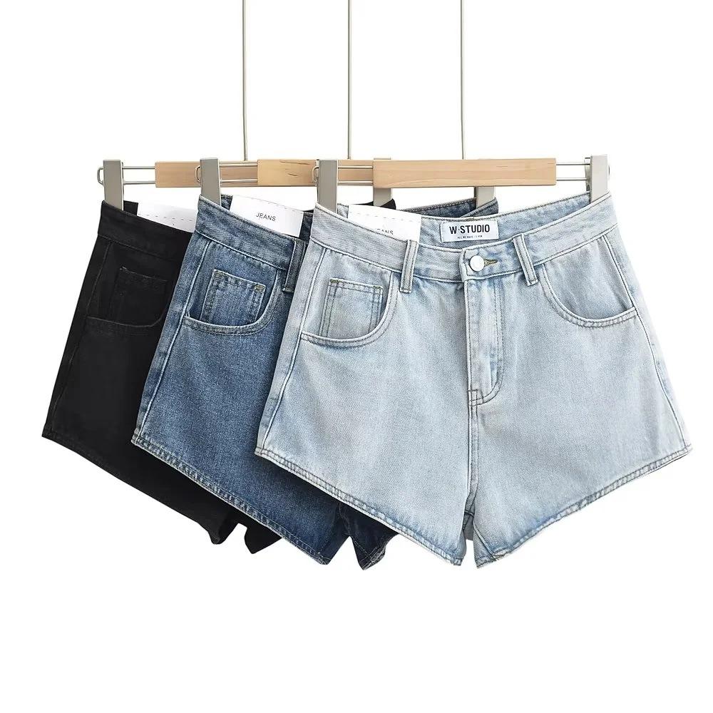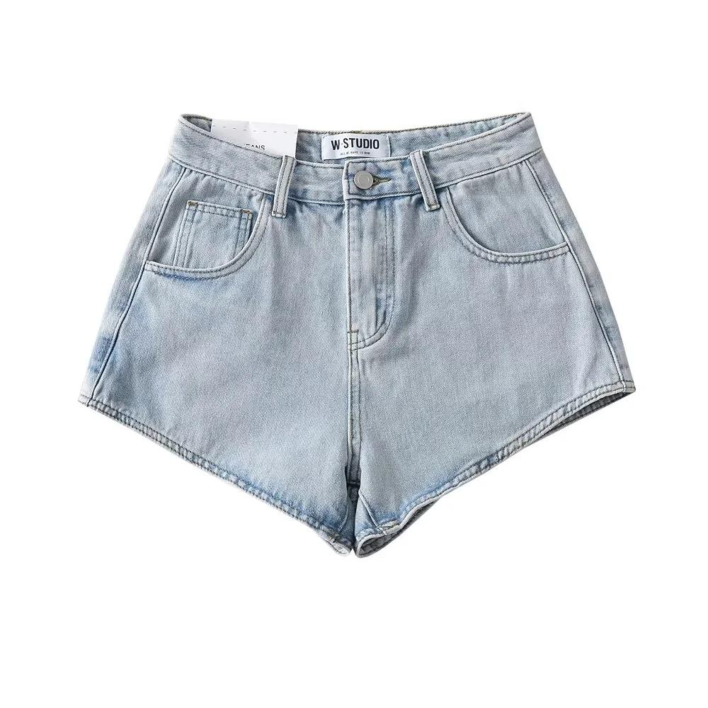 Pantalones cortos vaqueros de cintura alta, ajustados, de corte A, estilo retro, lavados, elásticos, de pierna ancha y sexys, de verano 2023