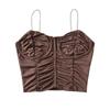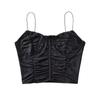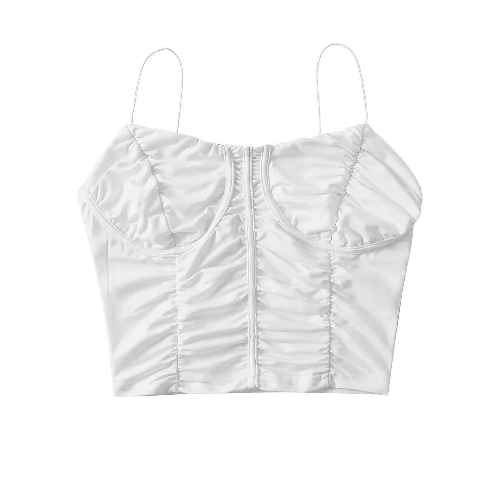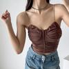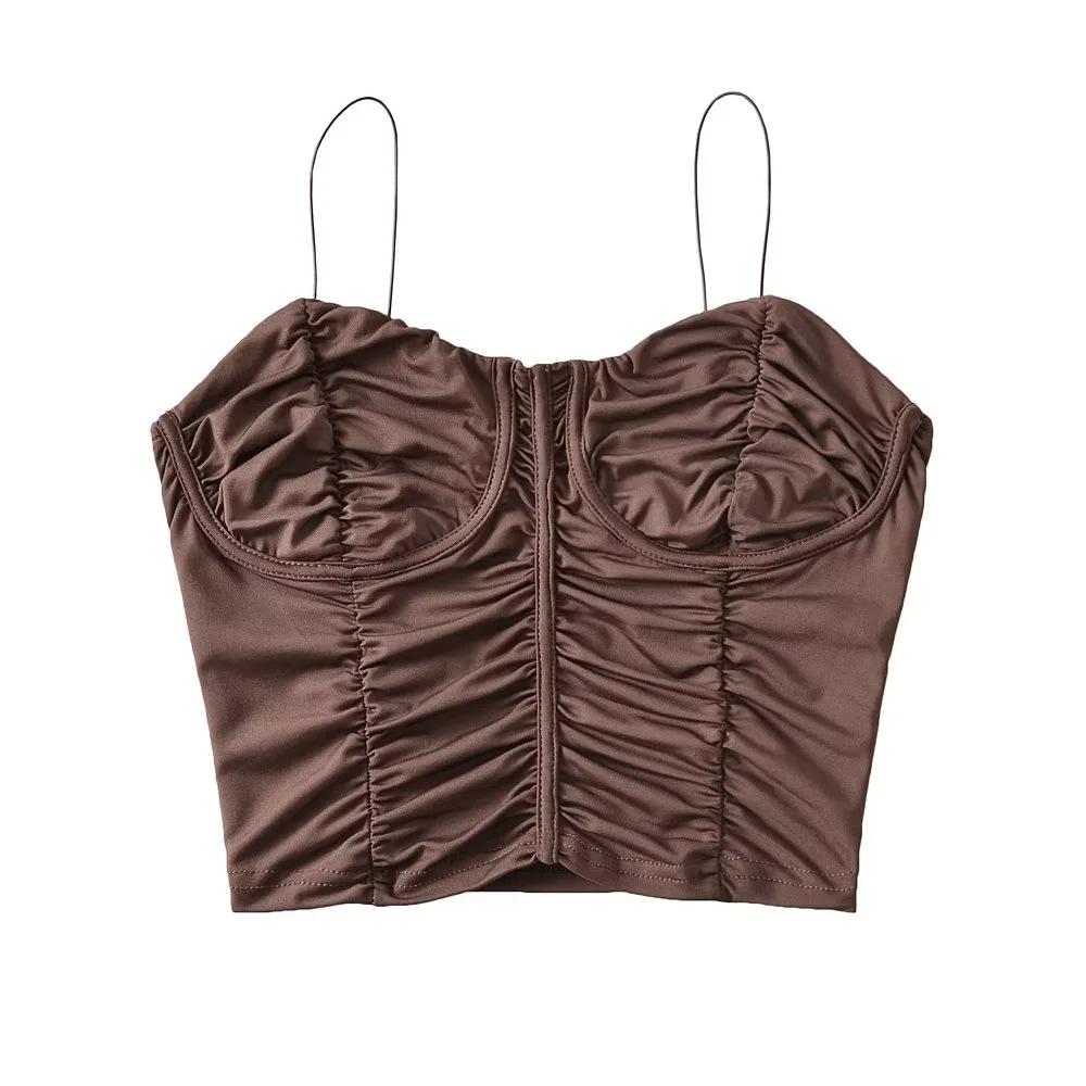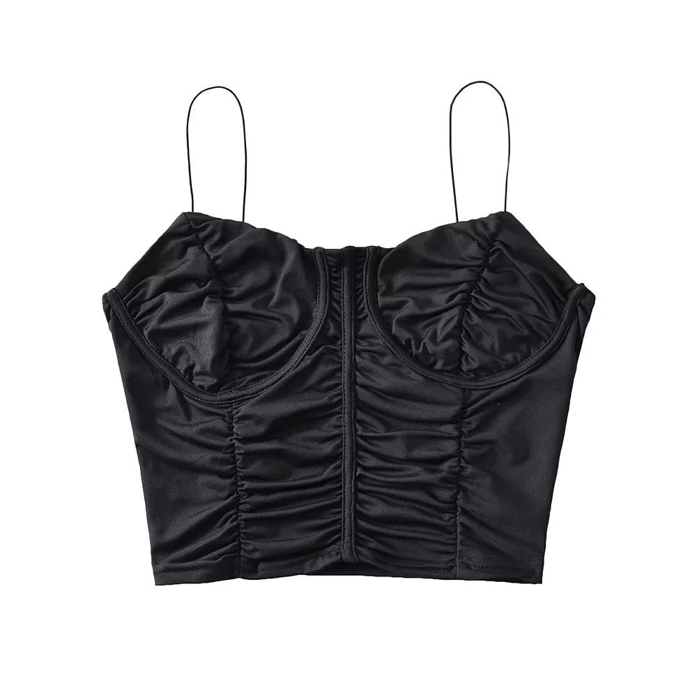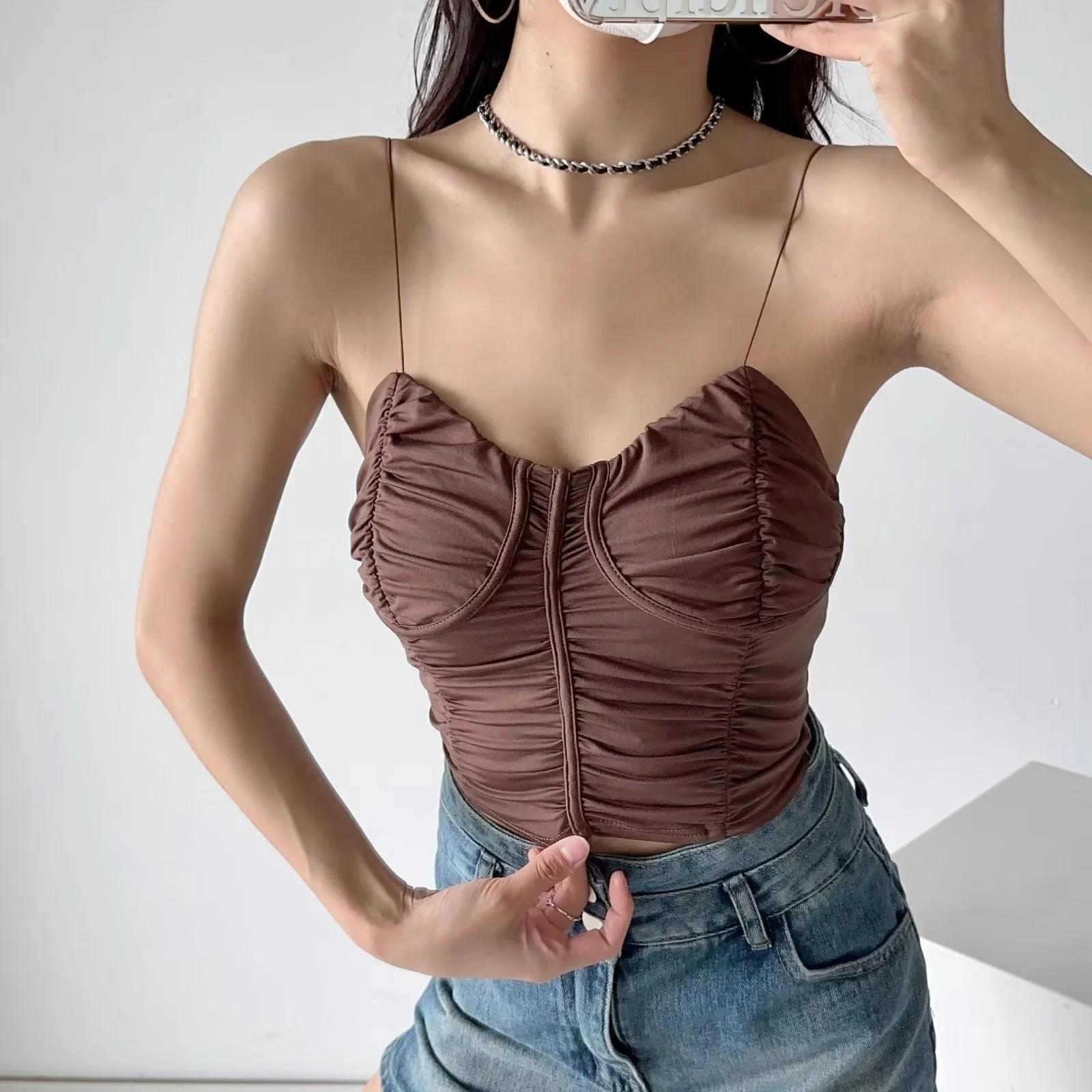 Camisola de verano 2023 con tirantes finos, plisada, de espiga, sexy, de cuello bajo, ajustada, elástica, corta