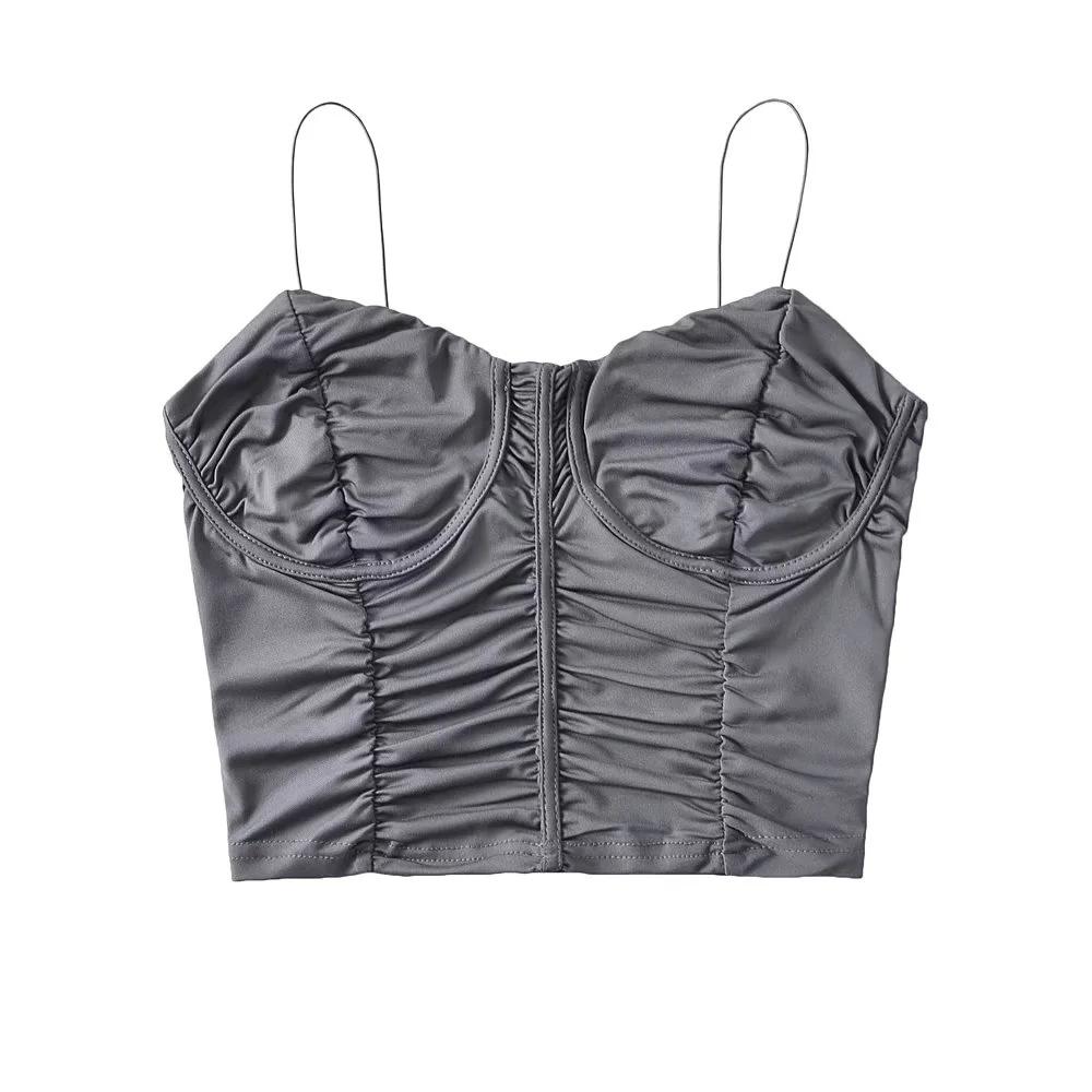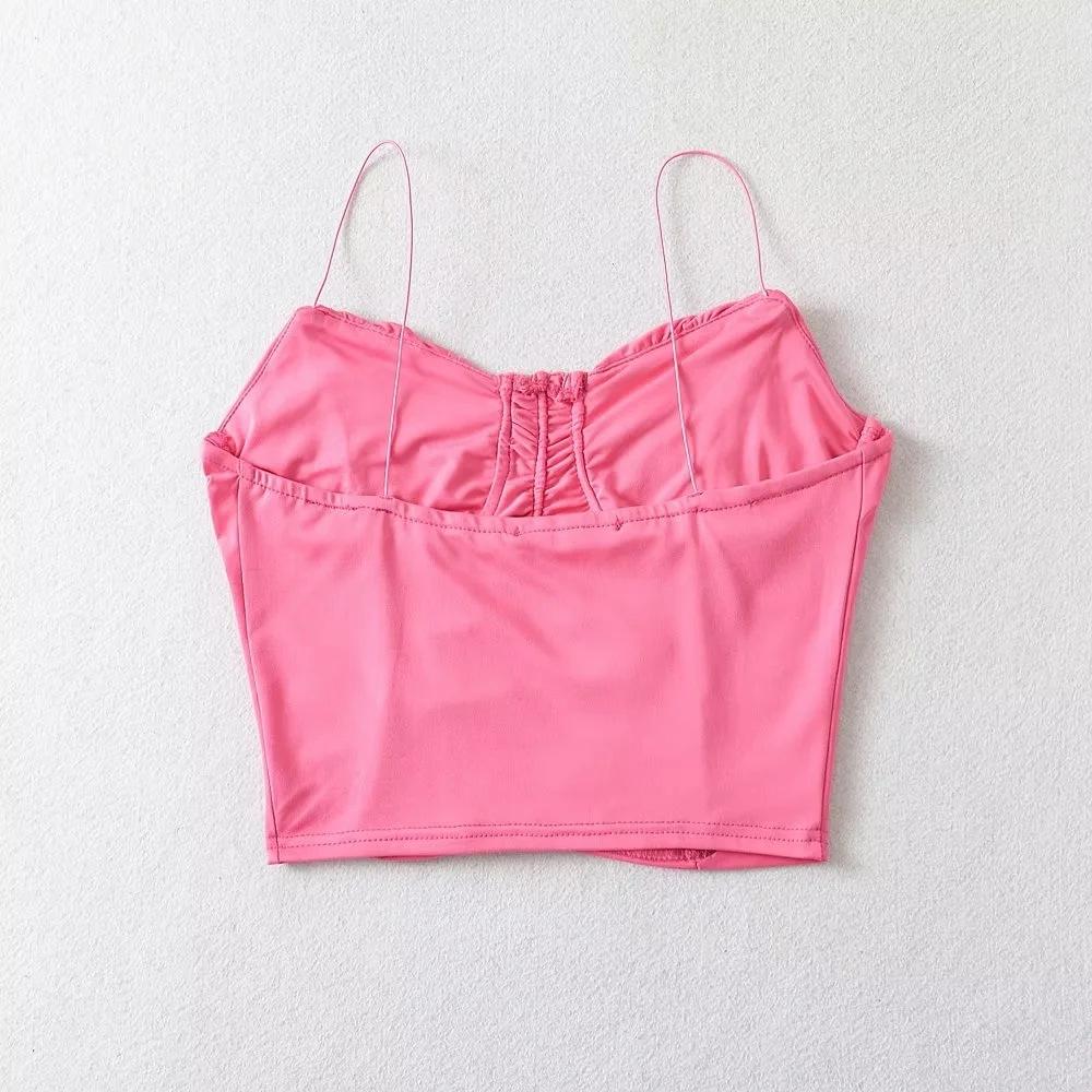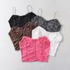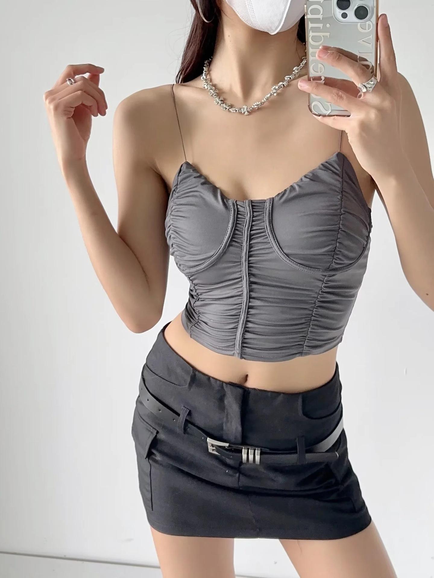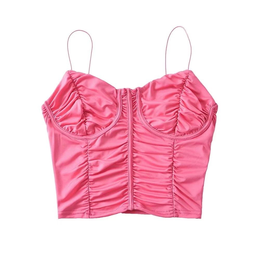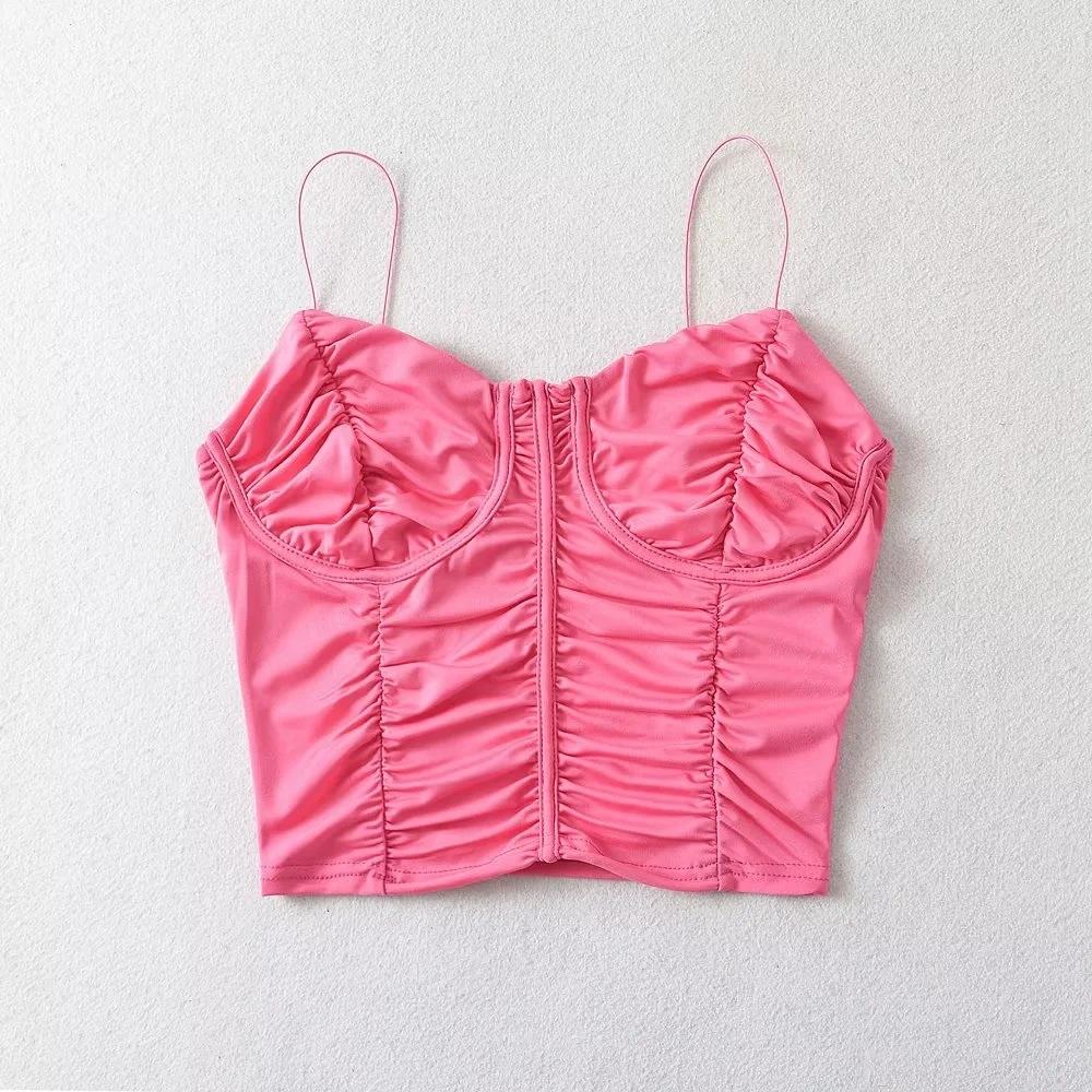 Camisola de verano 2023 con tirantes finos, plisada, de espiga, sexy, de cuello bajo, ajustada, elástica, corta