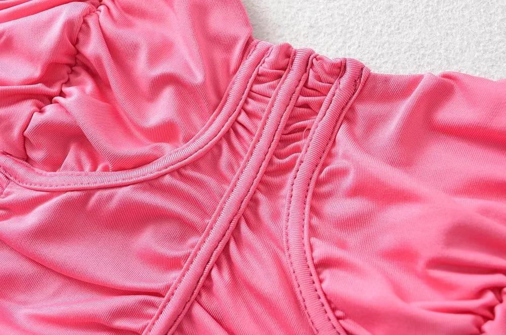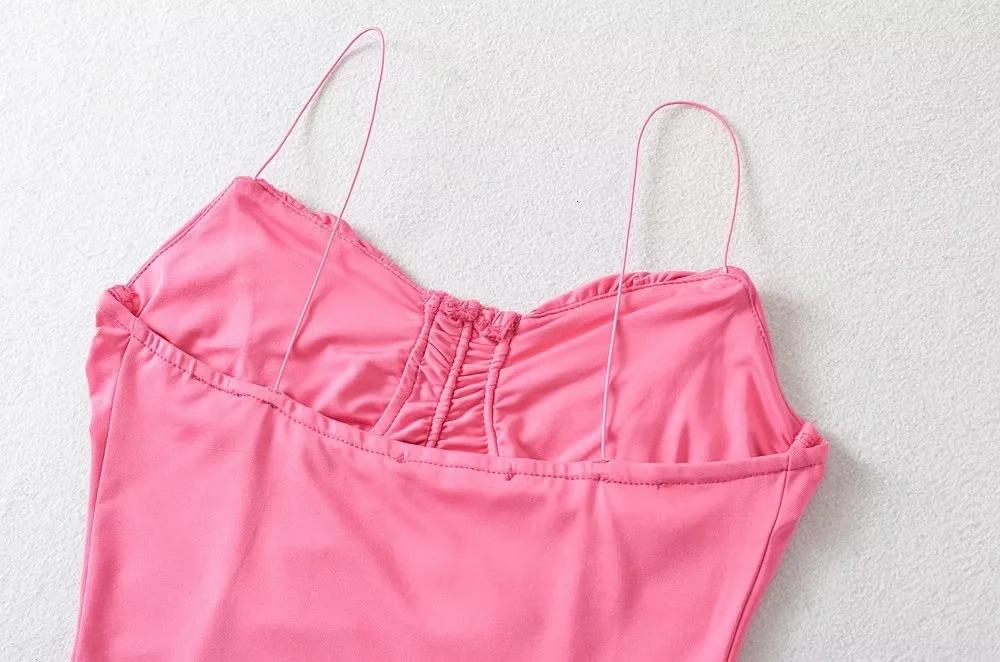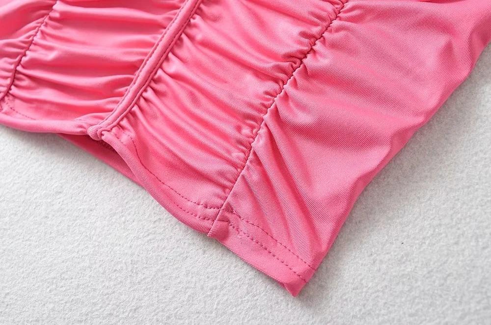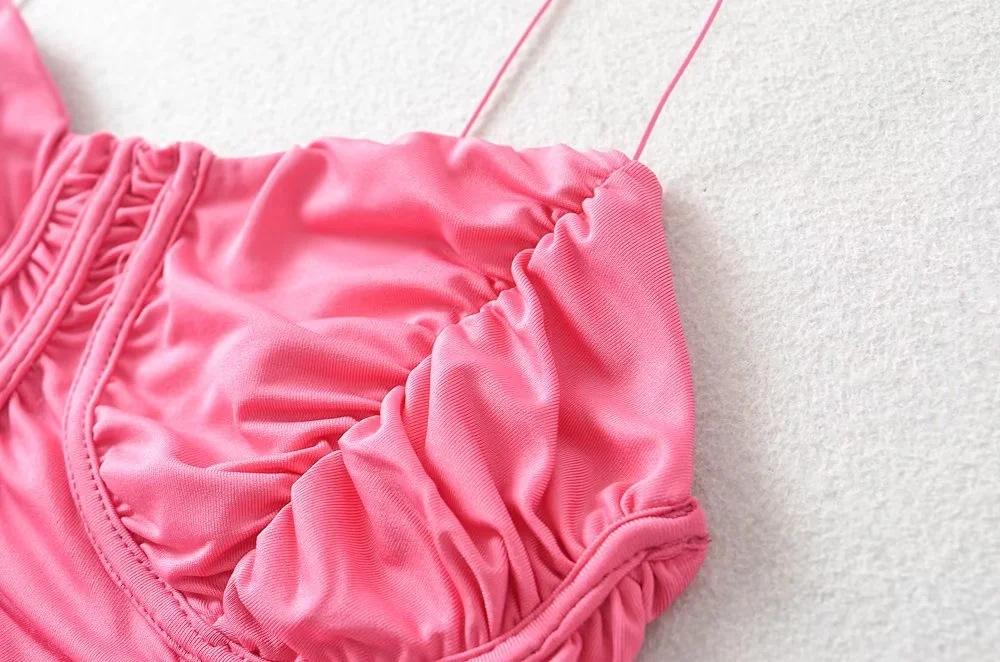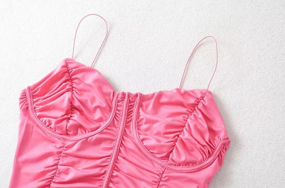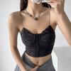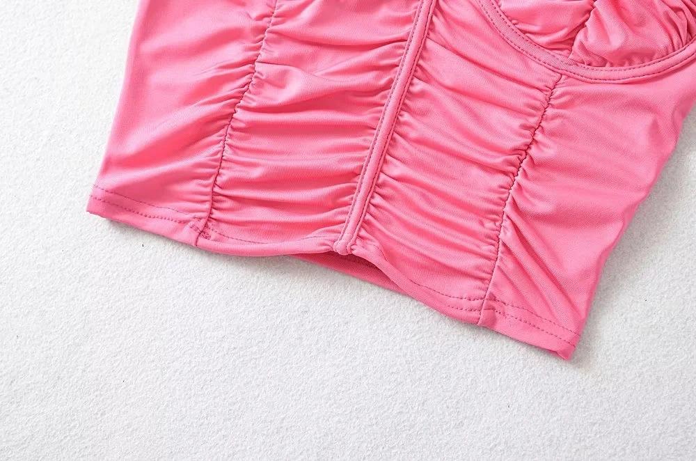 Camisola de verano 2023 con tirantes finos, plisada, de espiga, sexy, de cuello bajo, ajustada, elástica, corta