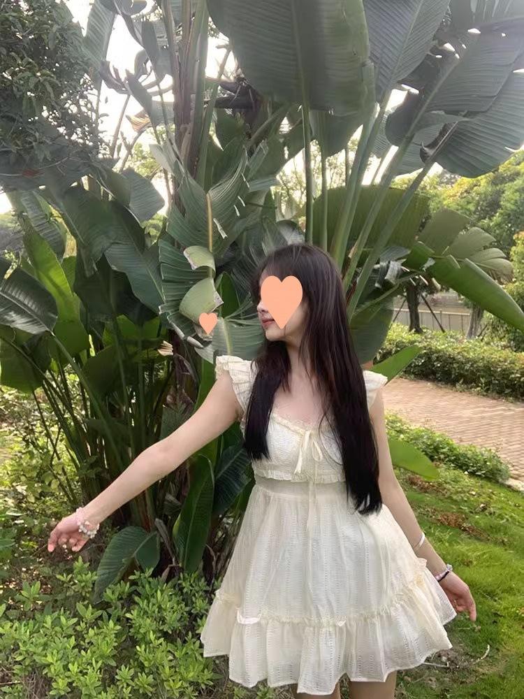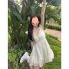 Vestido de verano nuevo estilo francés con escote cuadrado y mangas cortas con vuelo para mujer, falda corta adelgazante de cintura pequeña