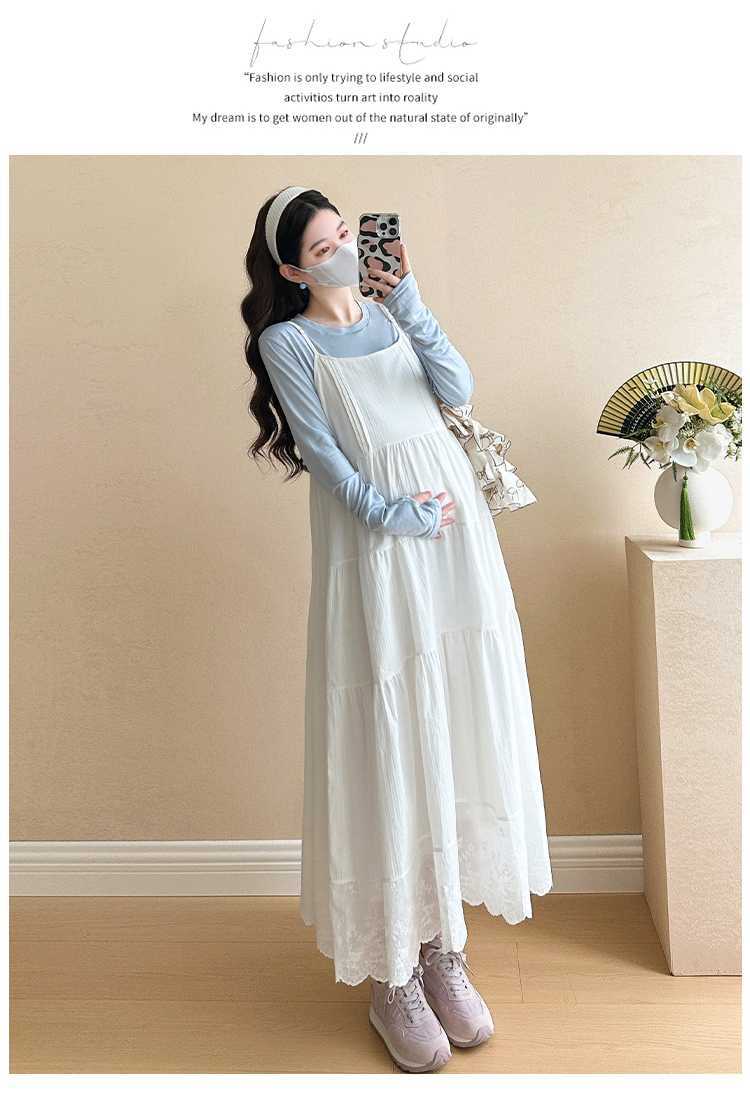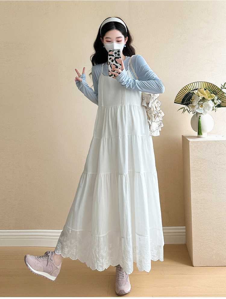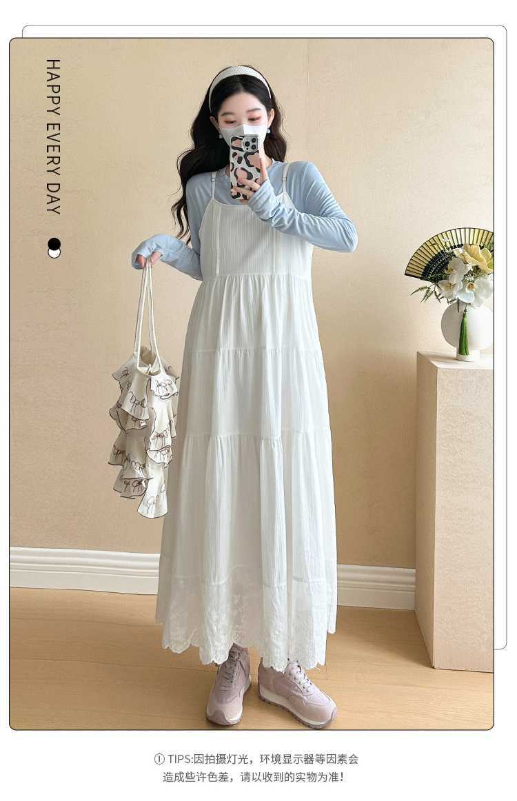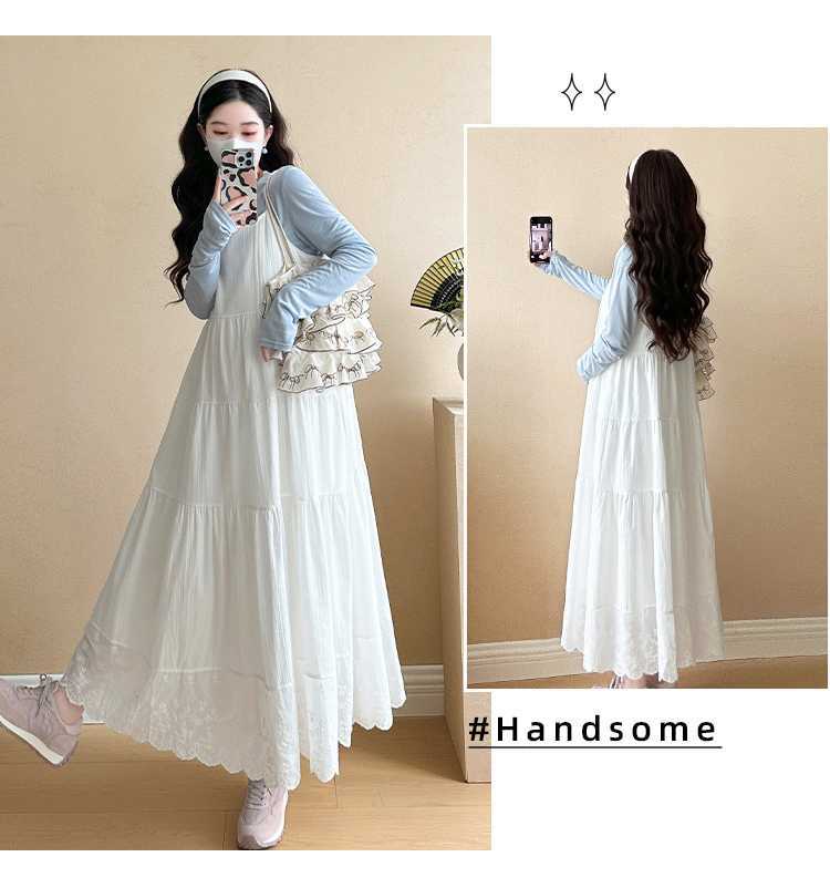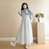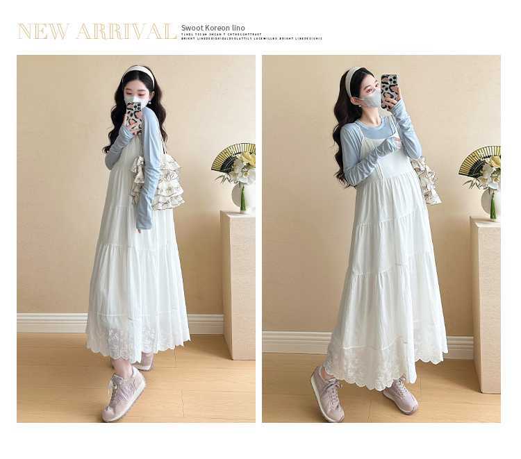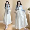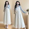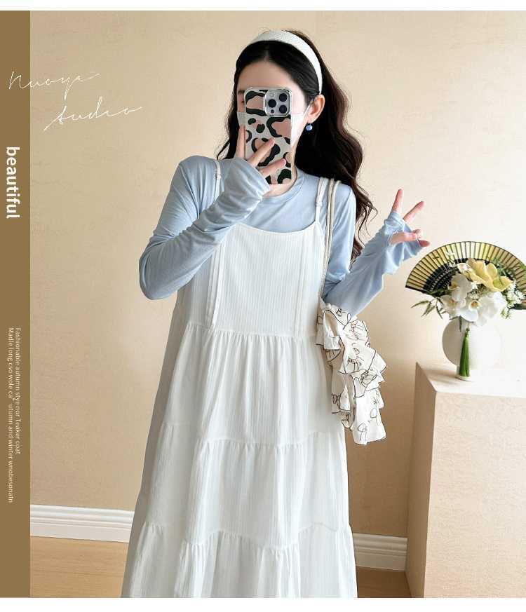 Vestido de maternidad de primavera 2025, moderno y sencillo, de dos piezas, con mangas largas y escote tipo camisa, ideal para embarazadas.