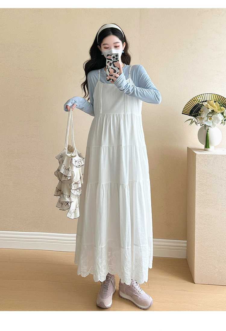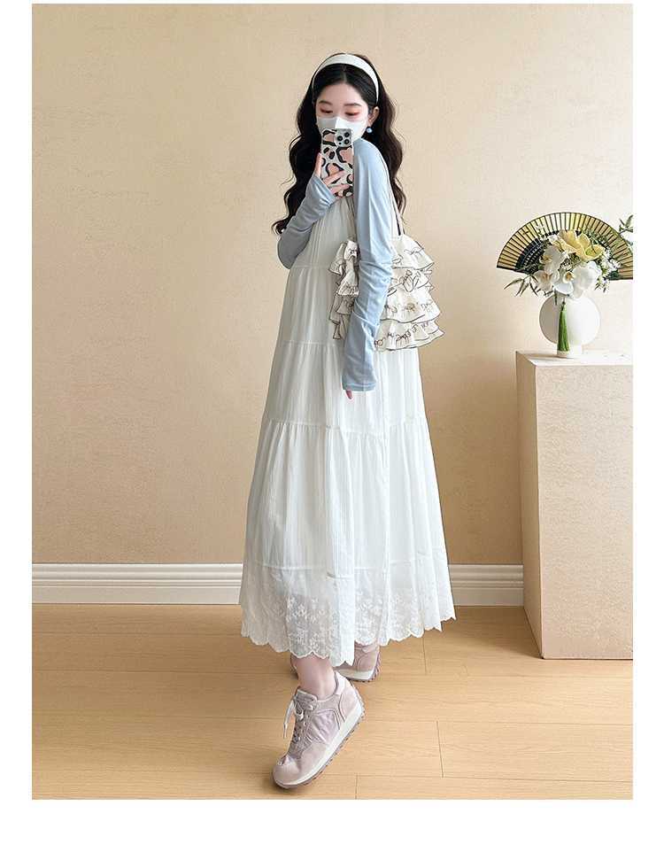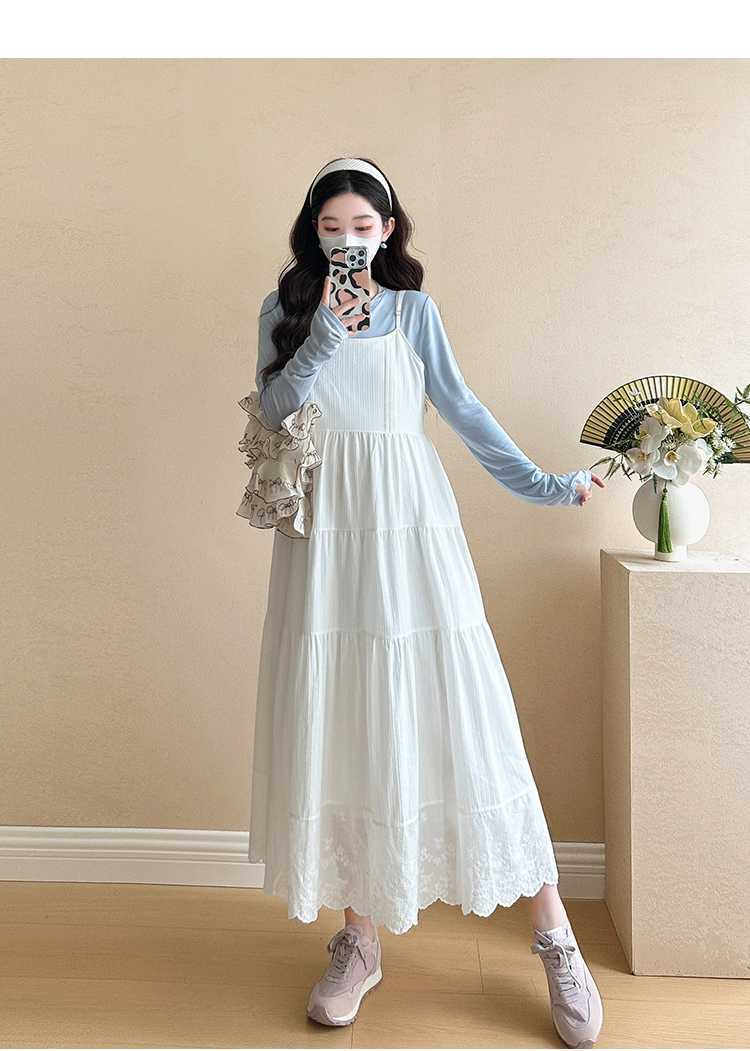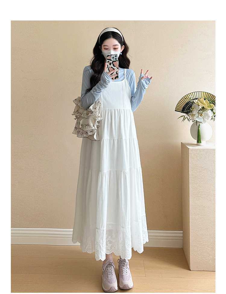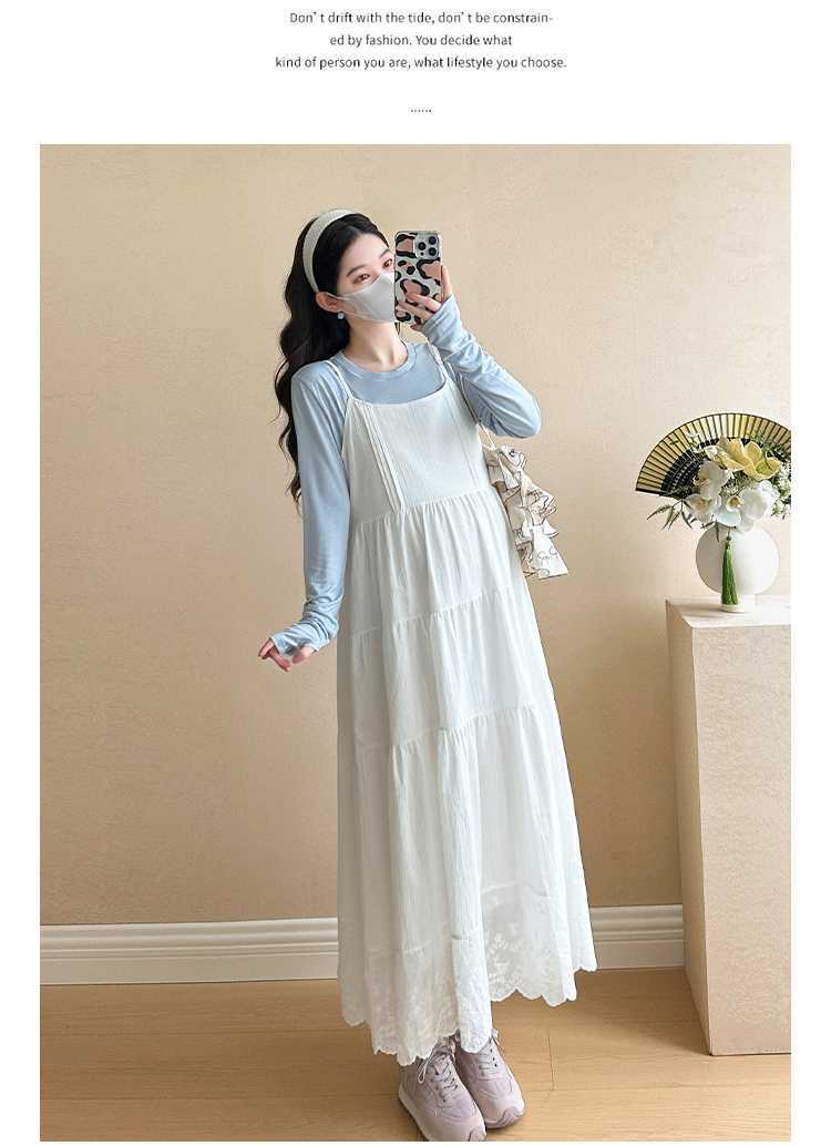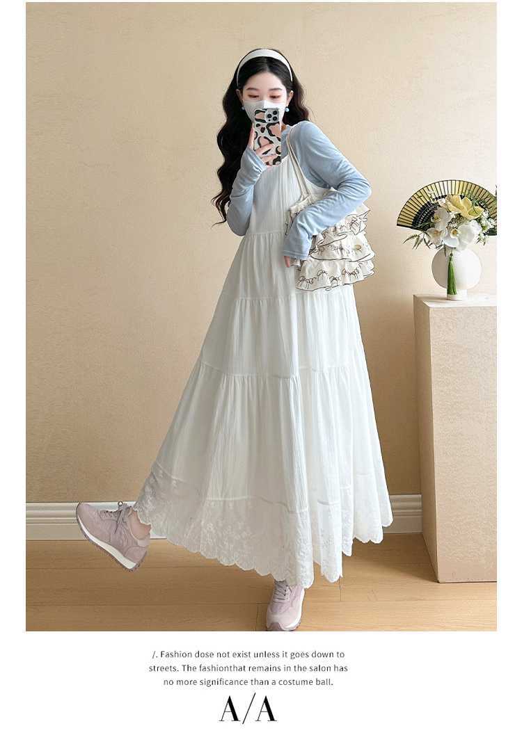 Vestido de maternidad de primavera 2025, moderno y sencillo, de dos piezas, con mangas largas y escote tipo camisa, ideal para embarazadas.