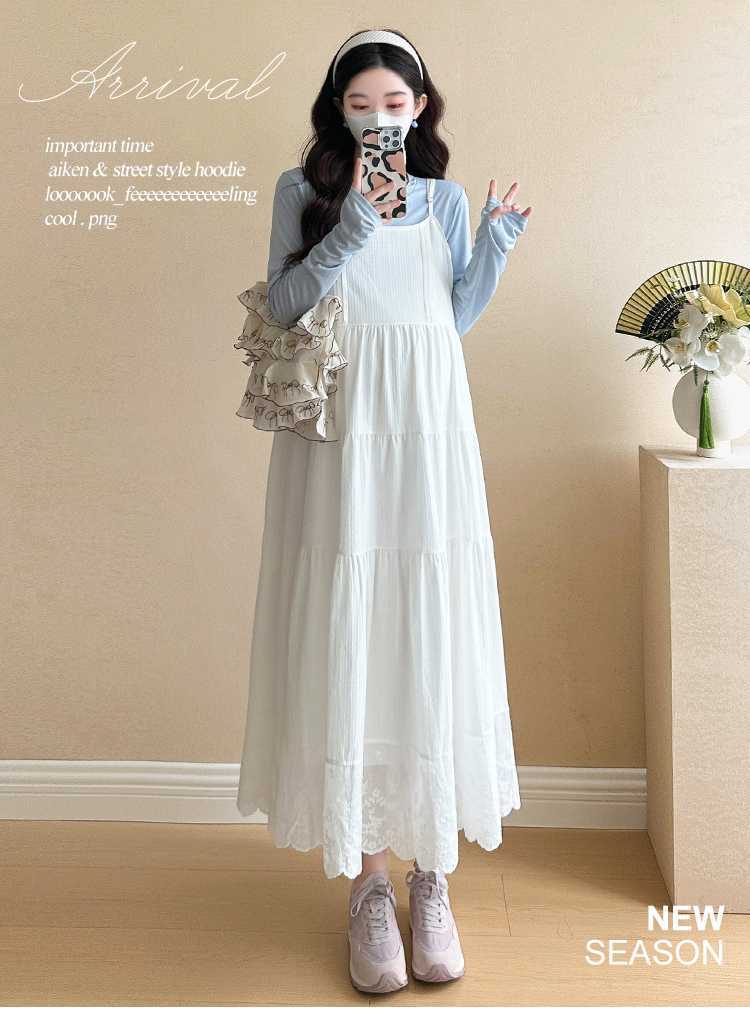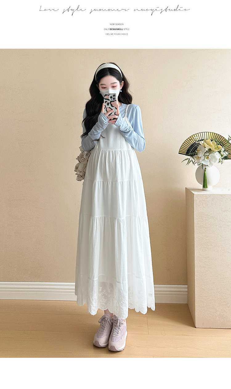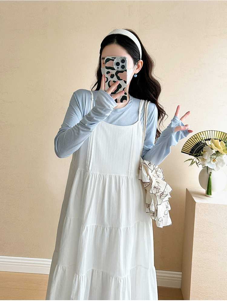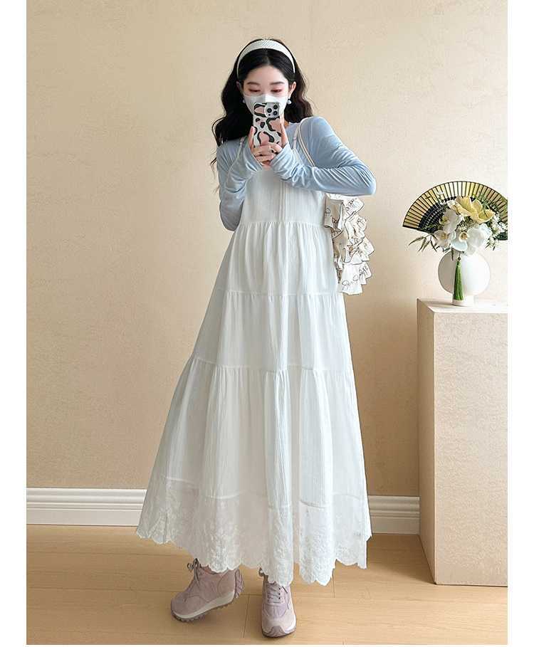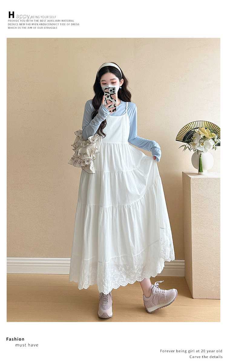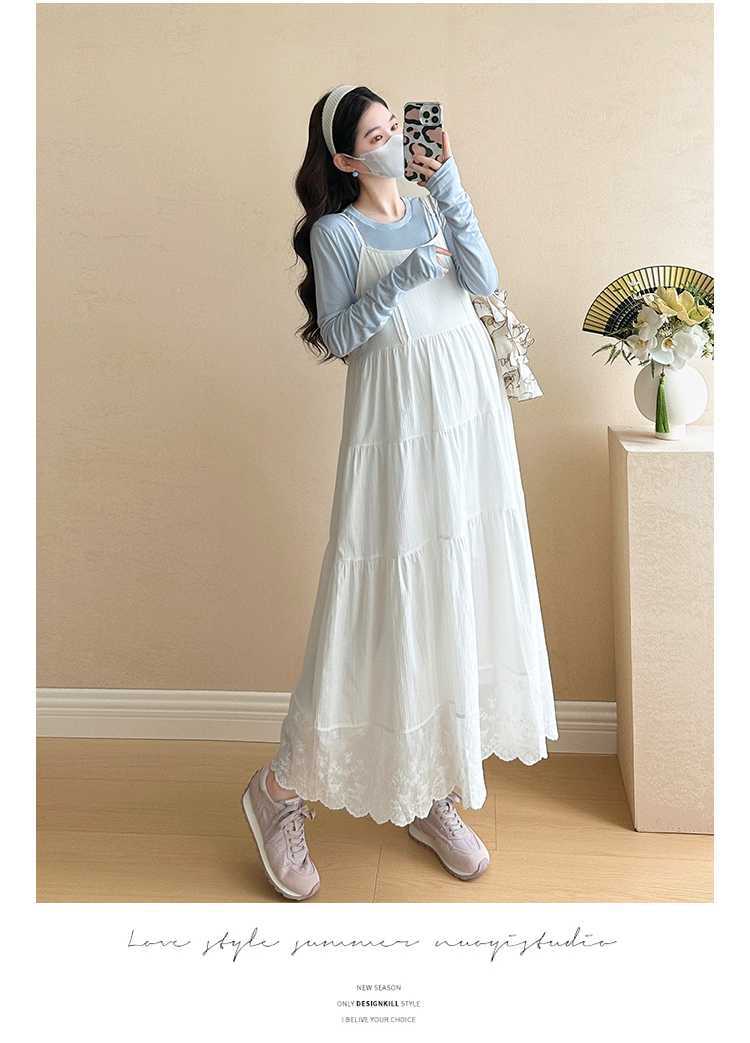 Vestido de maternidad de primavera 2025, moderno y sencillo, de dos piezas, con mangas largas y escote tipo camisa, ideal para embarazadas.