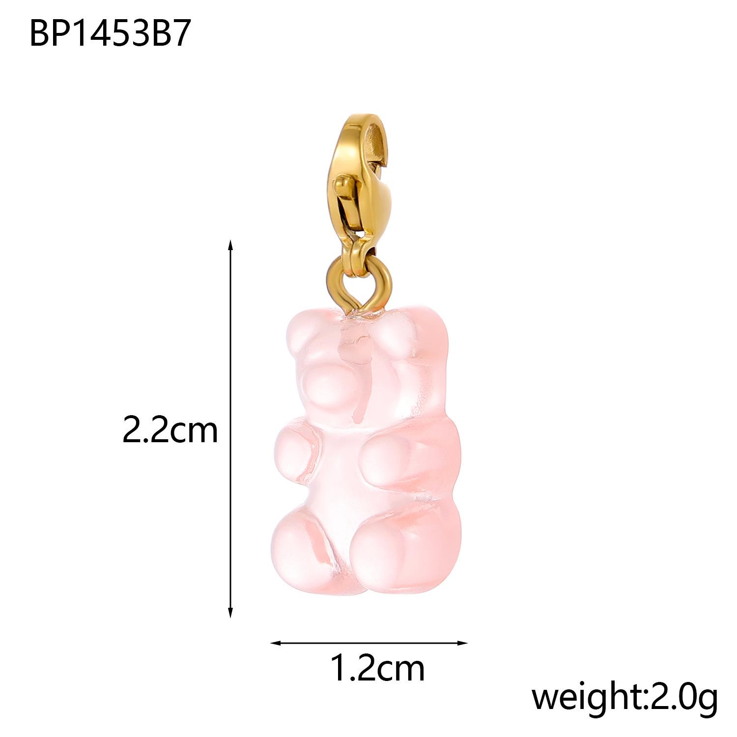 Colgante de Joyería DIY de Oso Colorido Macaron de Venta Caliente Resina Acrílica Colorida Lindo Llavero Colgante de Acero Titanio