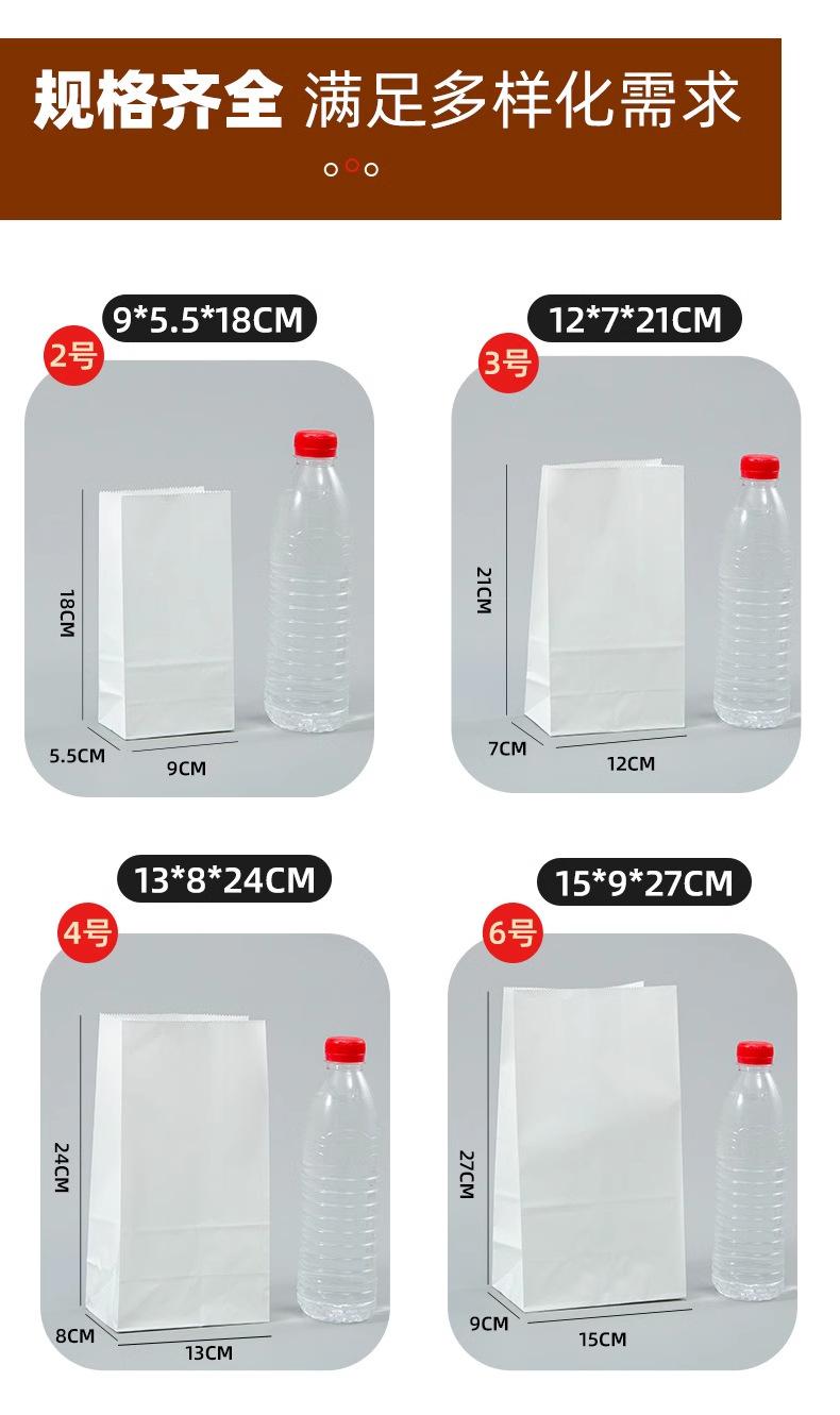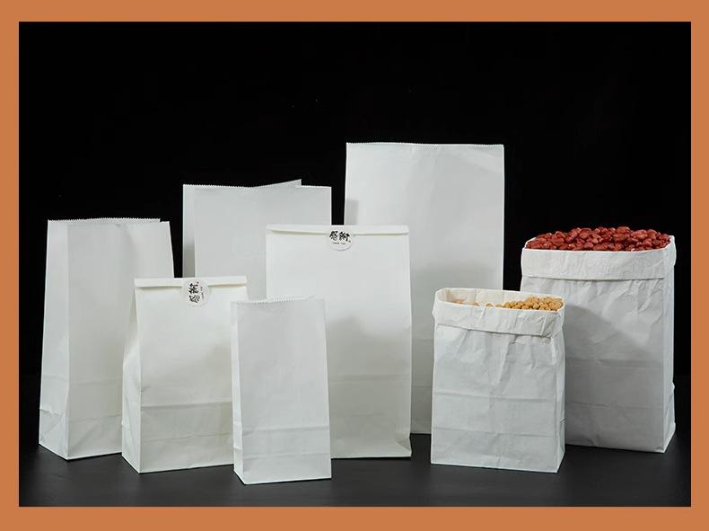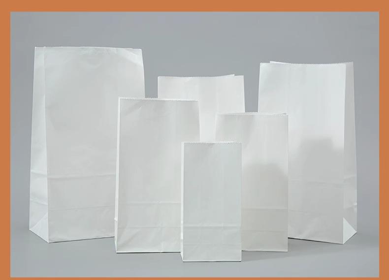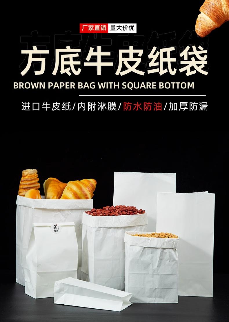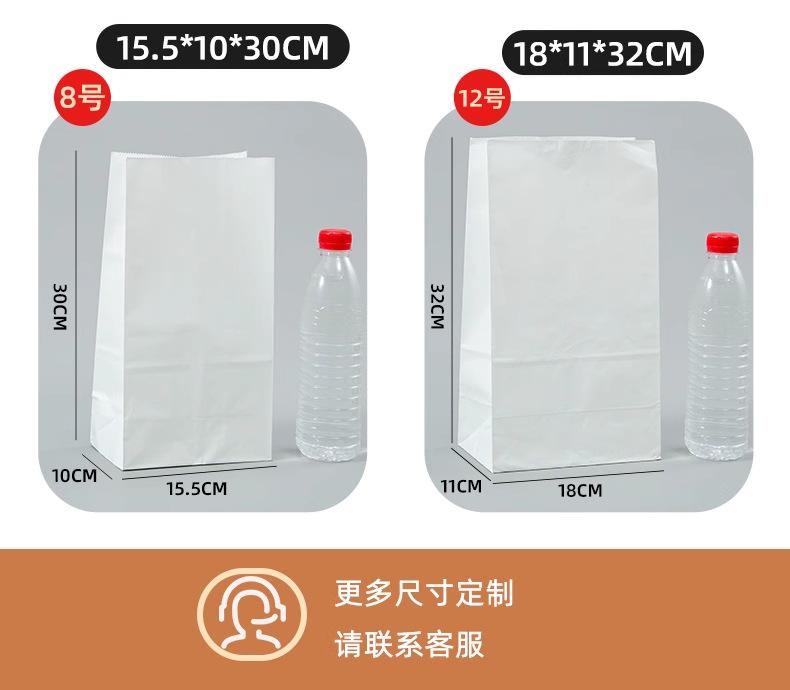 Bolsa de papel kraft blanco con fondo cuadrado, bolsa de embalaje para llevar engrosada, bolsa de embalaje de alimentos desechable con película a prueba de aceite personalizada