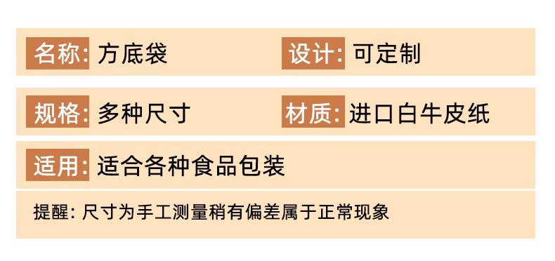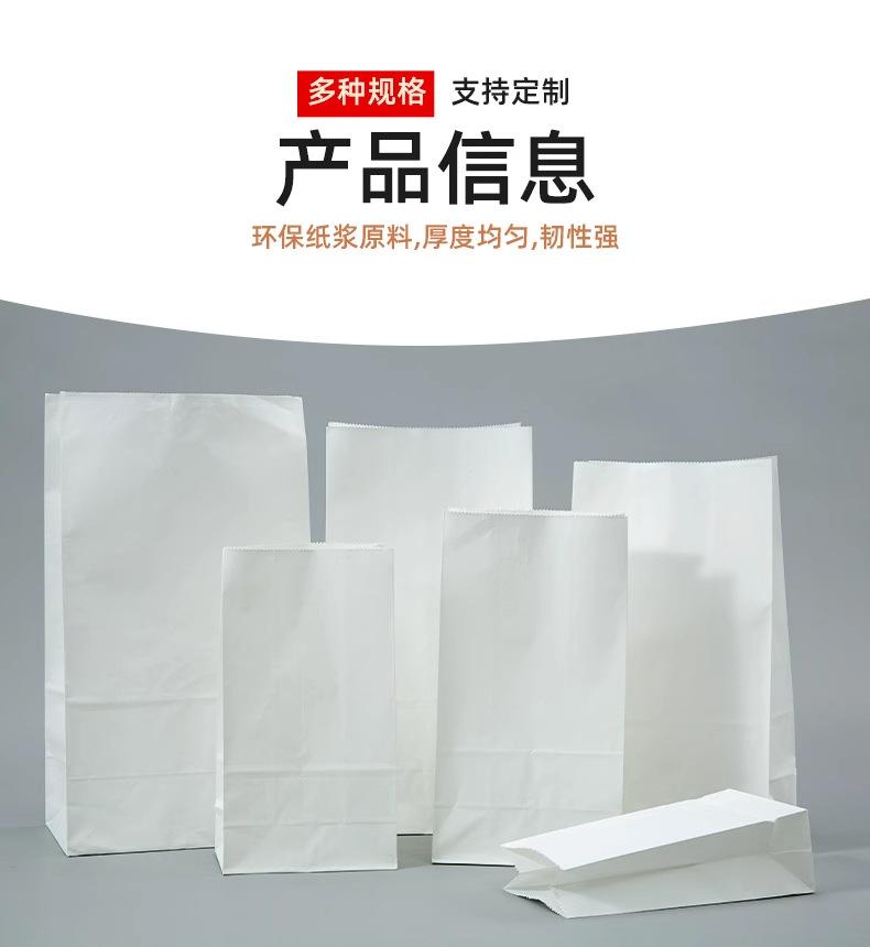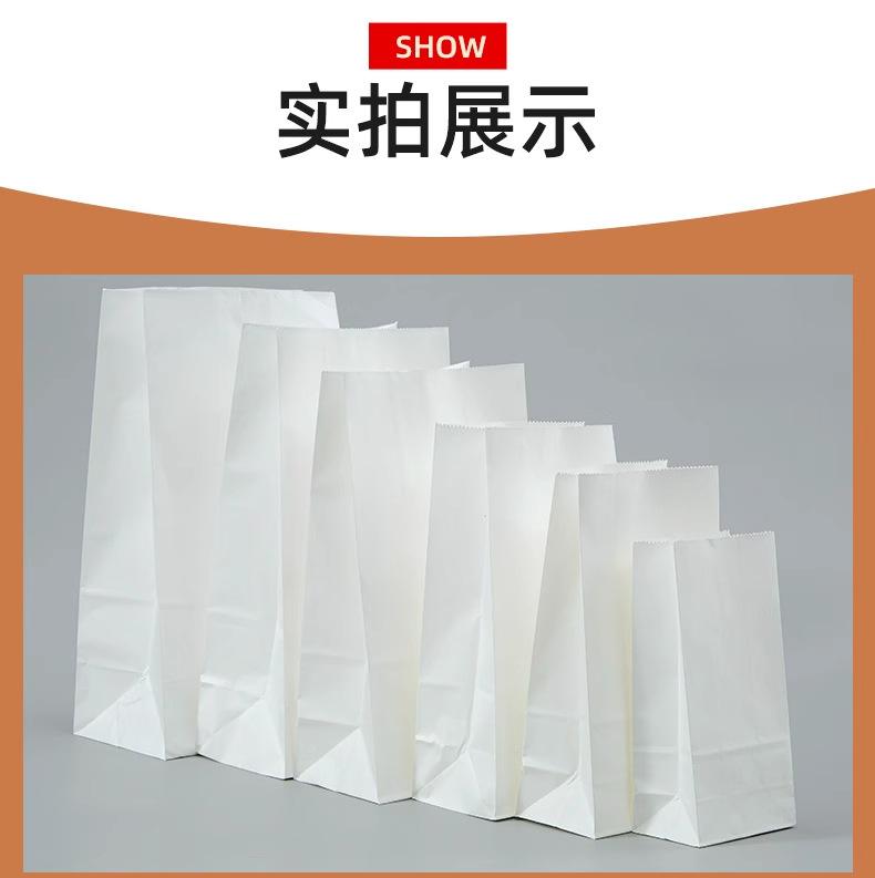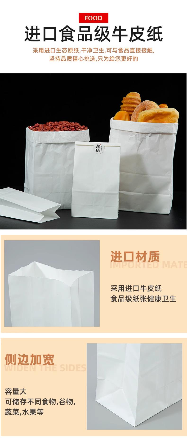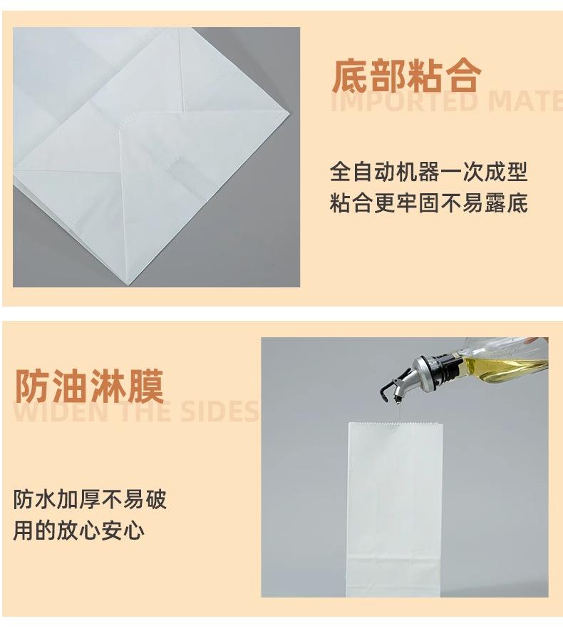 Bolsa de papel kraft blanco con fondo cuadrado, bolsa de embalaje para llevar engrosada, bolsa de embalaje de alimentos desechable con película a prueba de aceite personalizada