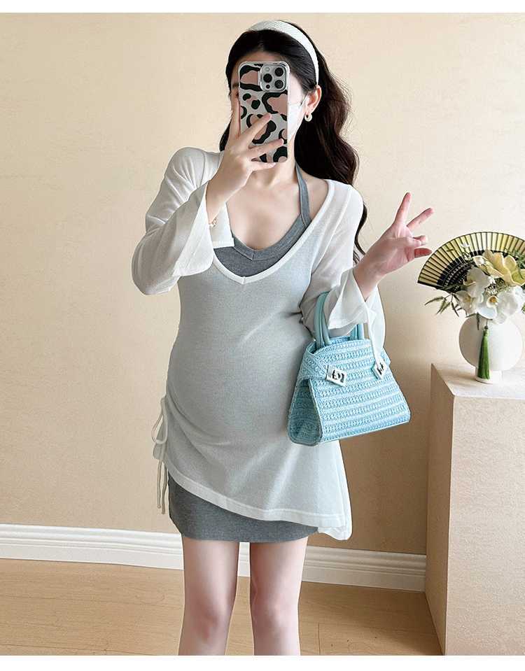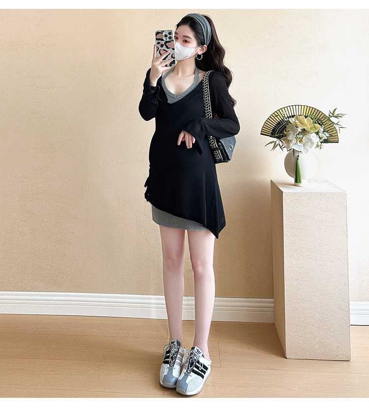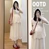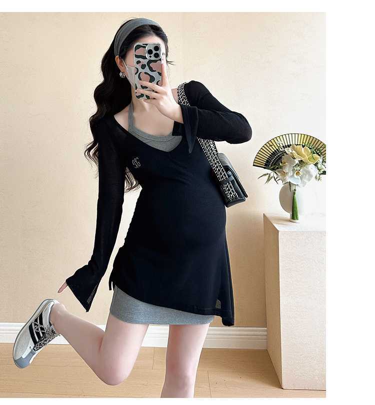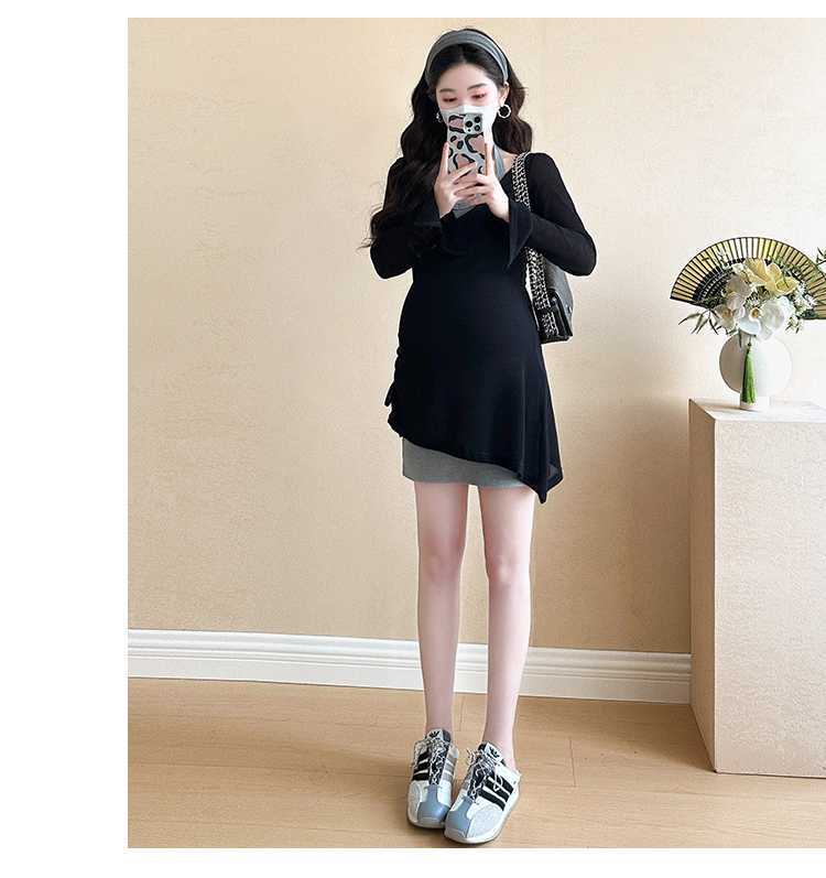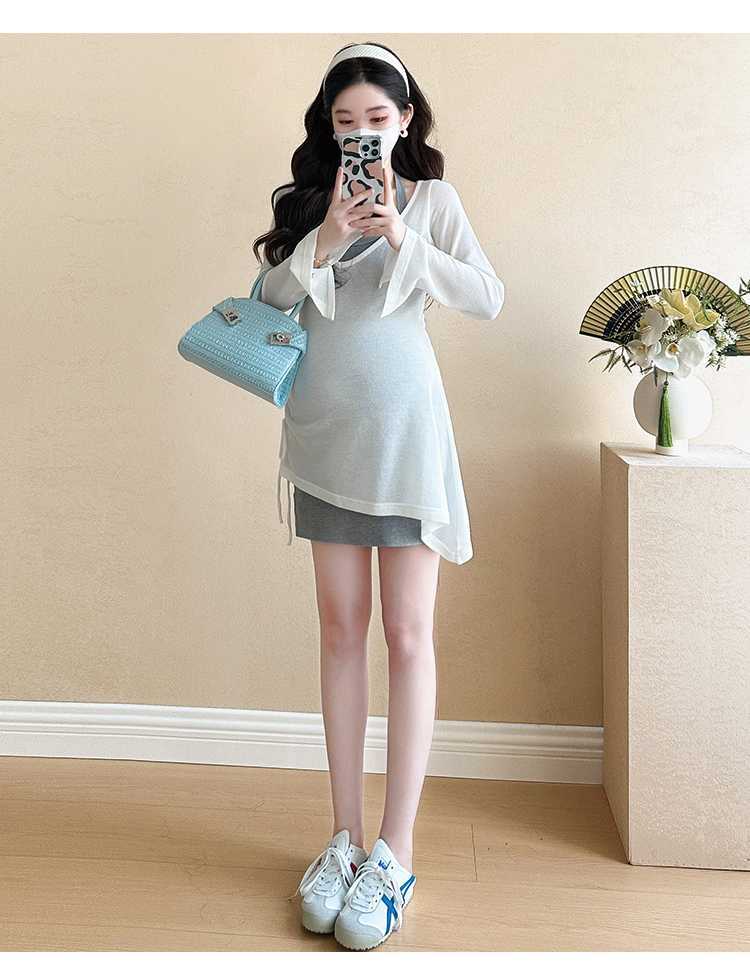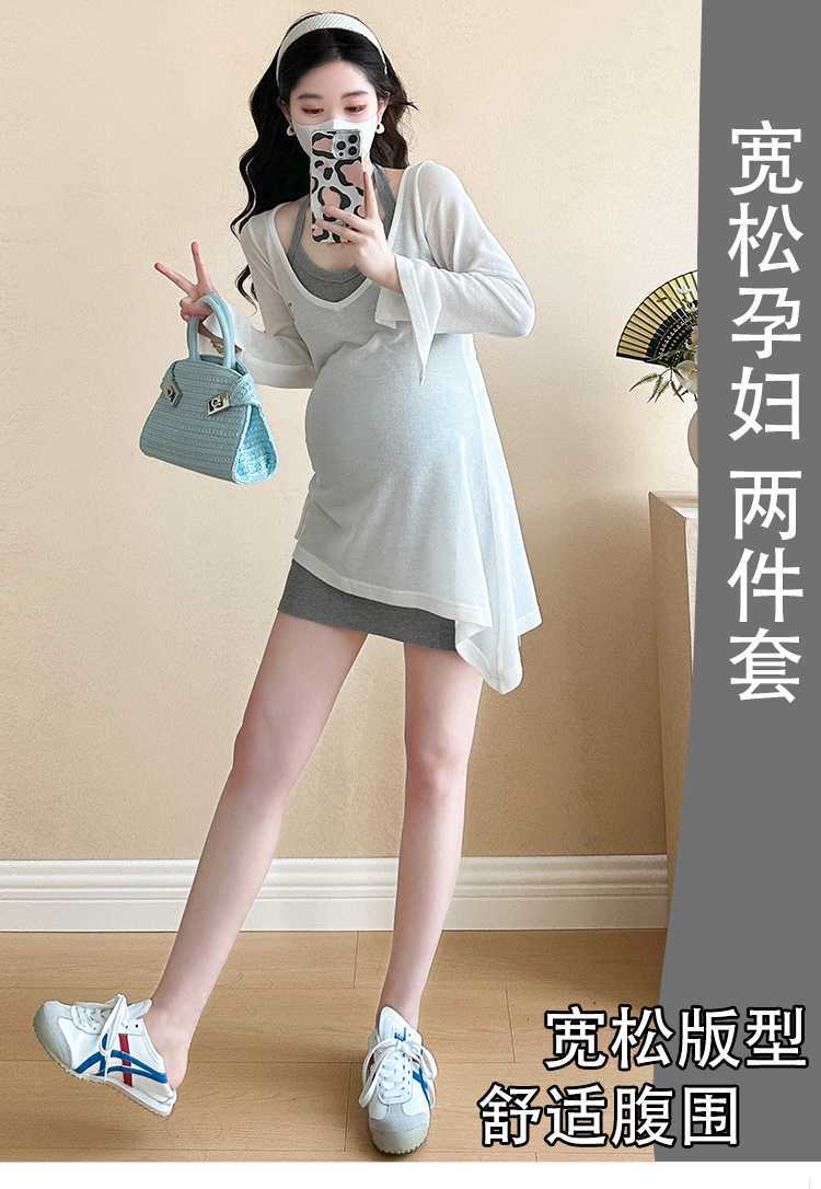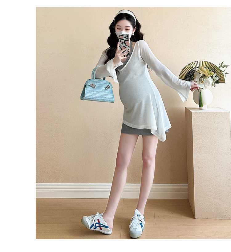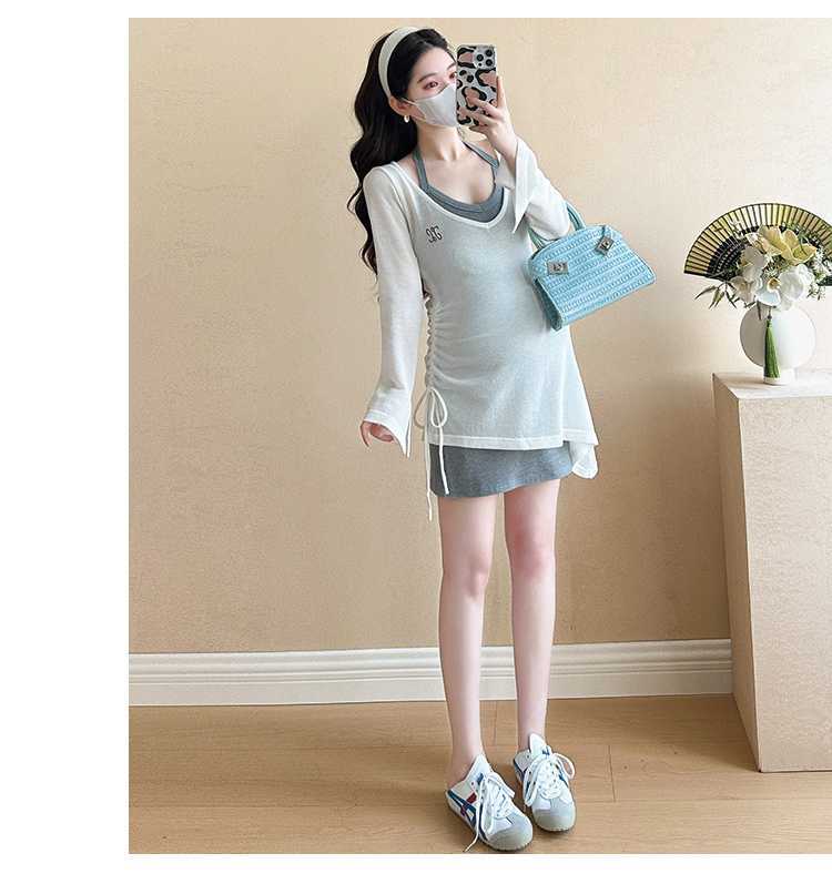 Falda de maternidad de primavera y verano 2025, estilo francés de dos piezas, estilo holgado, con cuello adelgazante para embarazadas