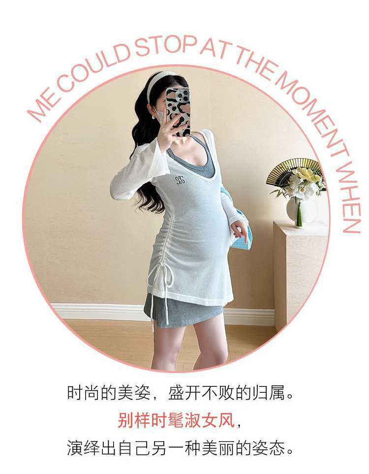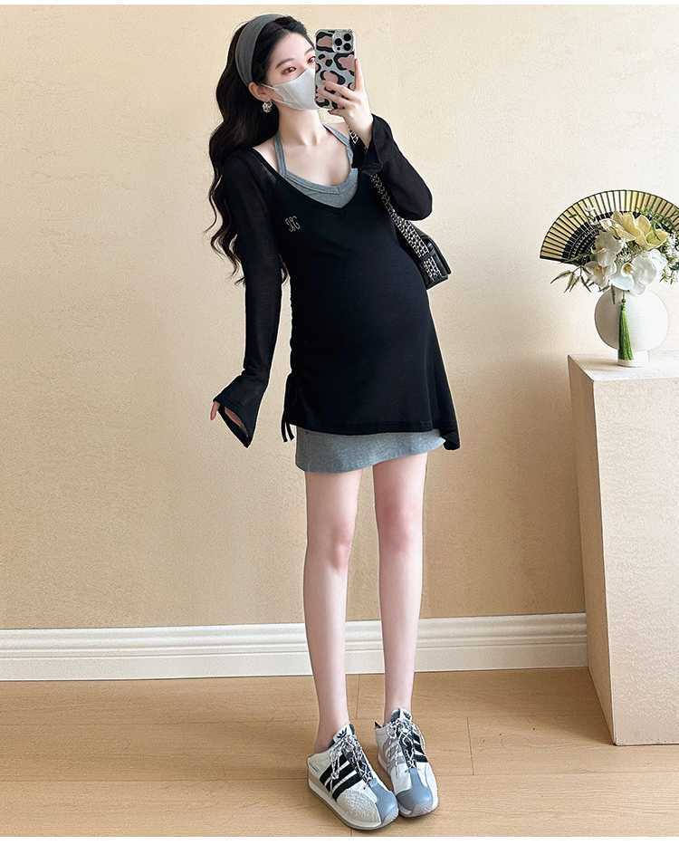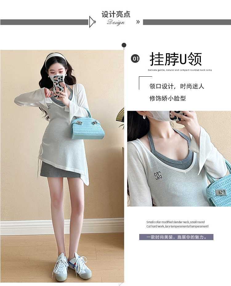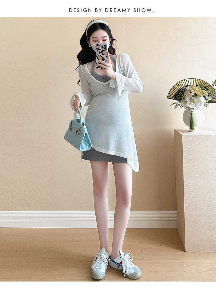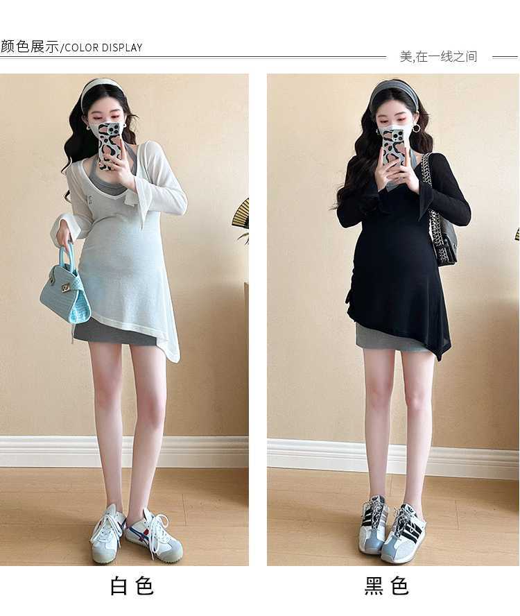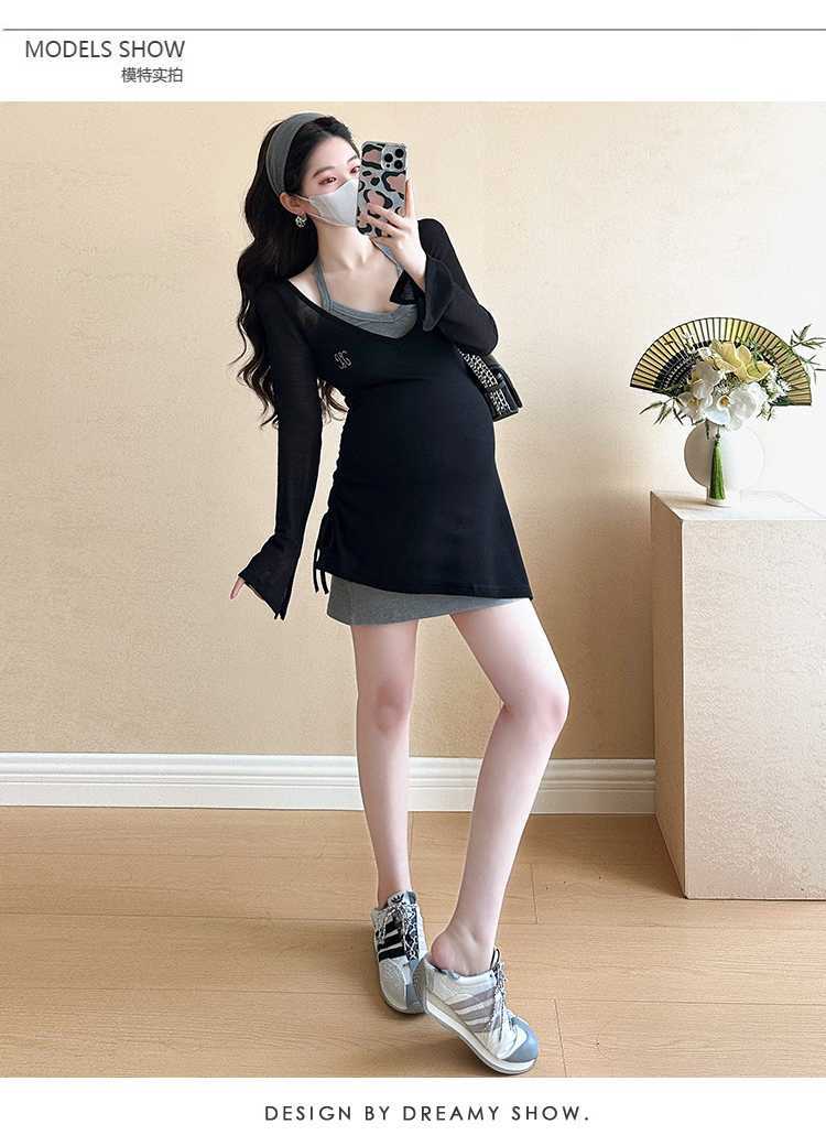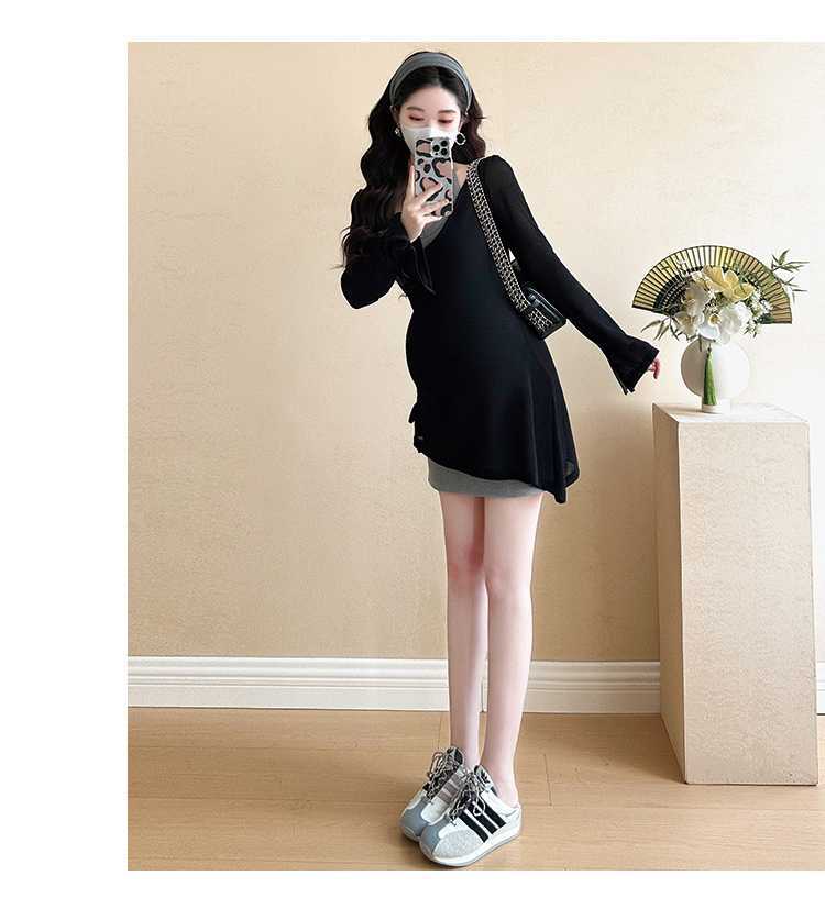 Falda de maternidad de primavera y verano 2025, estilo francés de dos piezas, estilo holgado, con cuello adelgazante para embarazadas