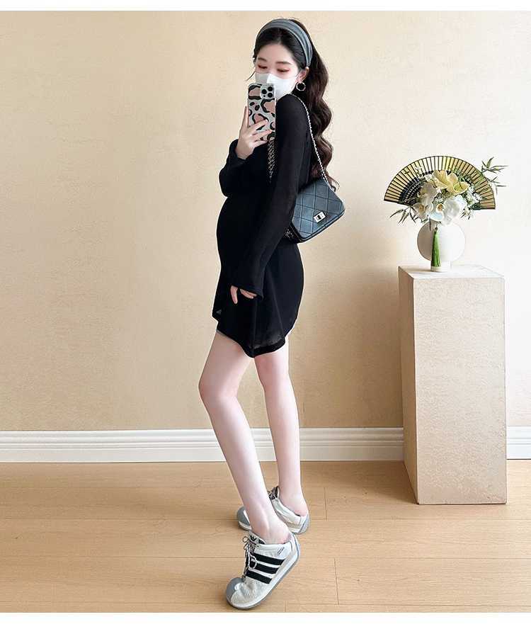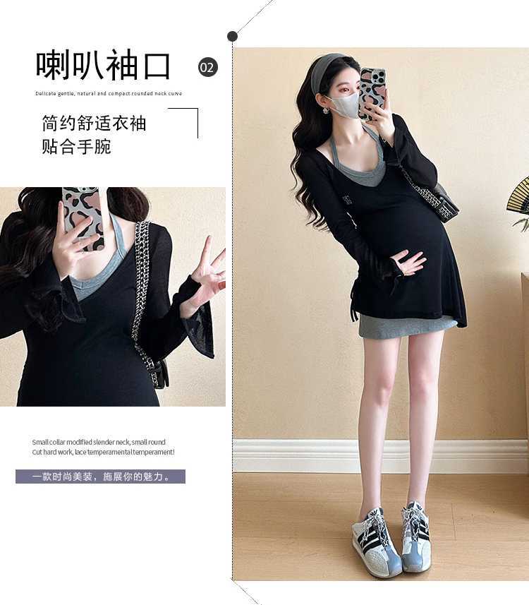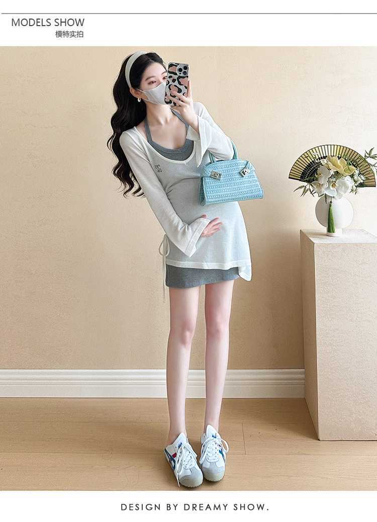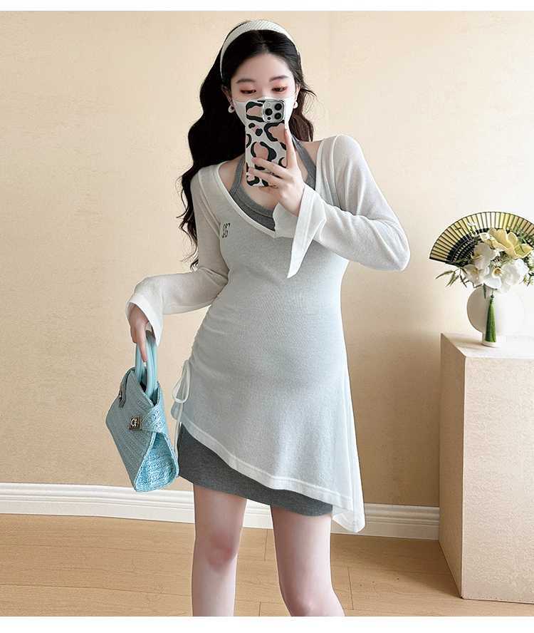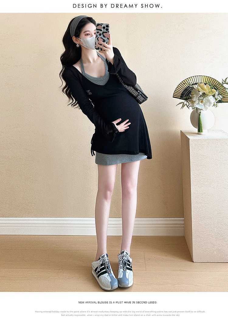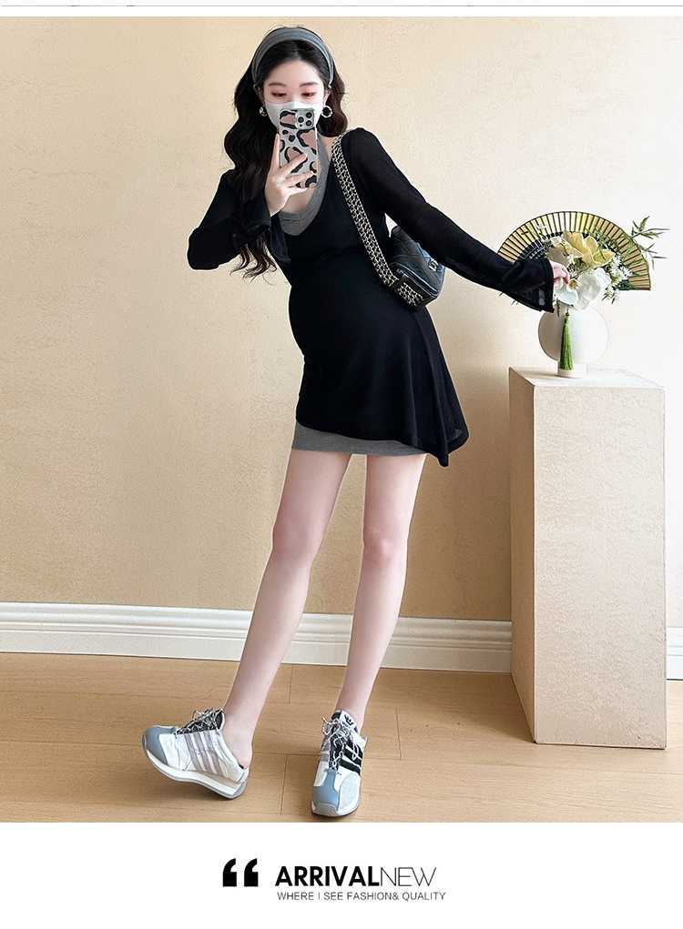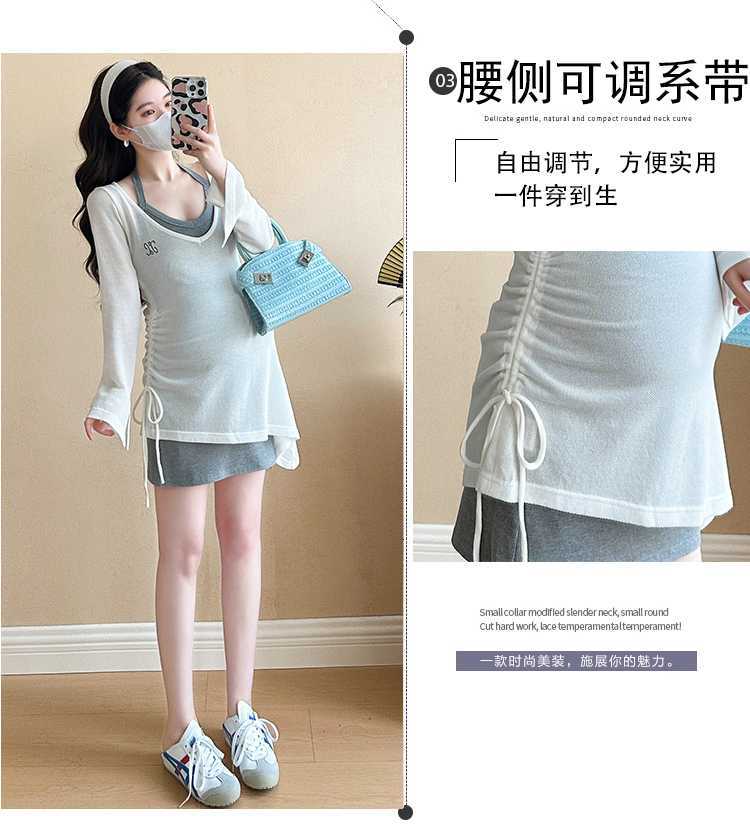 Falda de maternidad de primavera y verano 2025, estilo francés de dos piezas, estilo holgado, con cuello adelgazante para embarazadas