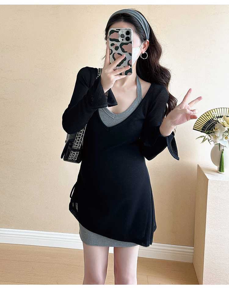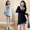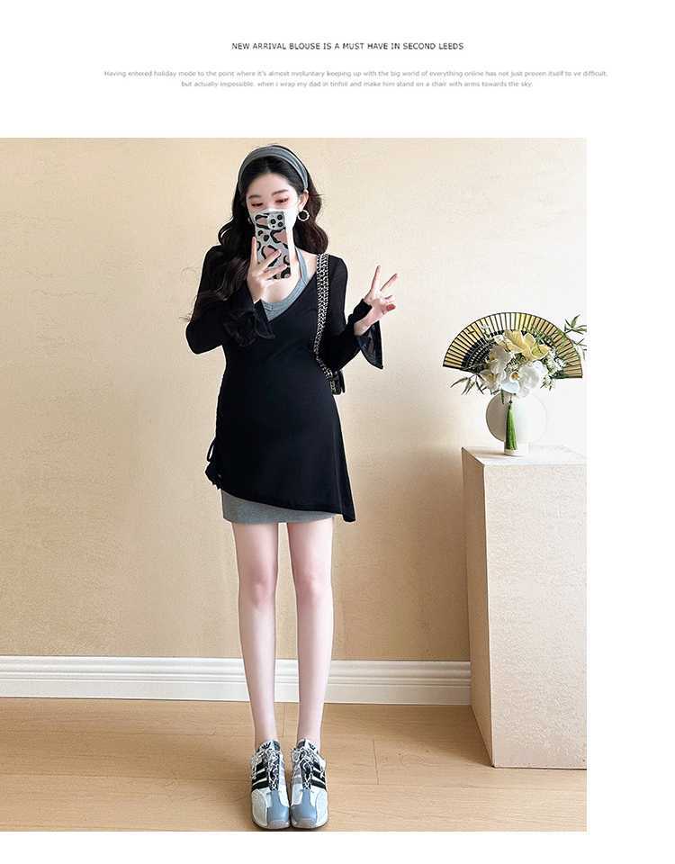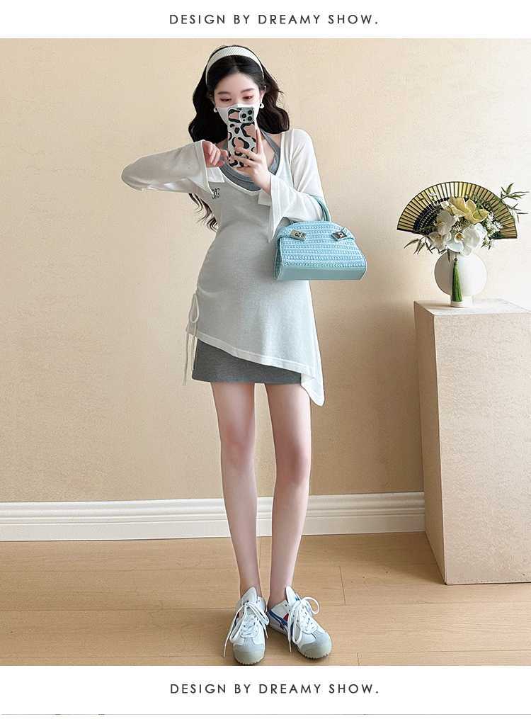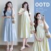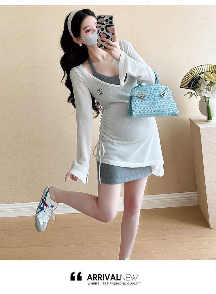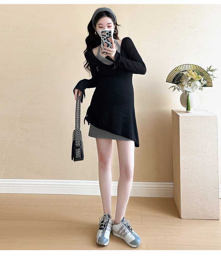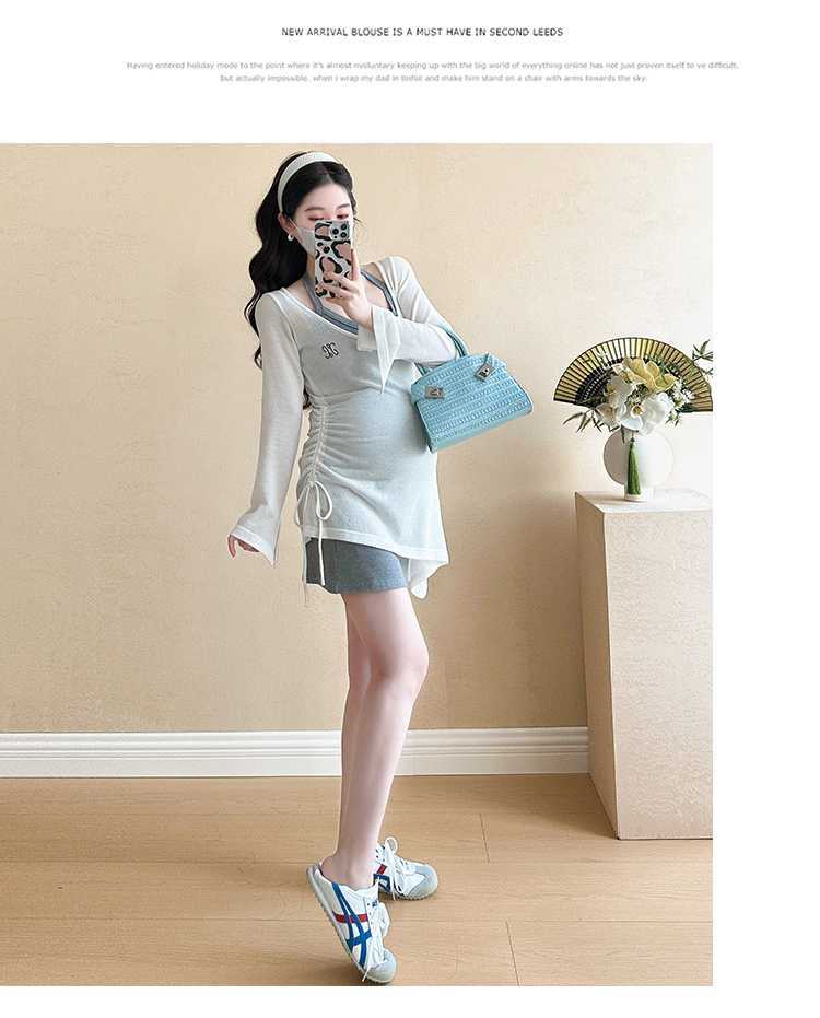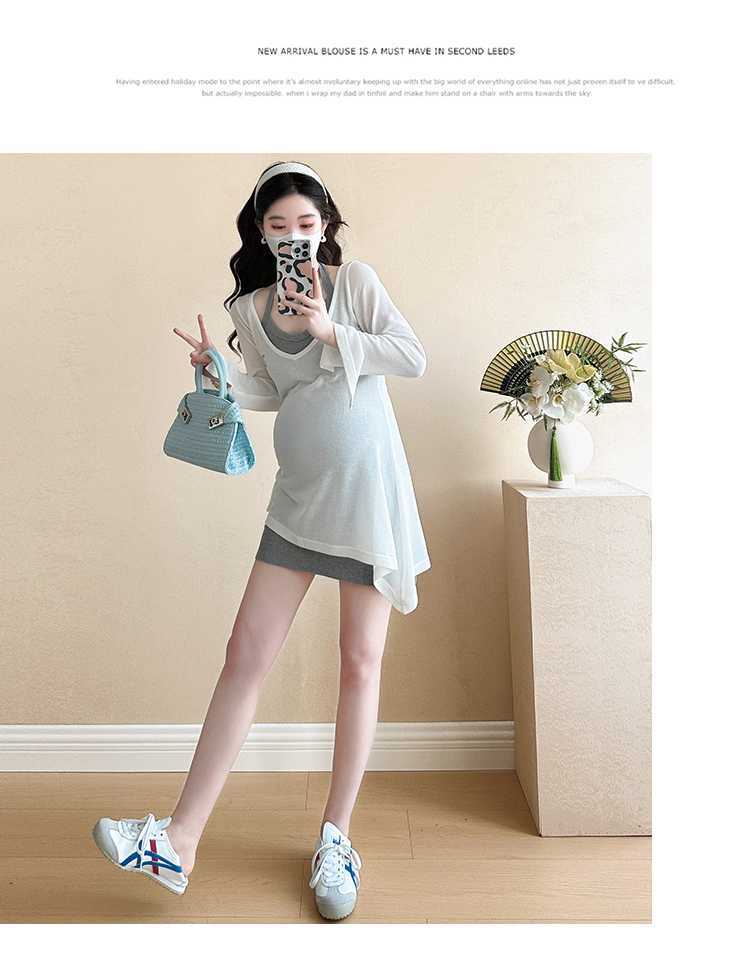 Falda de maternidad de primavera y verano 2025, estilo francés de dos piezas, estilo holgado, con cuello adelgazante para embarazadas