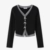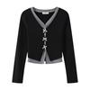 Traje Dulce Elegante para Mujer Otoño 2025 Nuevo Falso de Dos Piezas Lazo Cuello en V Cárdigan de Punto Falda Larga Plisada Línea A