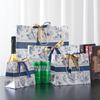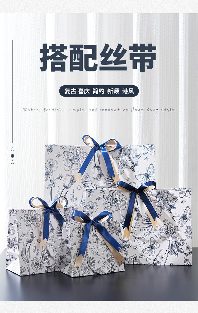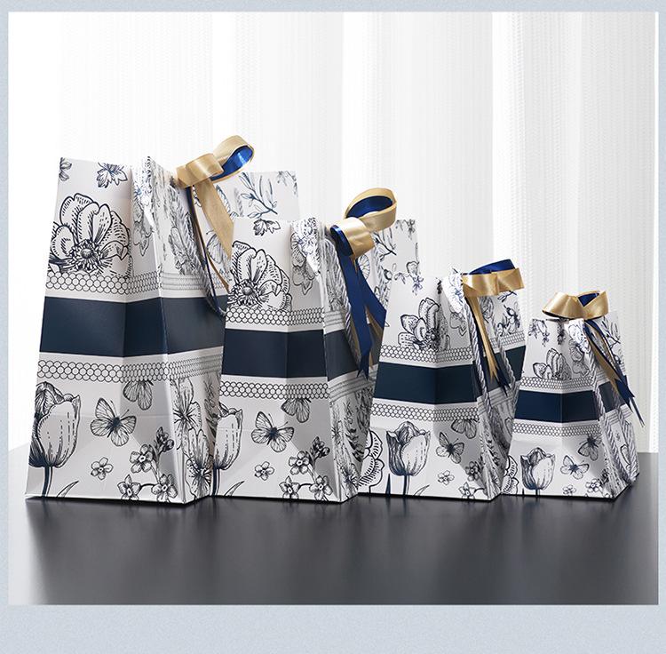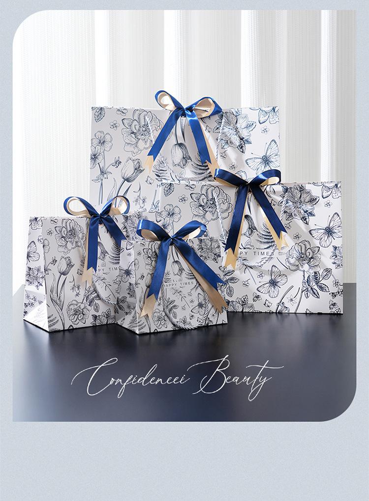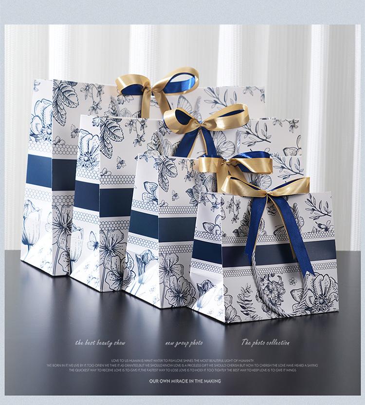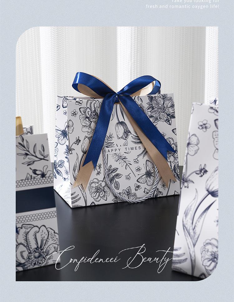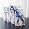Bolsa de regalo con lazo azul, bolsa de regalo de cumpleaños de alta gama, bolsa de papel con flores vintage, bolso de mano transfronterizo