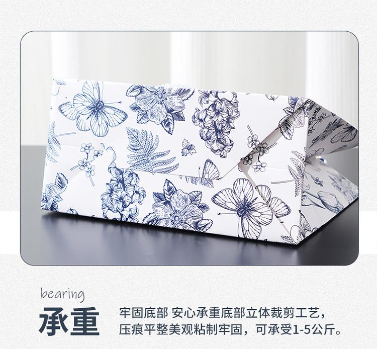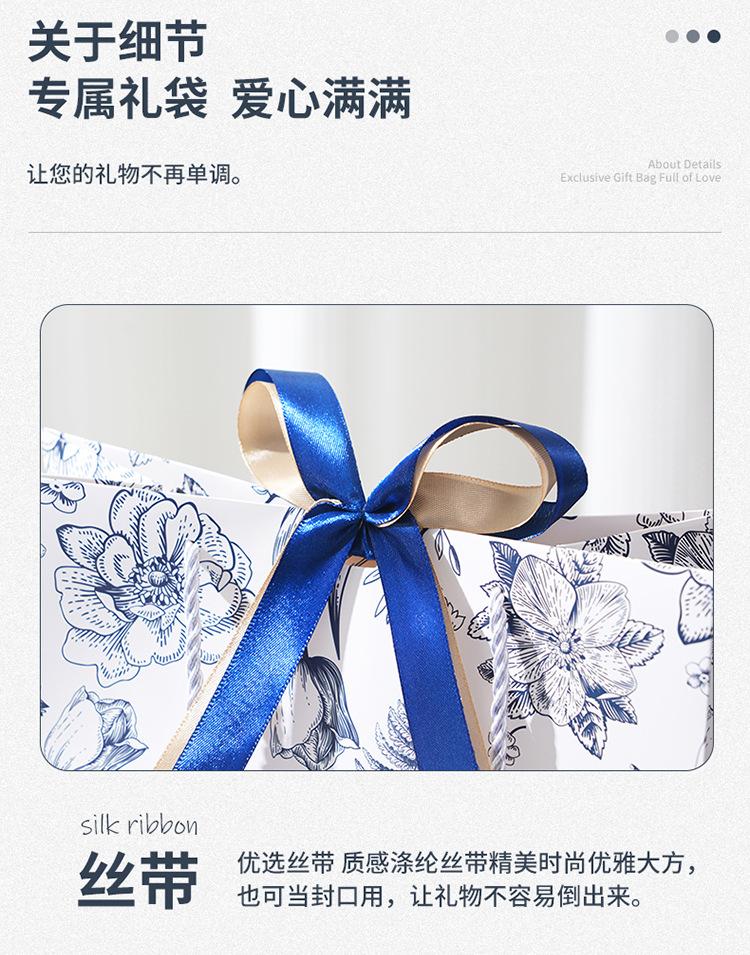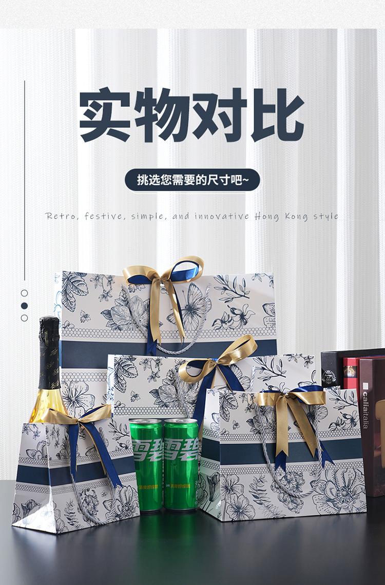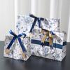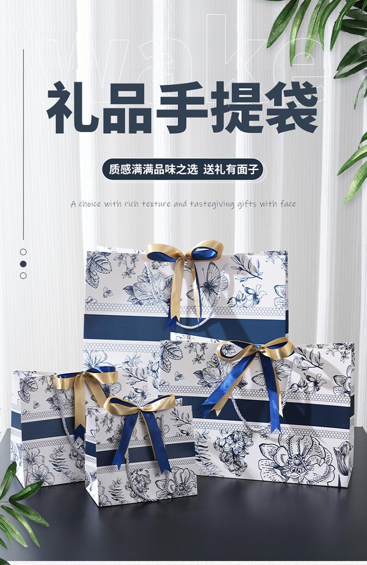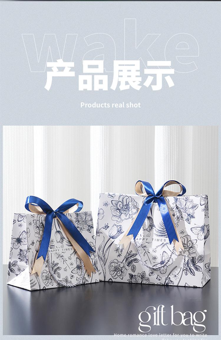 Bolsa de regalo con lazo azul, bolsa de regalo de cumpleaños de alta gama, bolsa de papel con flores vintage, bolso de mano transfronterizo