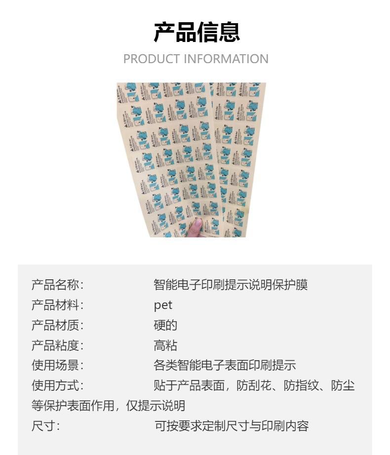 Las puntas de impresión electrónica inteligente muestran que la película protectora PET con material de alta adherencia es transparente, resistente a rayones y a prueba de polvo.