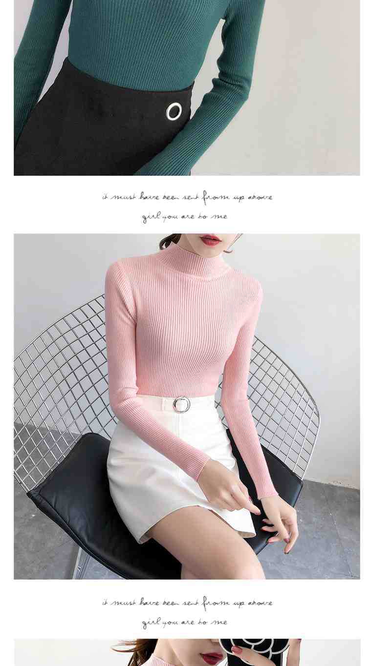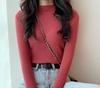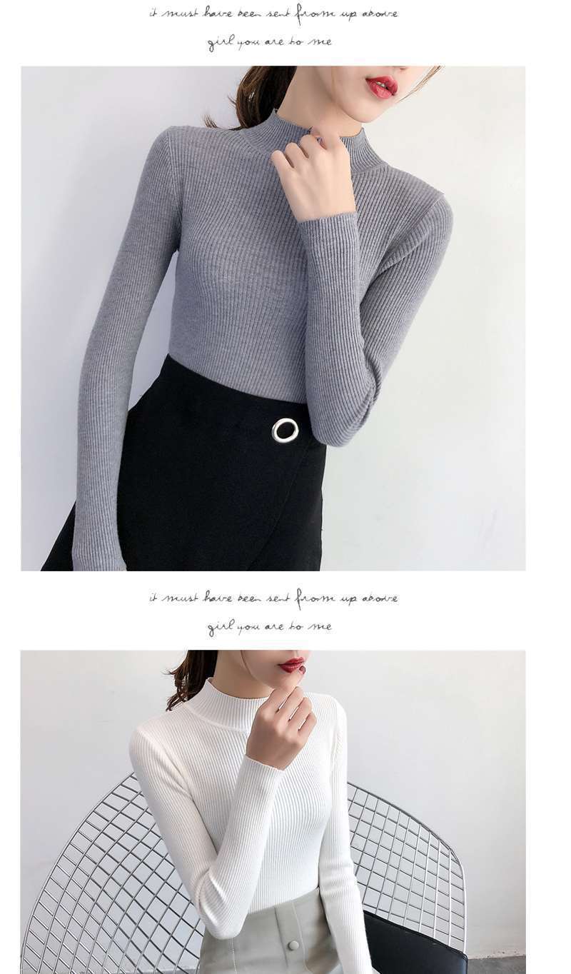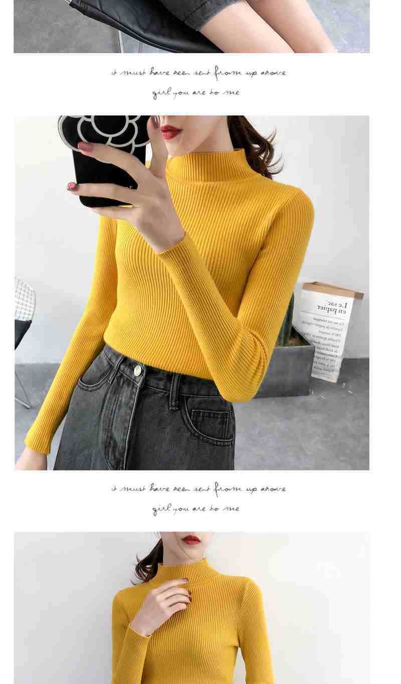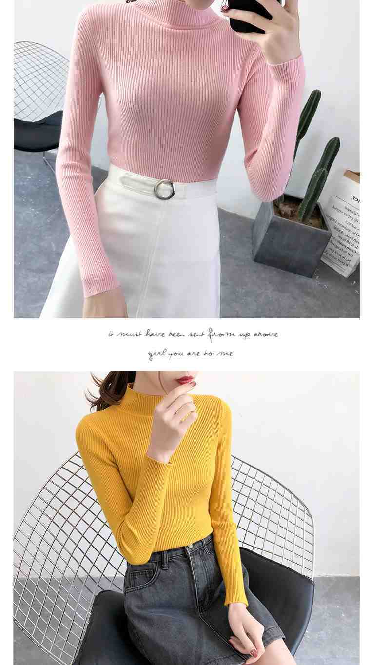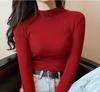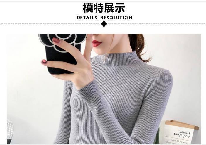 Ropa de Punto de Cuello Medio Alto 2025 Ropa de Punto Ajustada para Estudiantes Estilo Coreano Otoño e Invierno Nuevo Estilo con Top de Manga Larga