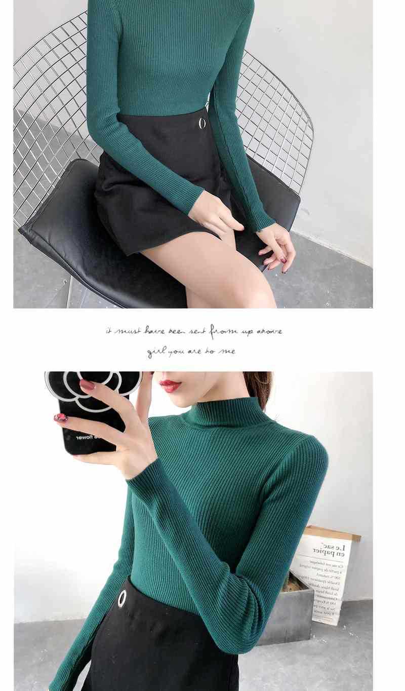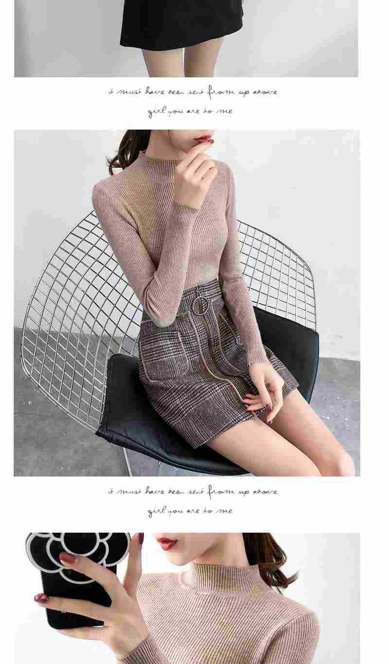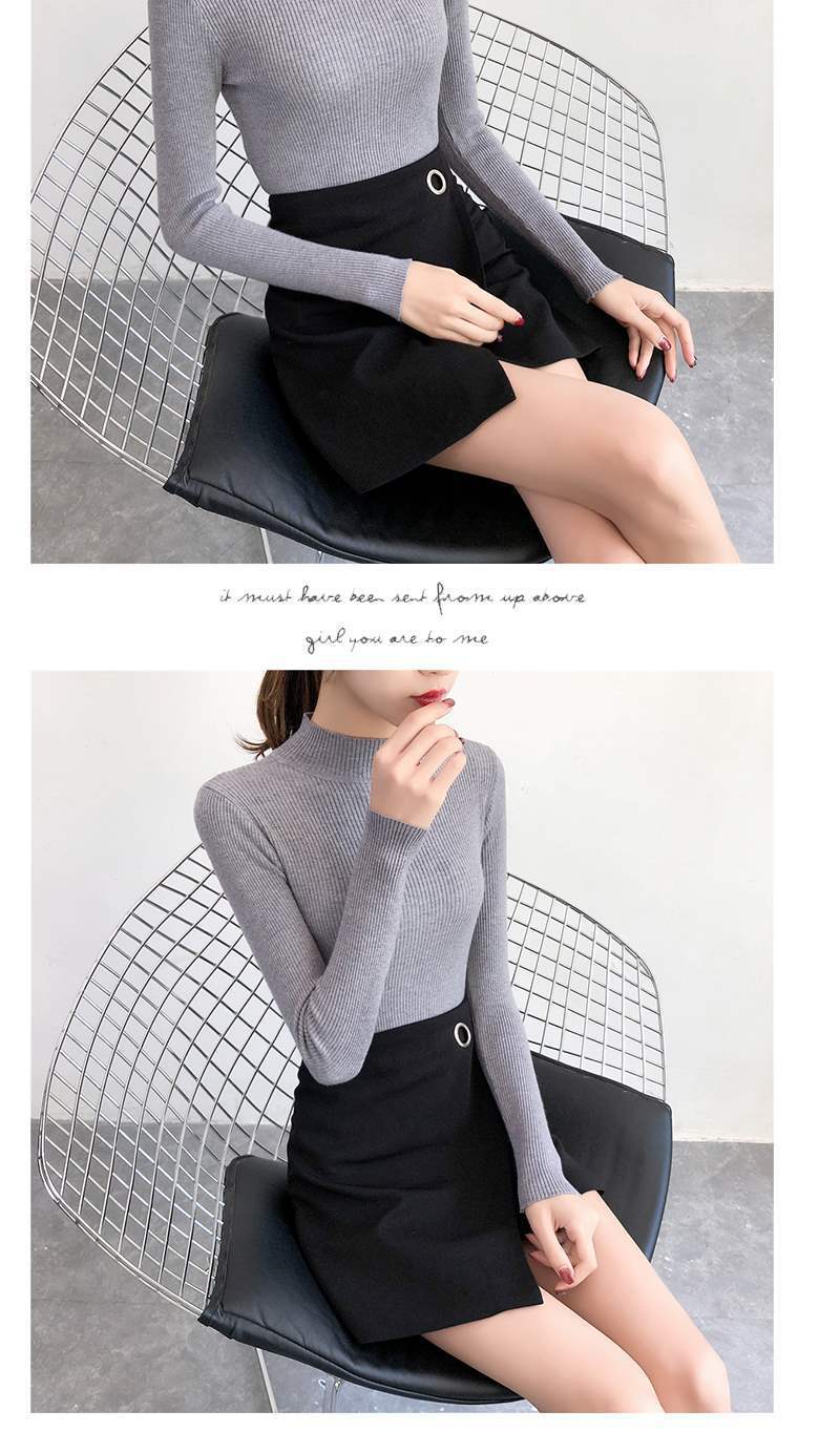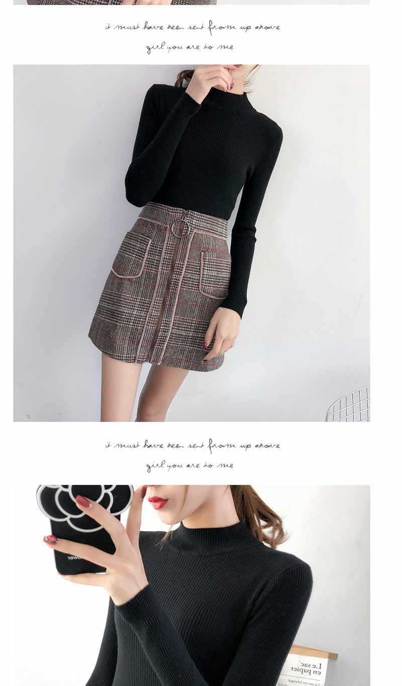 Ropa de Punto de Cuello Medio Alto 2025 Ropa de Punto Ajustada para Estudiantes Estilo Coreano Otoño e Invierno Nuevo Estilo con Top de Manga Larga