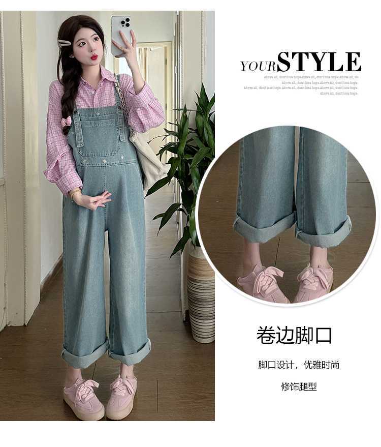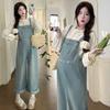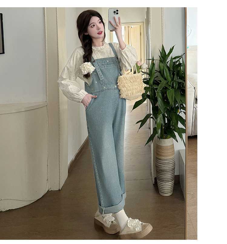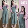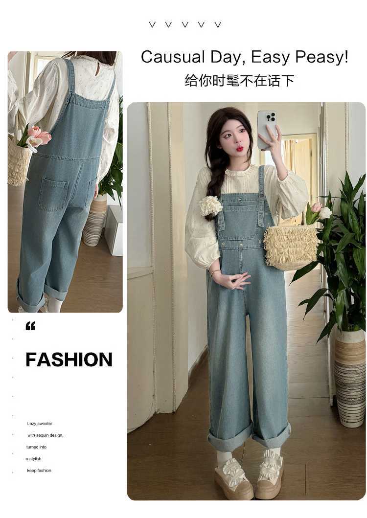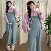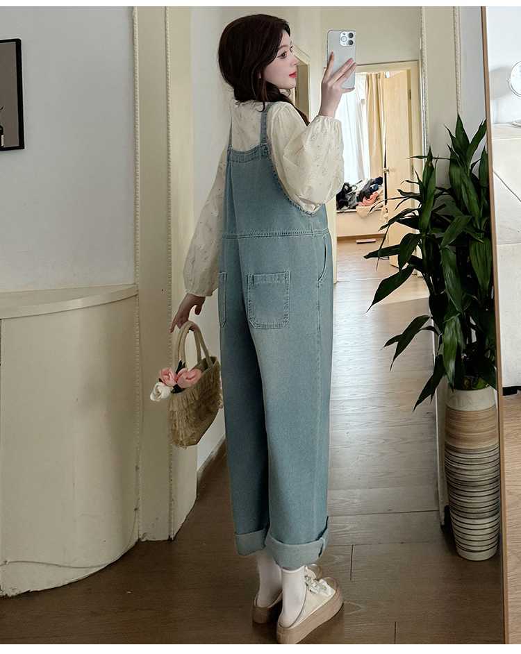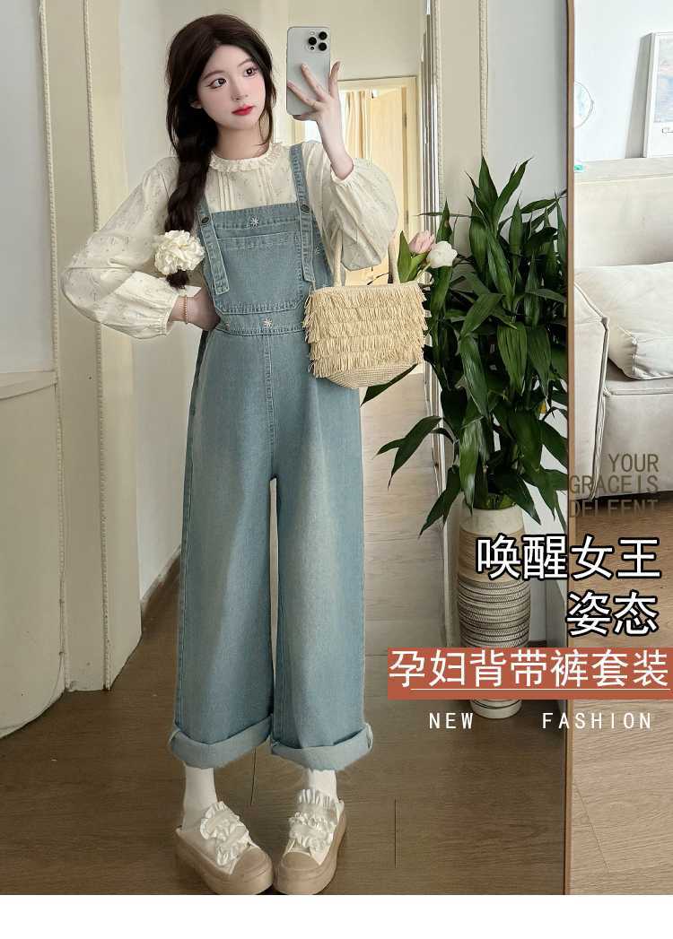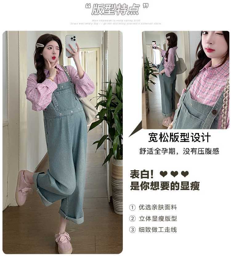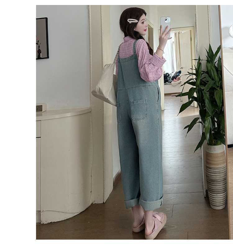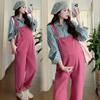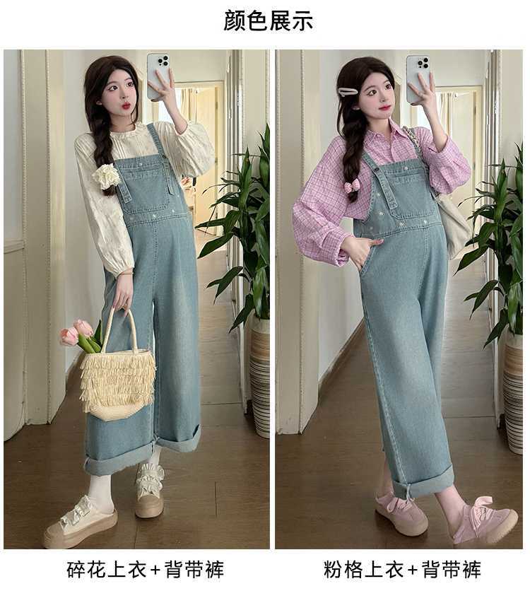 Pantalones de maternidad de primavera 2025, nuevos pantalones coreanos de dos piezas con cuello alto y manga larga, informales, de mezclilla, con tiras para embarazadas.