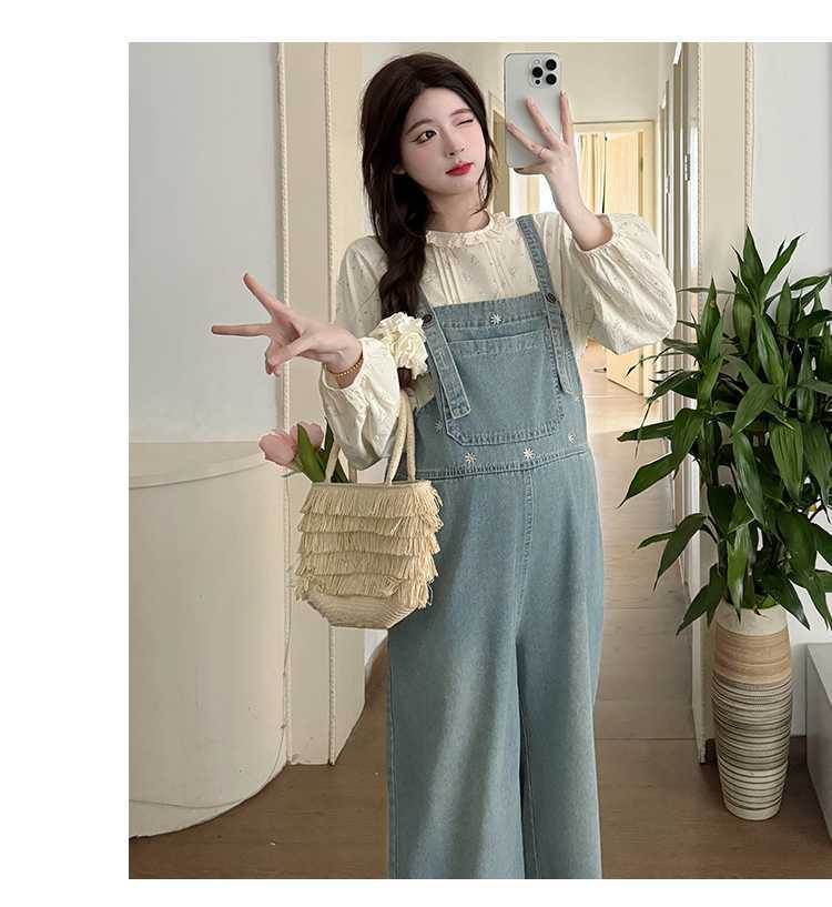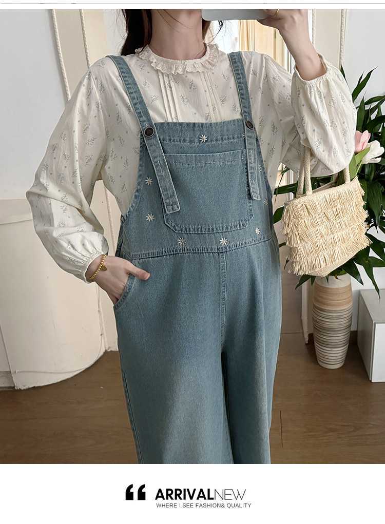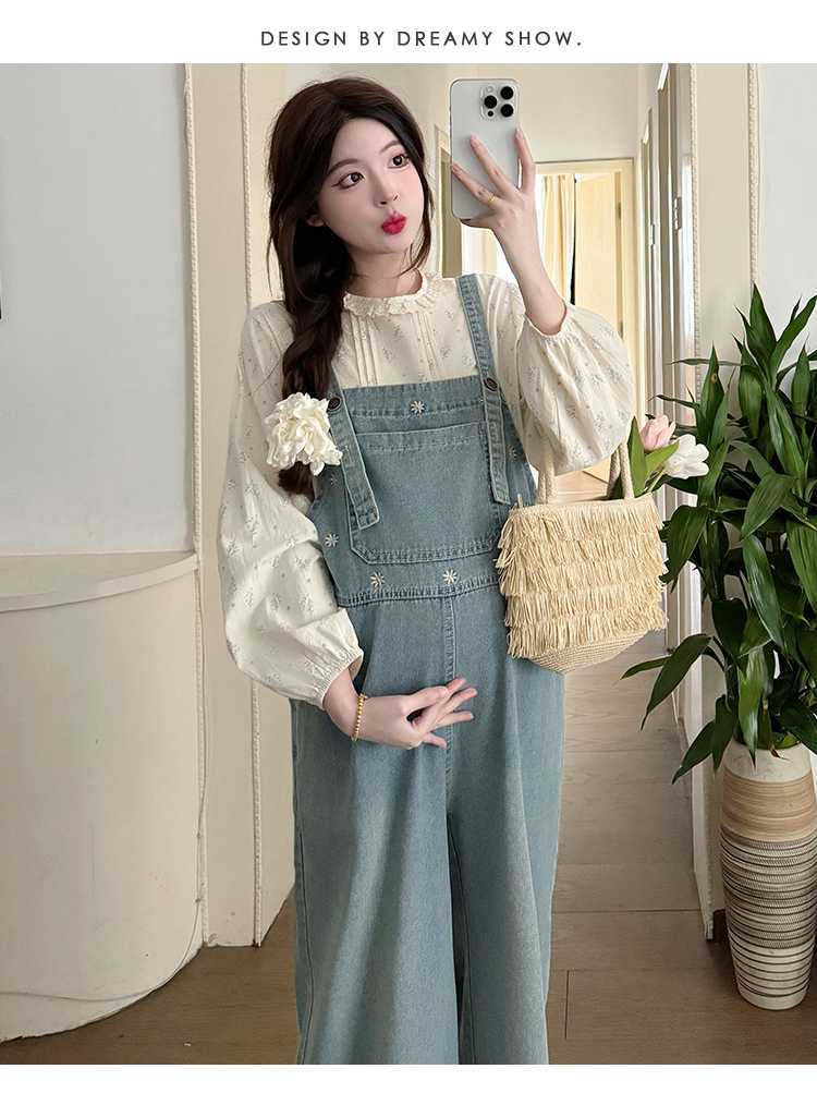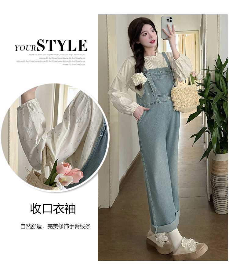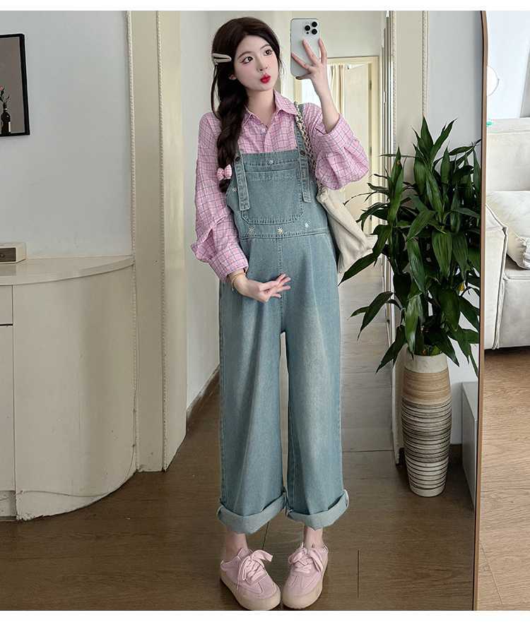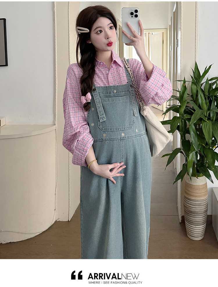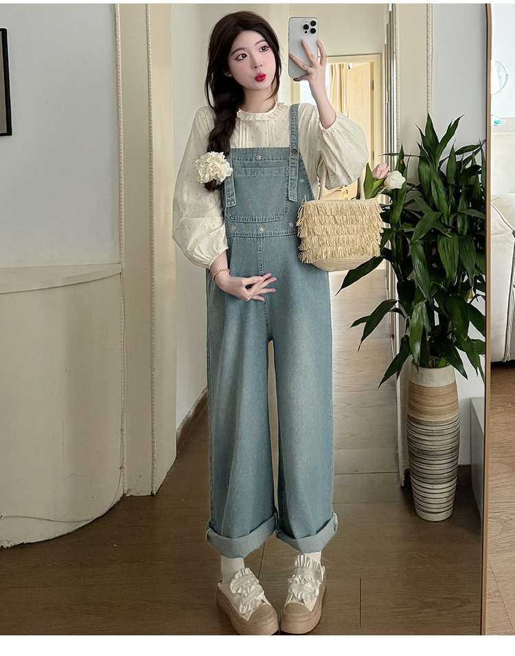 Pantalones de maternidad de primavera 2025, nuevos pantalones coreanos de dos piezas con cuello alto y manga larga, informales, de mezclilla, con tiras para embarazadas.