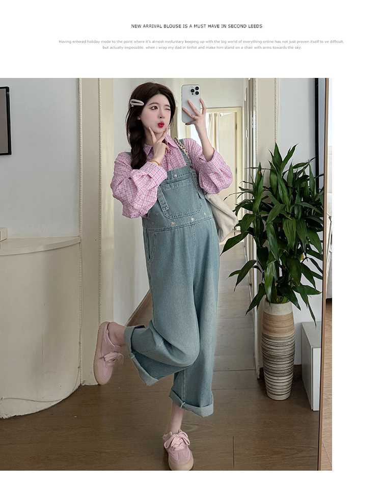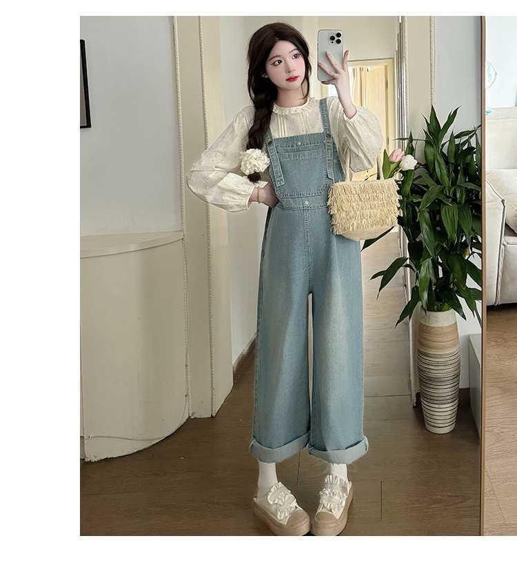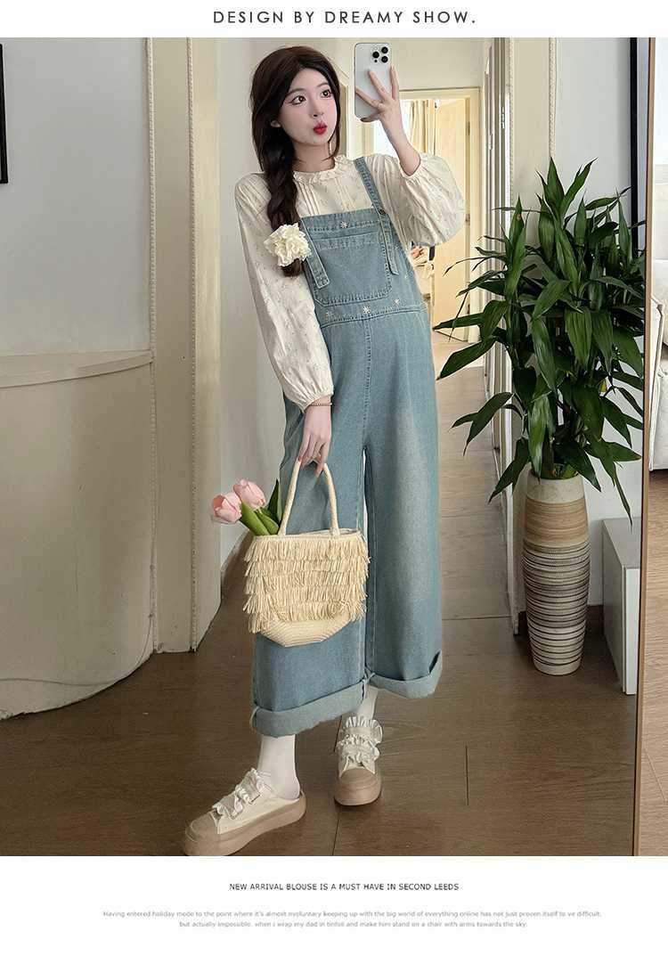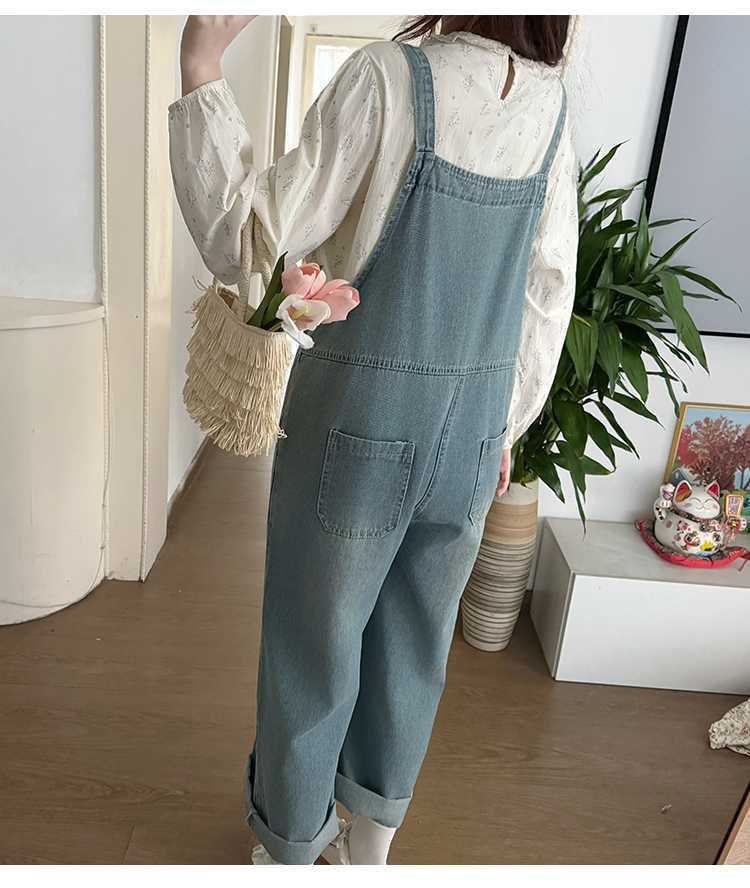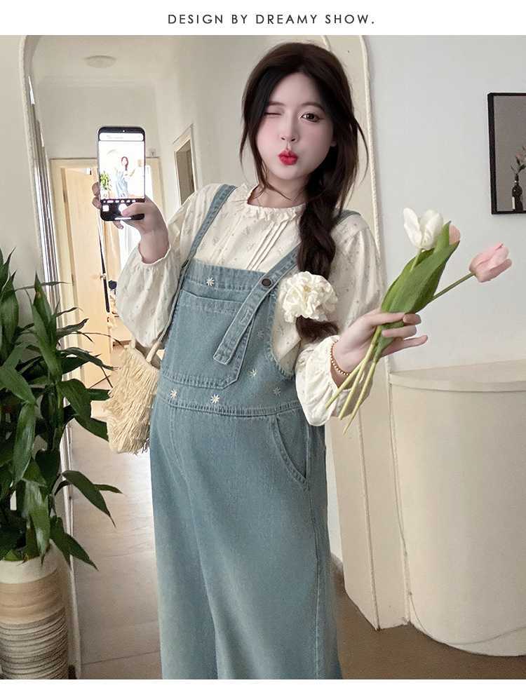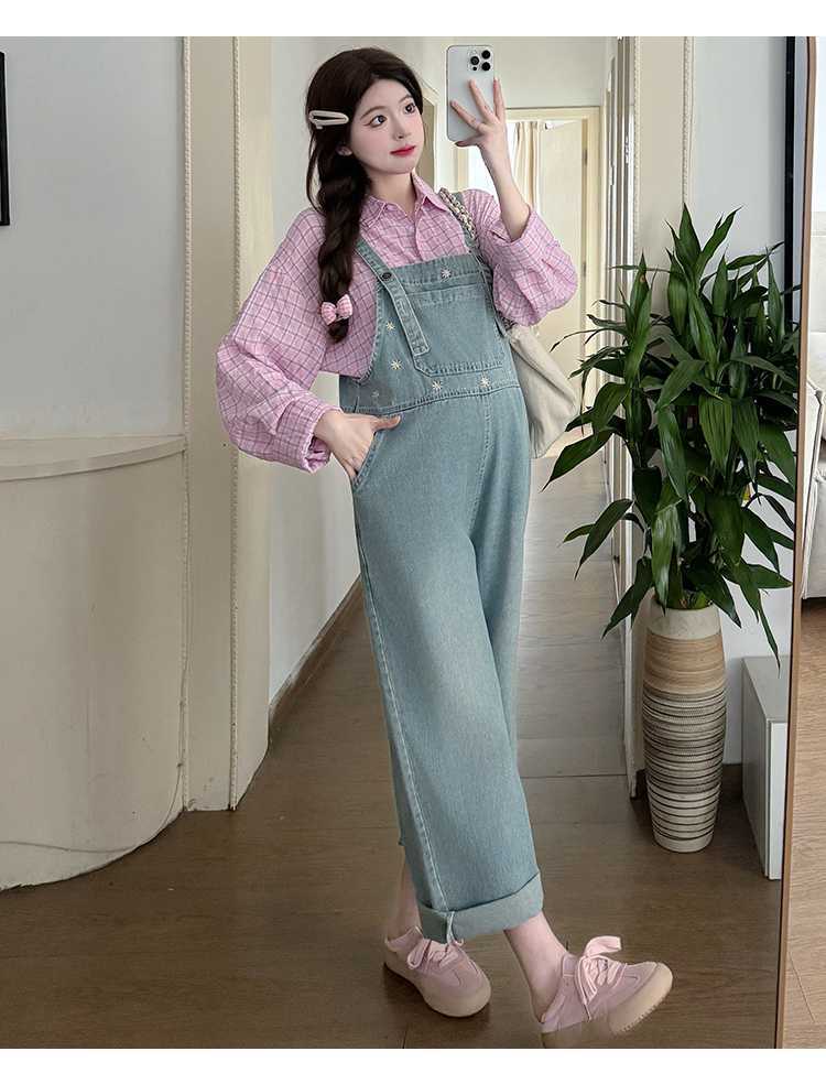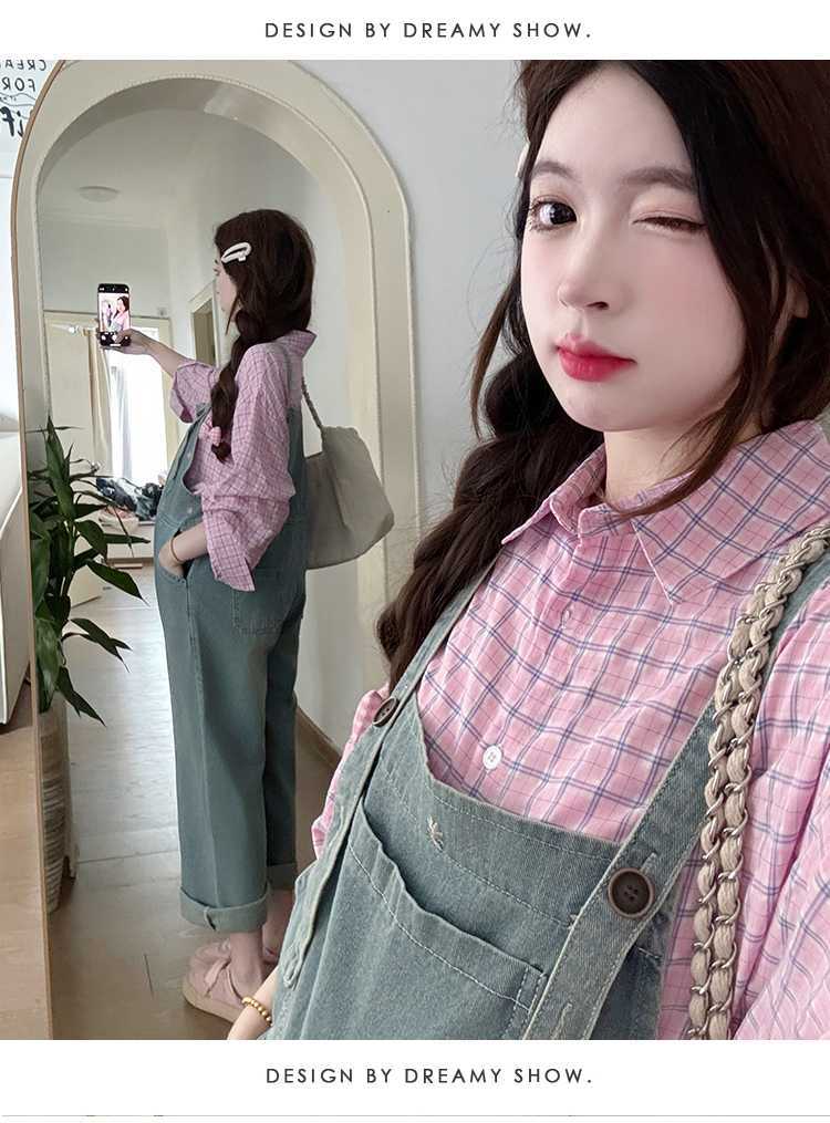 Pantalones de maternidad de primavera 2025, nuevos pantalones coreanos de dos piezas con cuello alto y manga larga, informales, de mezclilla, con tiras para embarazadas.