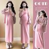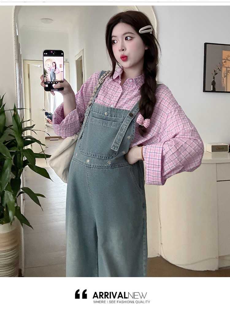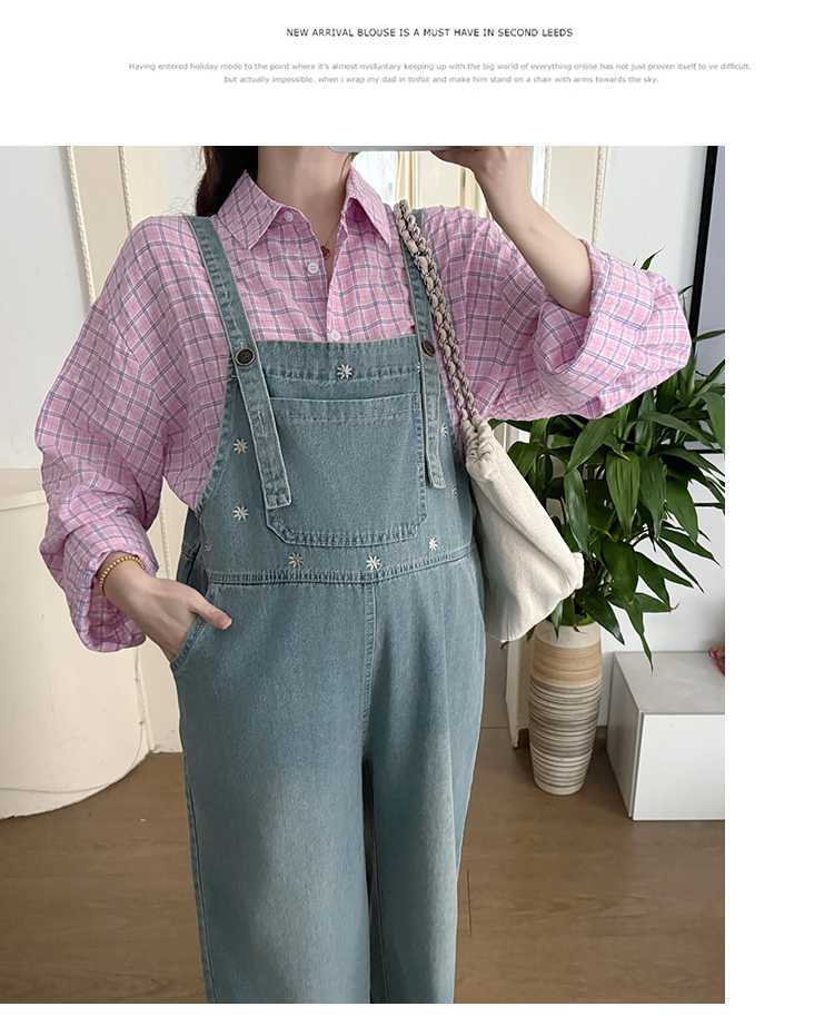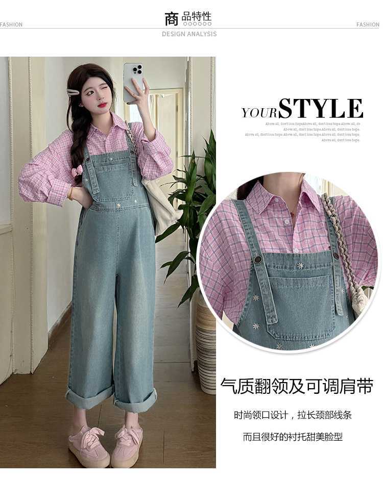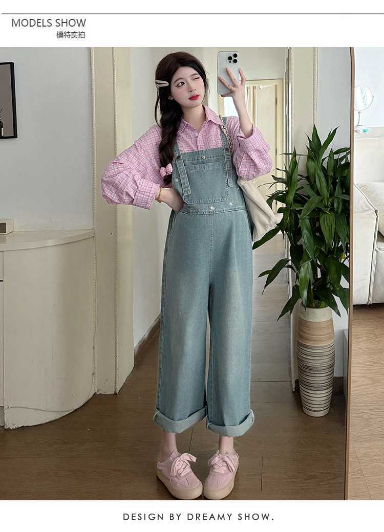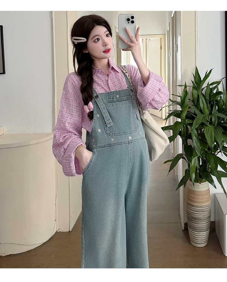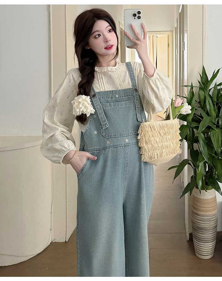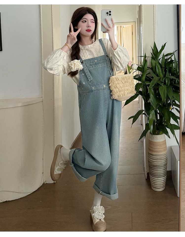 Pantalones de maternidad de primavera 2025, nuevos pantalones coreanos de dos piezas con cuello alto y manga larga, informales, de mezclilla, con tiras para embarazadas.