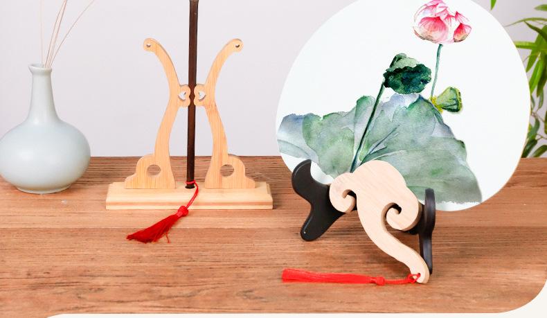 Soporte para Abanico Chino, Soporte para Abanico, Abanico Plegable, Soporte de Exhibición para Abanico Redondo, Base para Abanico, Madera Maciza
