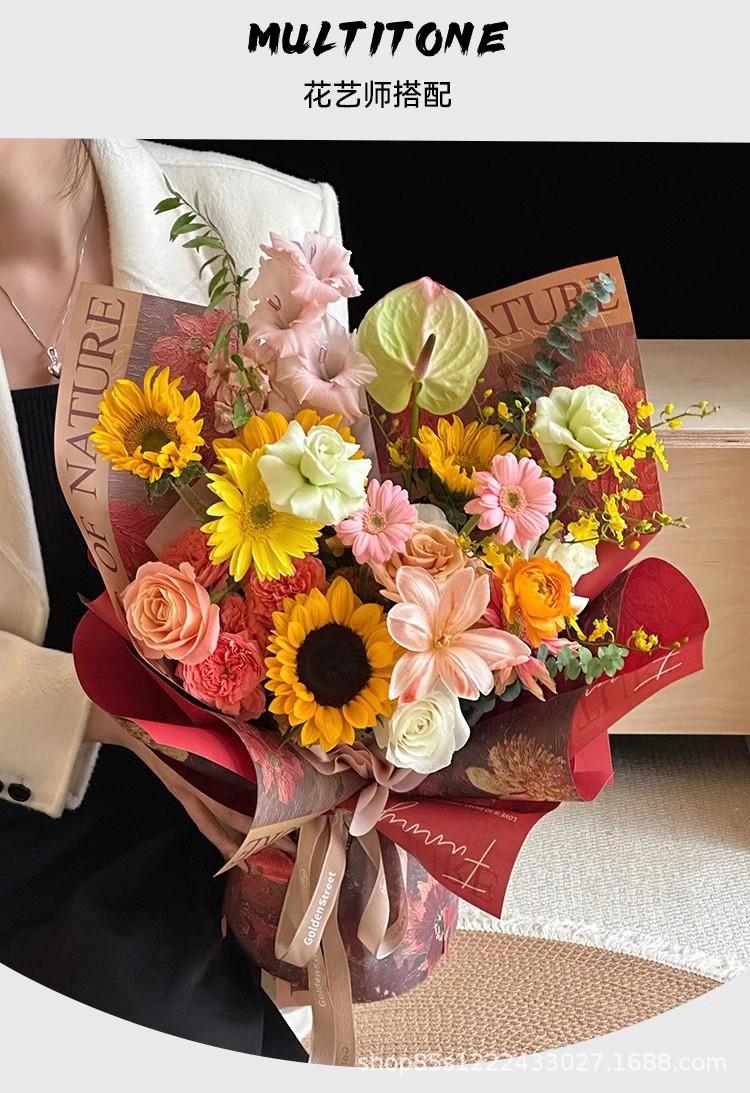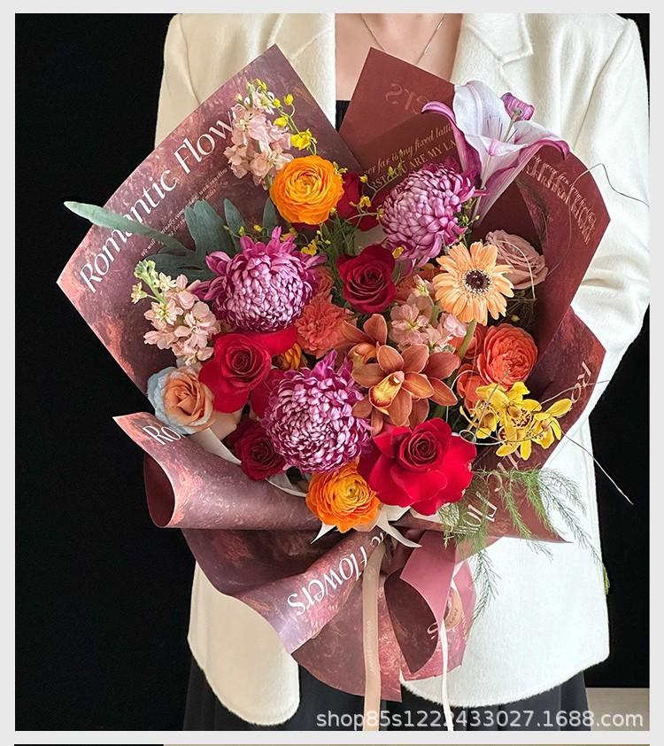 Material de Flor de Fibra Zhuo Pintura al Óleo Maillard Papel para Envolver Flores Arte Floral Papel Kraft Engrosado Material para Flores de Regalo Papel para Envolver Flores