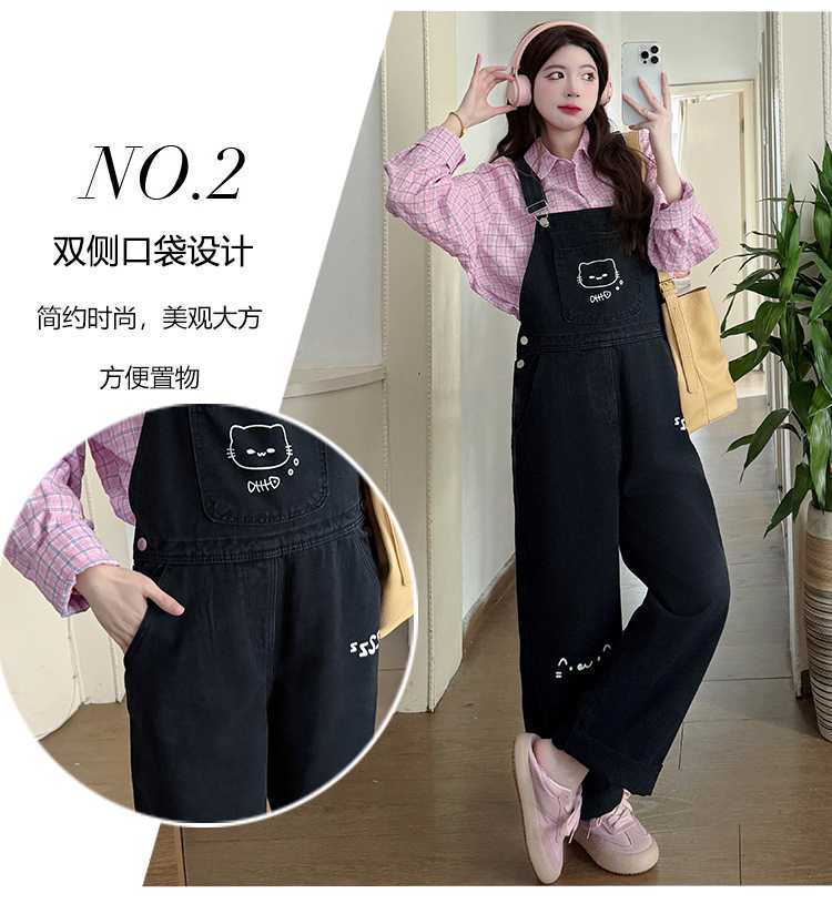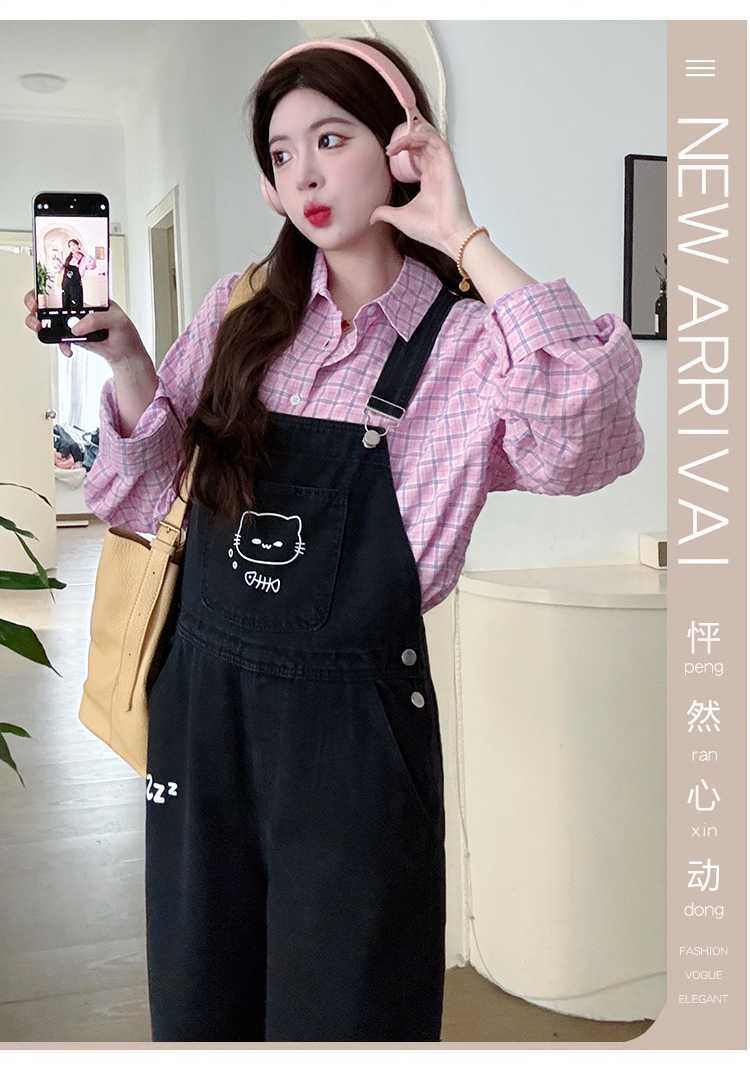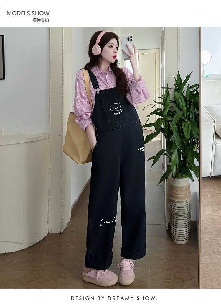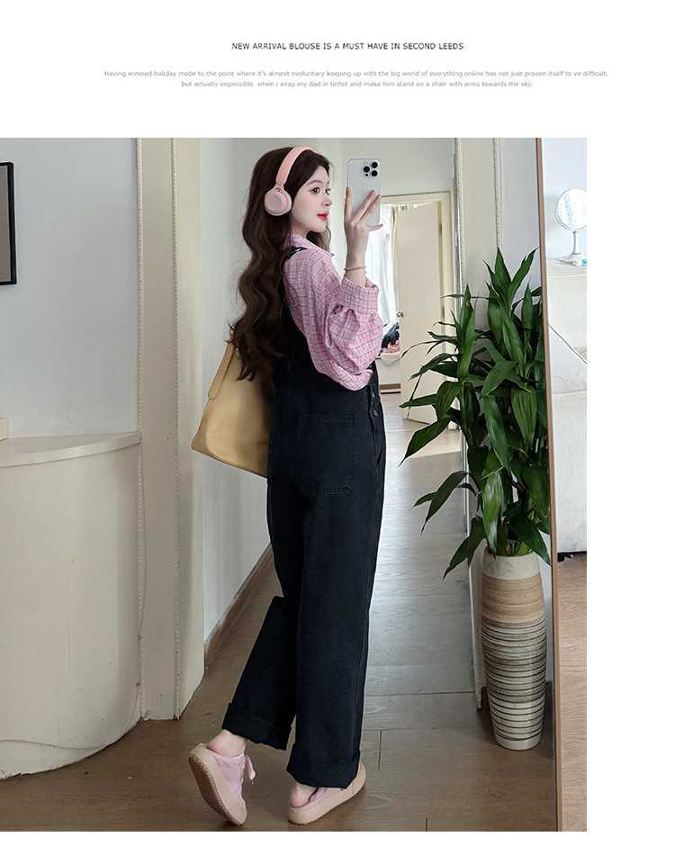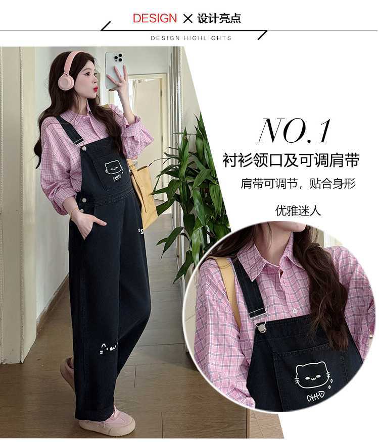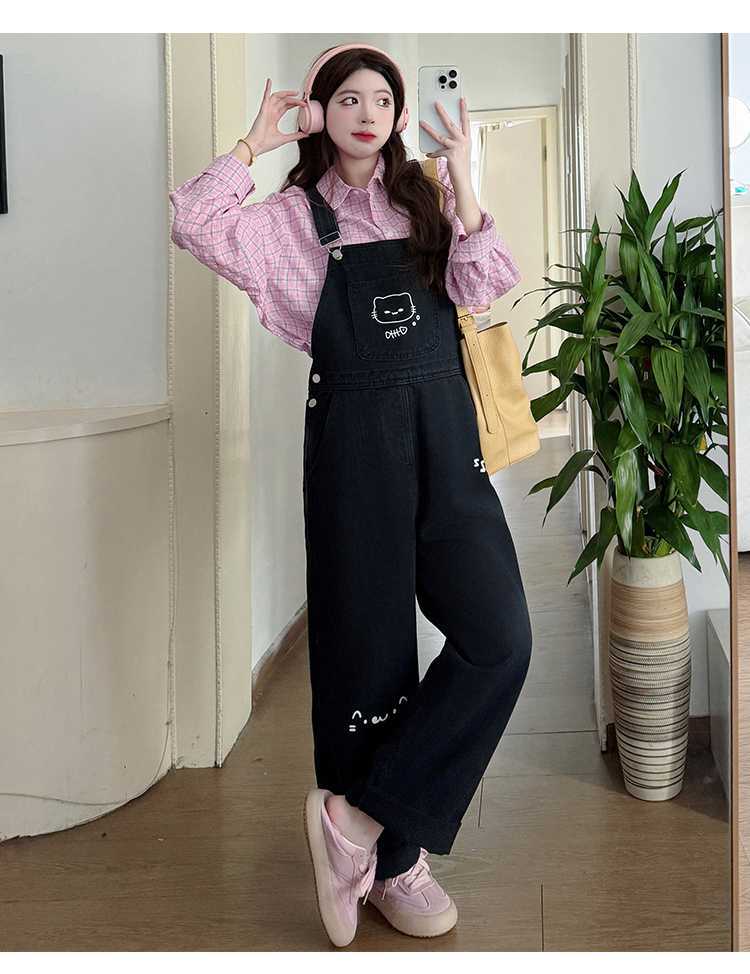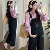 Camisa a cuadros de dos piezas, pantalones vaqueros informales con tirantes para embarazadas, moda sencilla de maternidad de primavera 2025