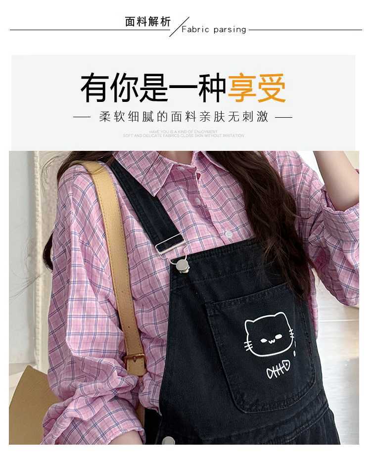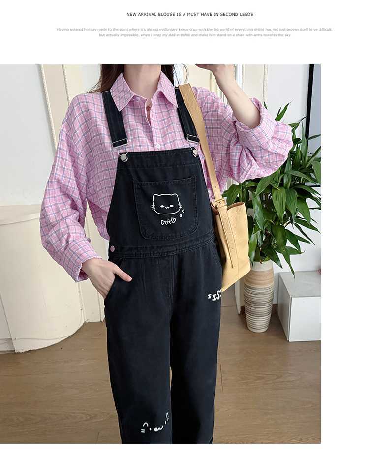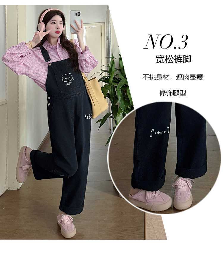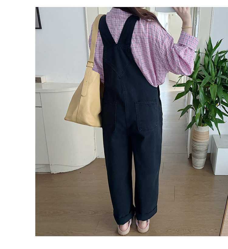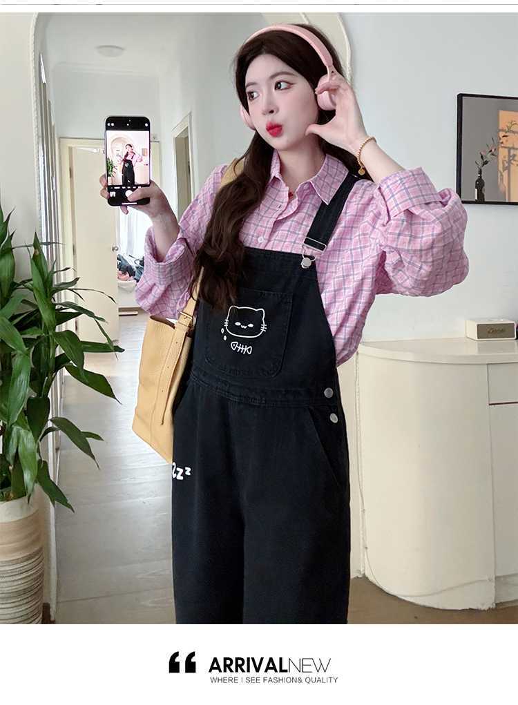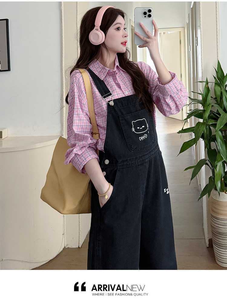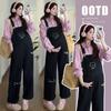 Camisa a cuadros de dos piezas, pantalones vaqueros informales con tirantes para embarazadas, moda sencilla de maternidad de primavera 2025