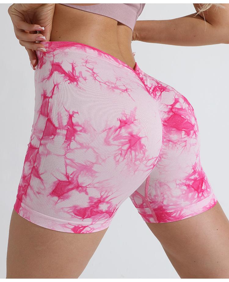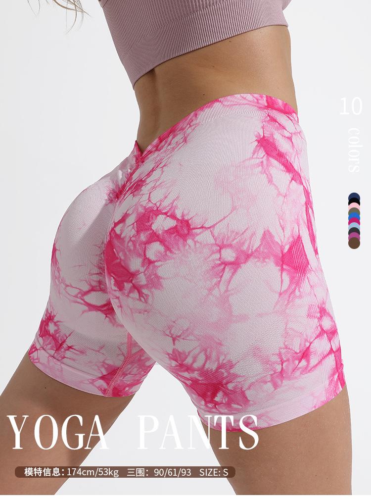 Shorts de Yoga Tie-Dye Transfronterizos Personalizados para Mujer, Pantalones Deportivos para Fitness al Aire Libre, Pantalones de Yoga Ajustados de Cintura Alta, Levanta Caderas de Cintura Alta