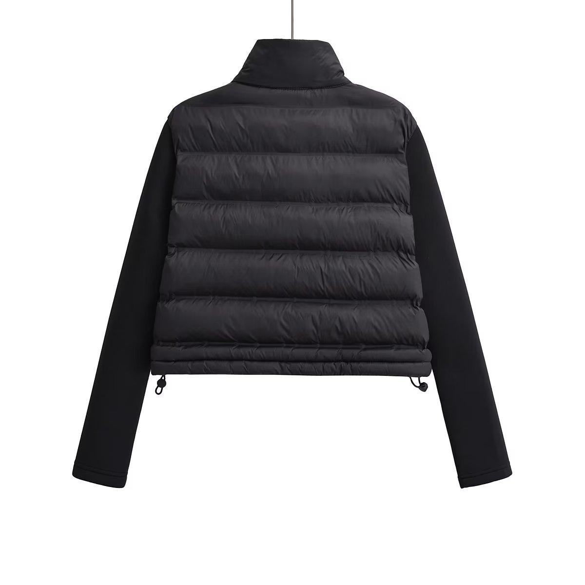 Otoño 2023 nuevo abrigo de algodón con costuras de manga casual para mujer transfronterizo europeo y americano, abrigo de algodón cálido acolchado de color sólido