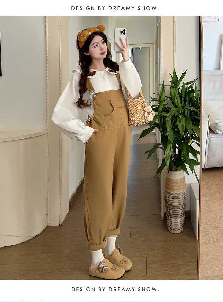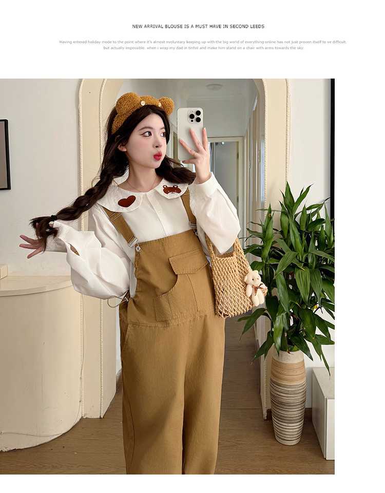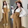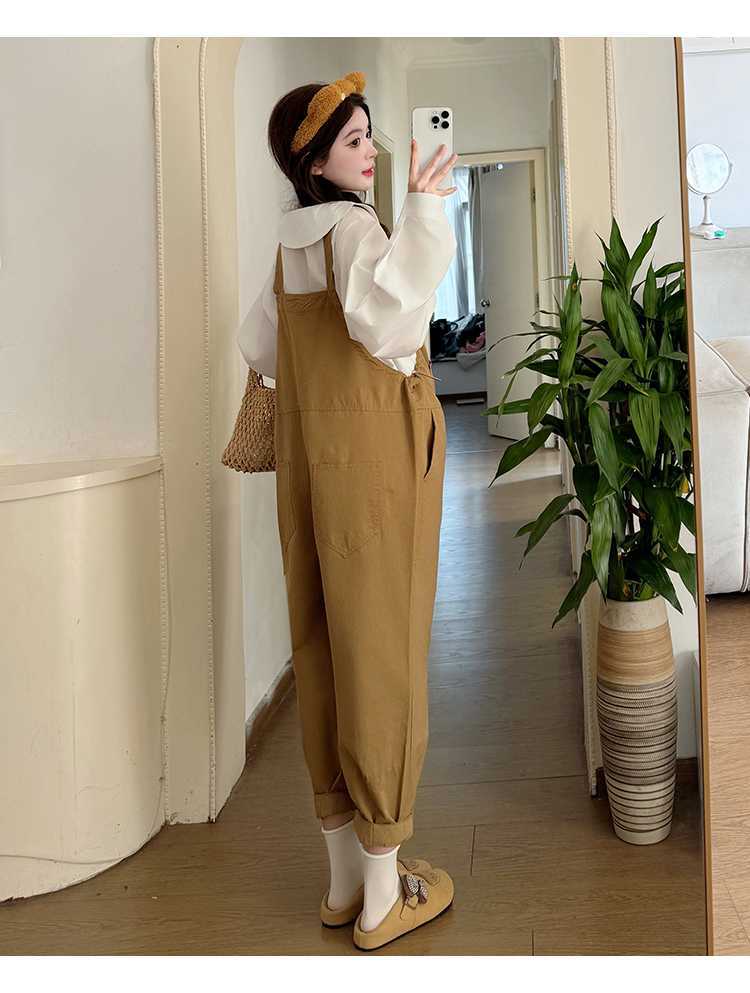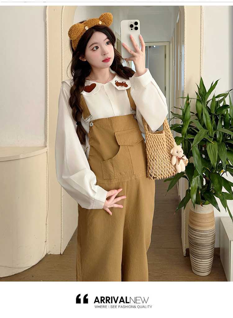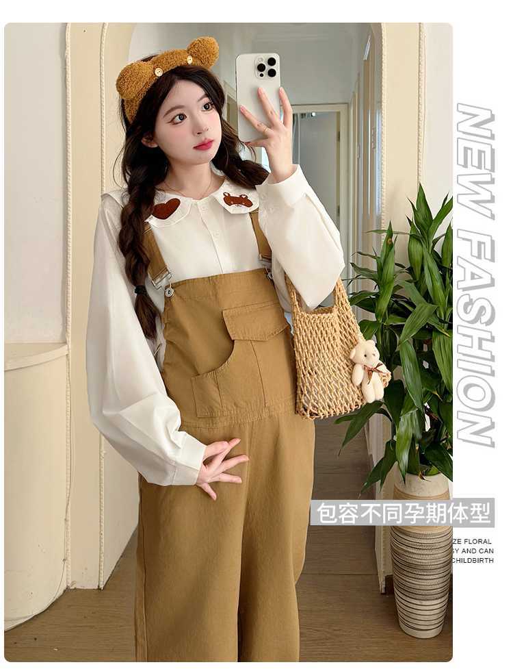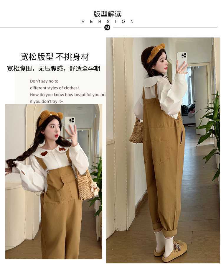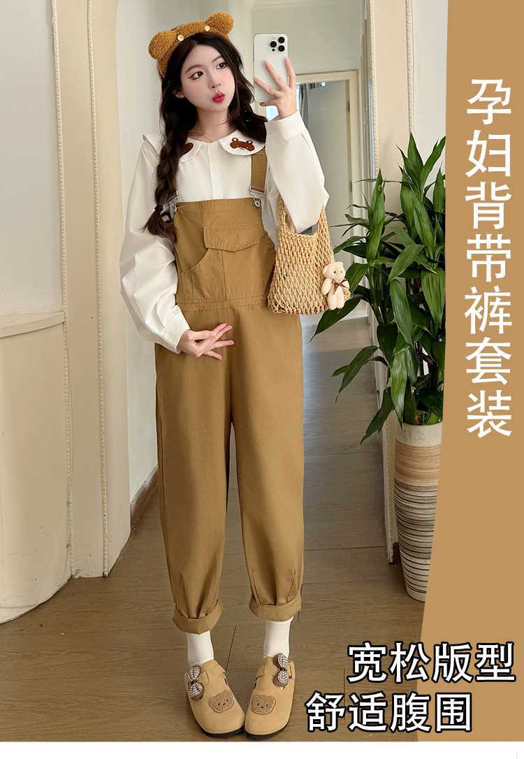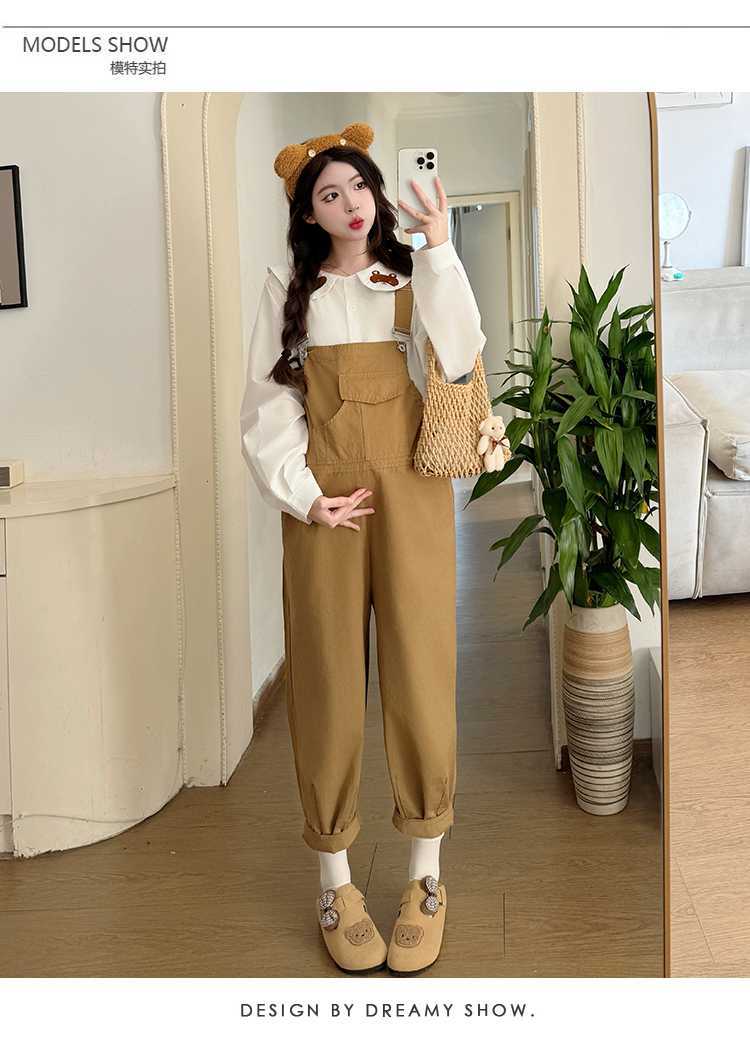 Camisa de maternidad coreana informal de dos piezas con cuello de muñeca dulce, tirantes de mezclilla para embarazadas, primavera 2025