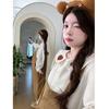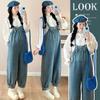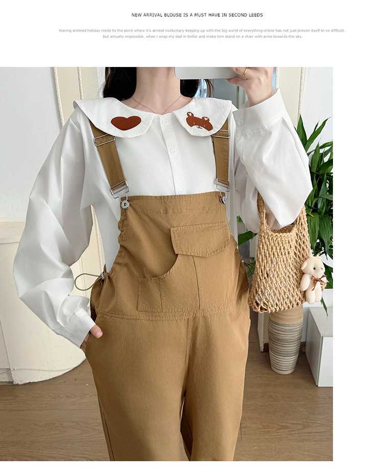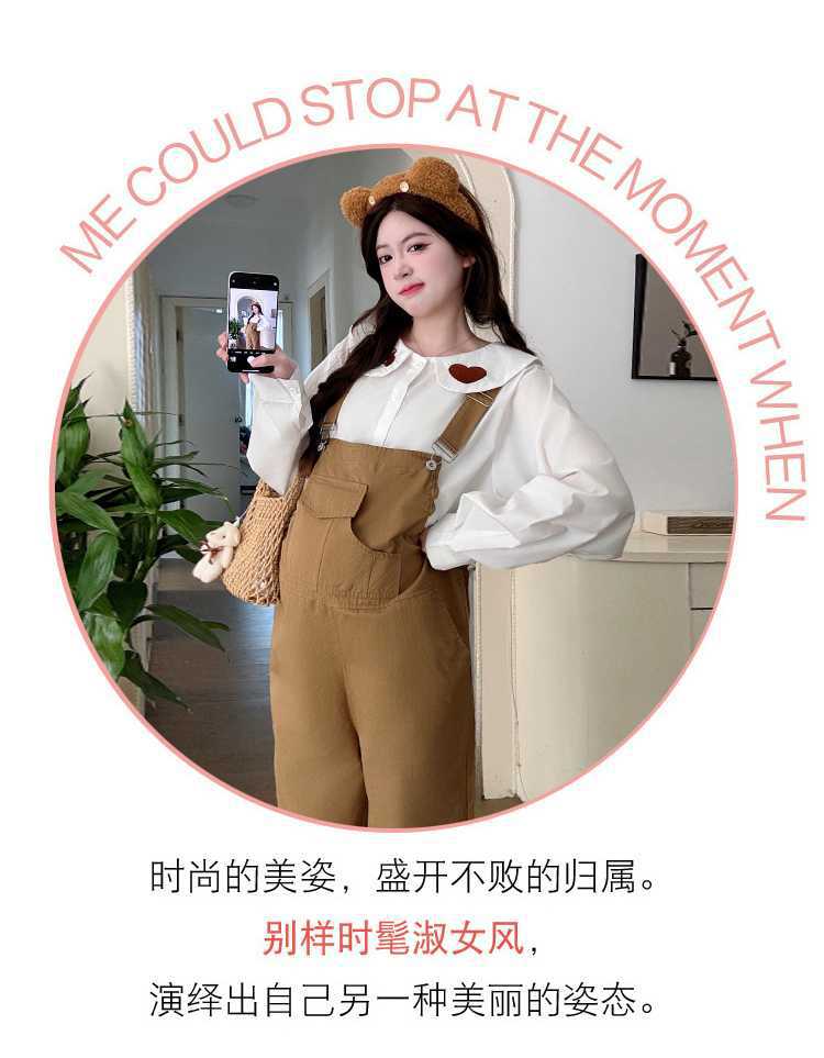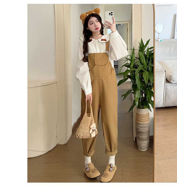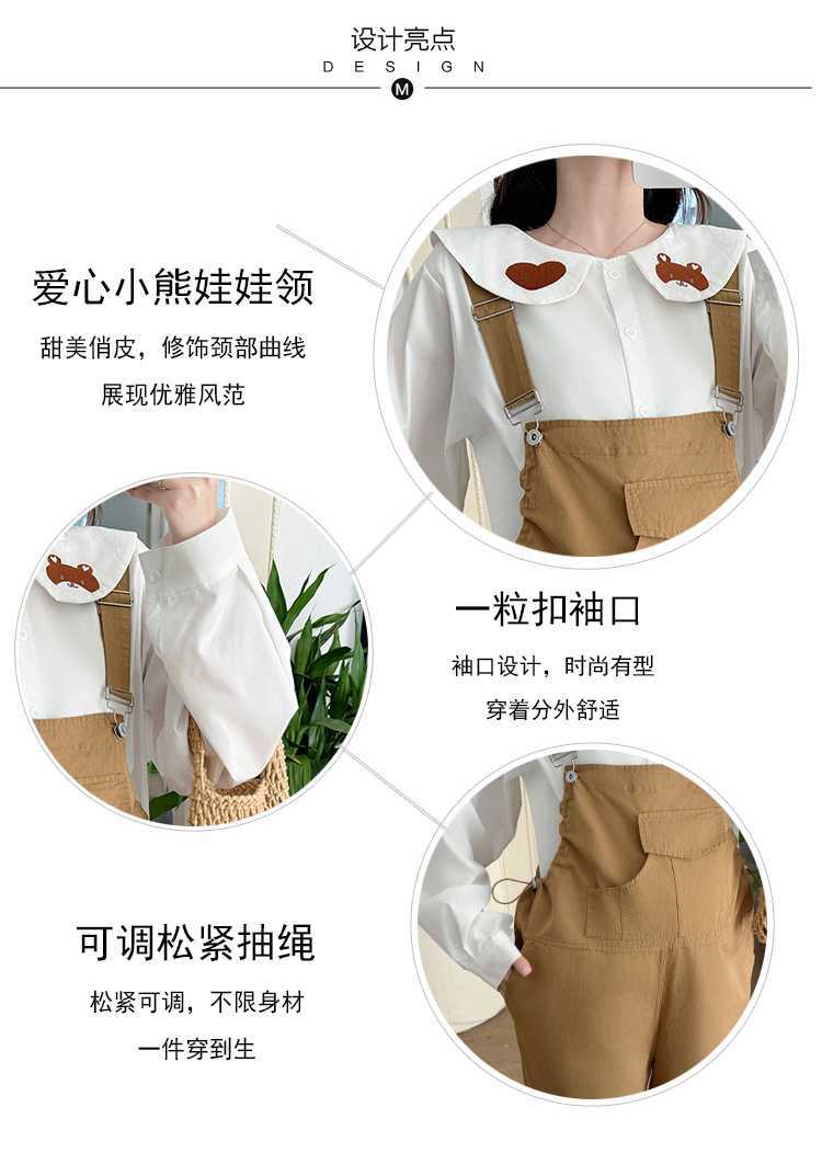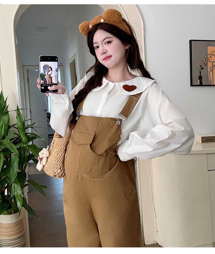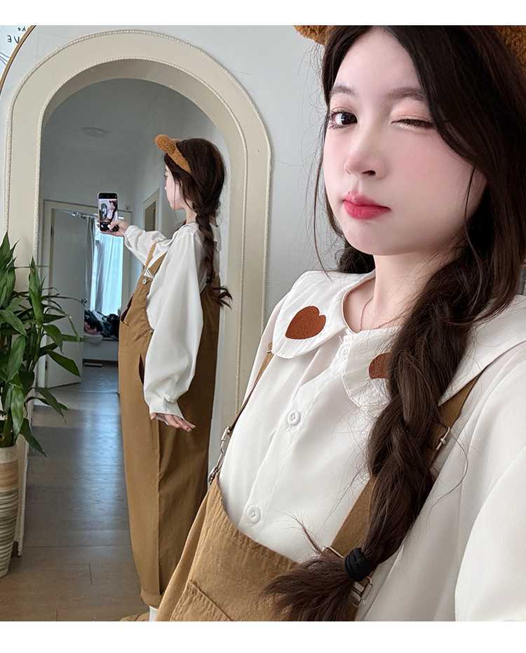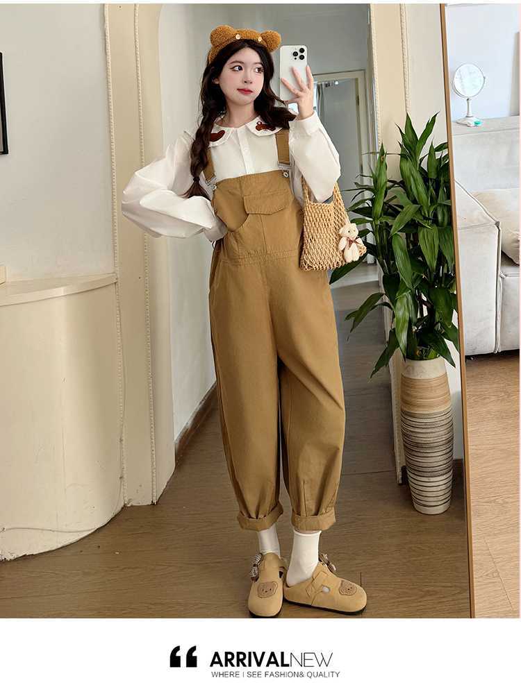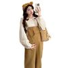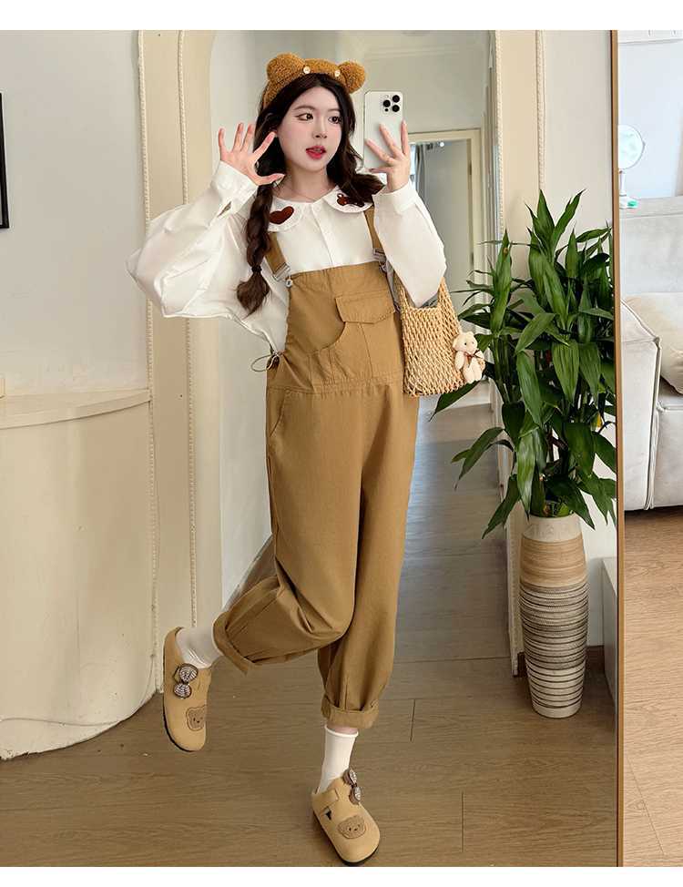 Camisa de maternidad coreana informal de dos piezas con cuello de muñeca dulce, tirantes de mezclilla para embarazadas, primavera 2025