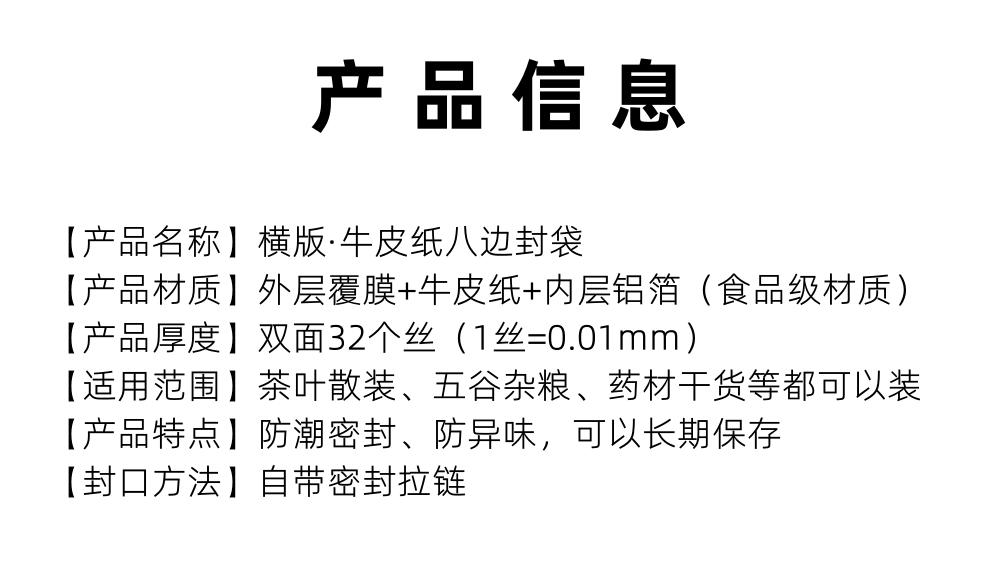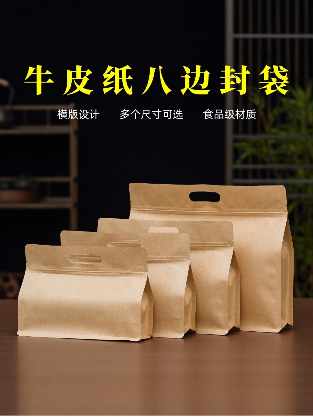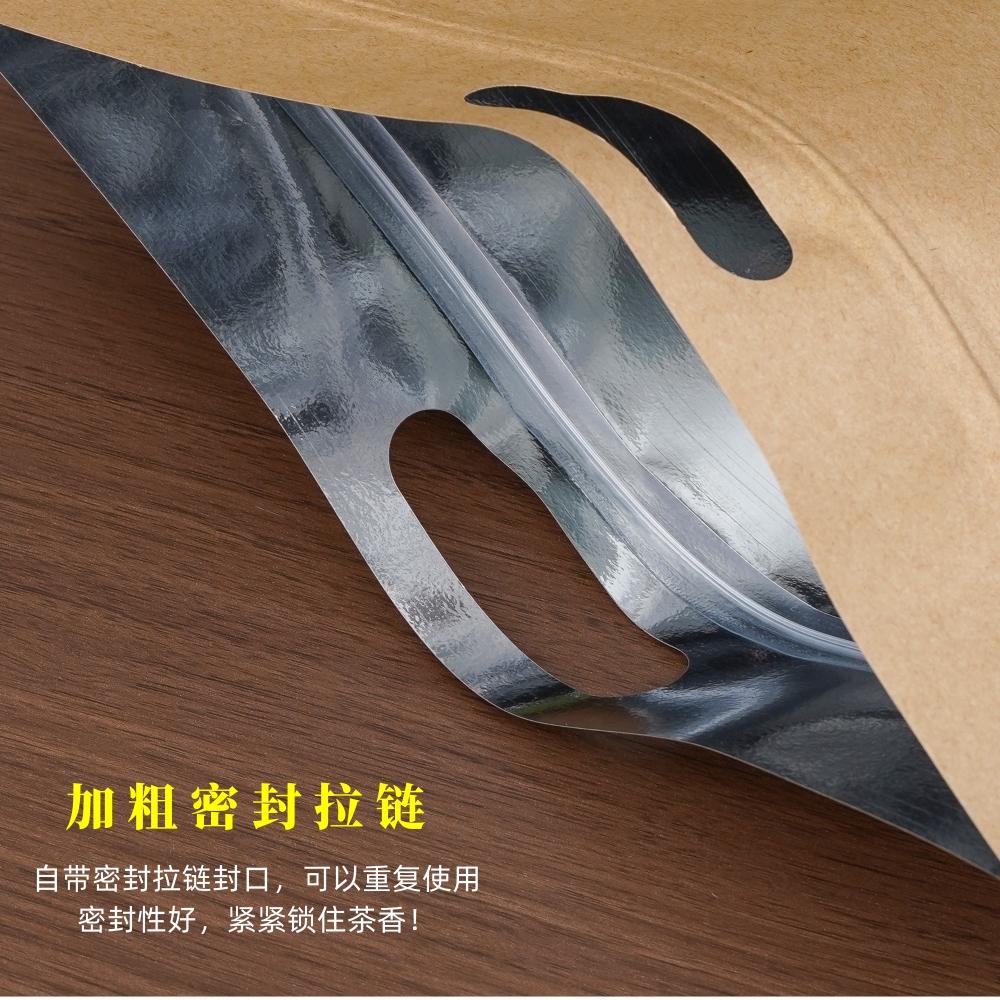 Bolsa de embalaje de té, bolsa de papel kraft, bolsa de té verde, té negro, té a granel, bolsa sellada universal, medio Jin, bolsillo grande, engrosada