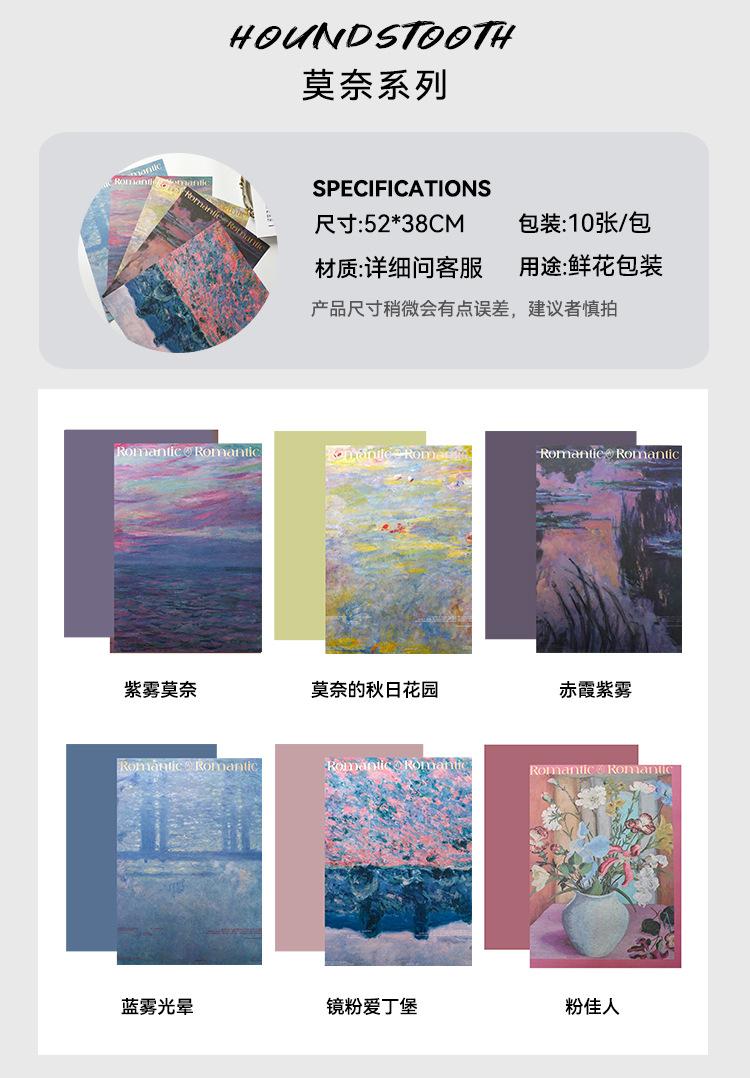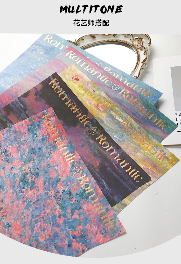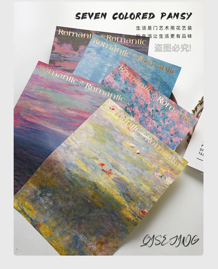 Papel de Envoltura de Control de Color Estilo Pintura al Óleo Serie Pansy Monet Siete Colores Papel de Envoltura Ramo de Flores Floricultura Embalaje de Alta Gama