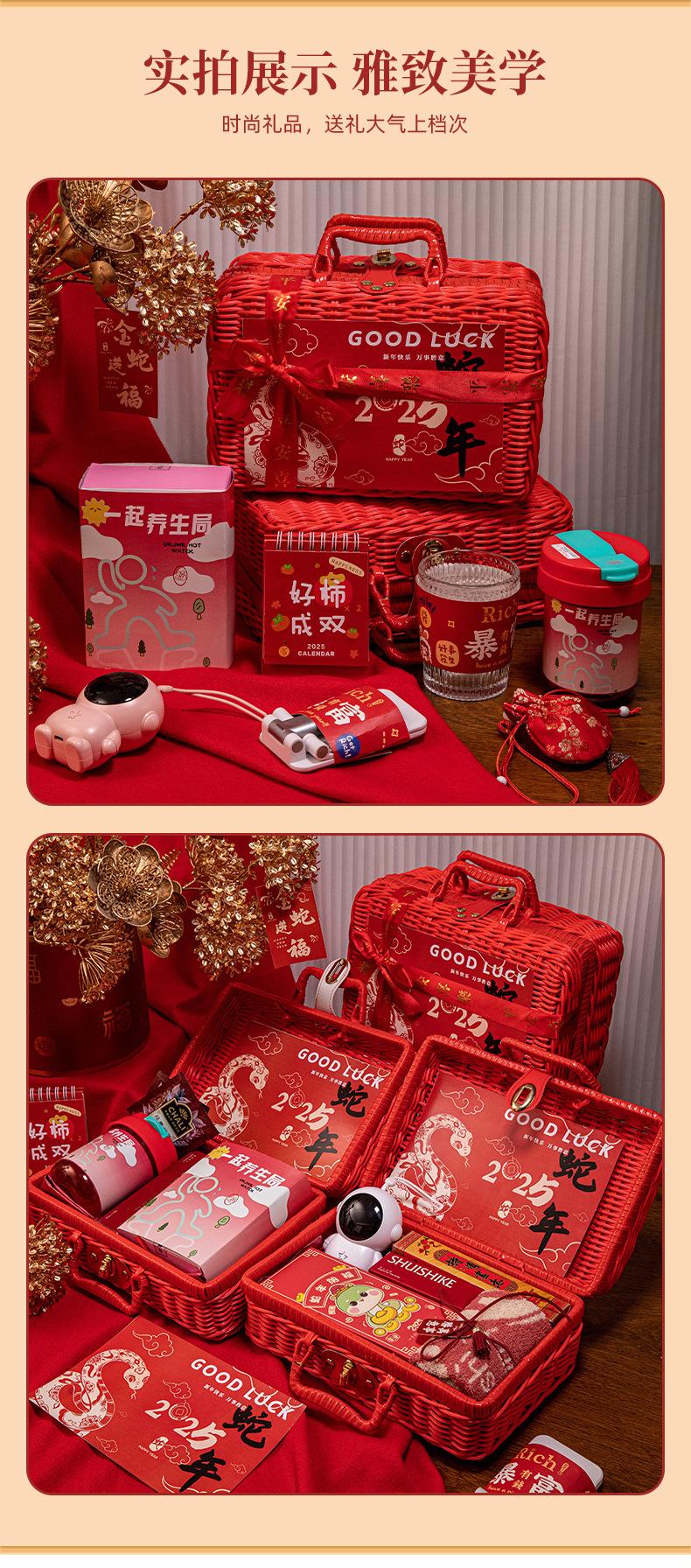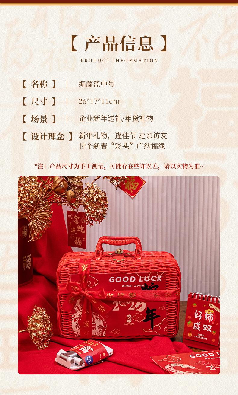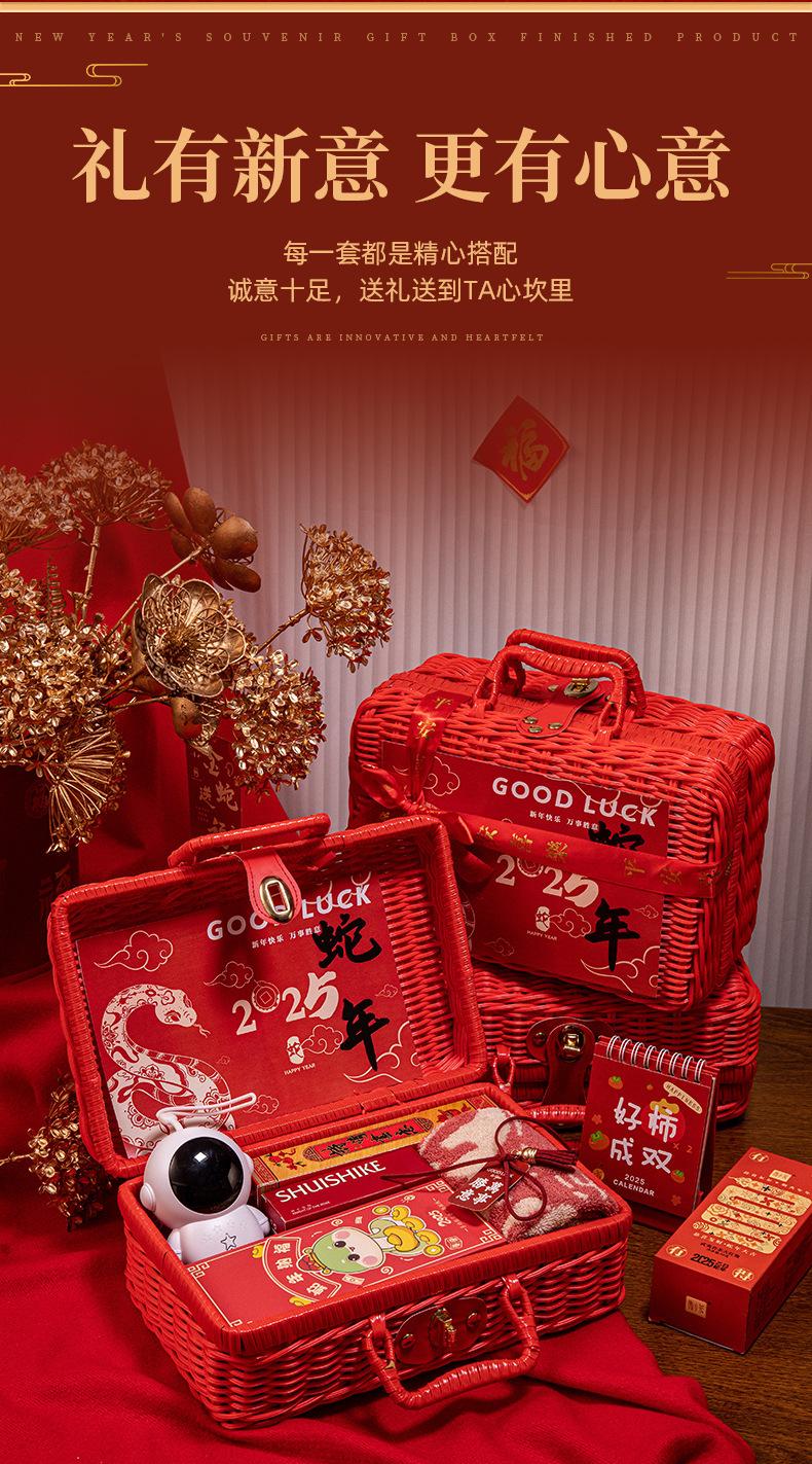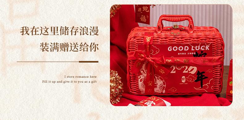 Caja de Regalo de Año Nuevo Caja de Embalaje Tejida de Ratán Galletas Nueces Año Nuevo 2025 Año de la Serpiente Guofeng Tejida Cesta de Regalo Portátil Vacía