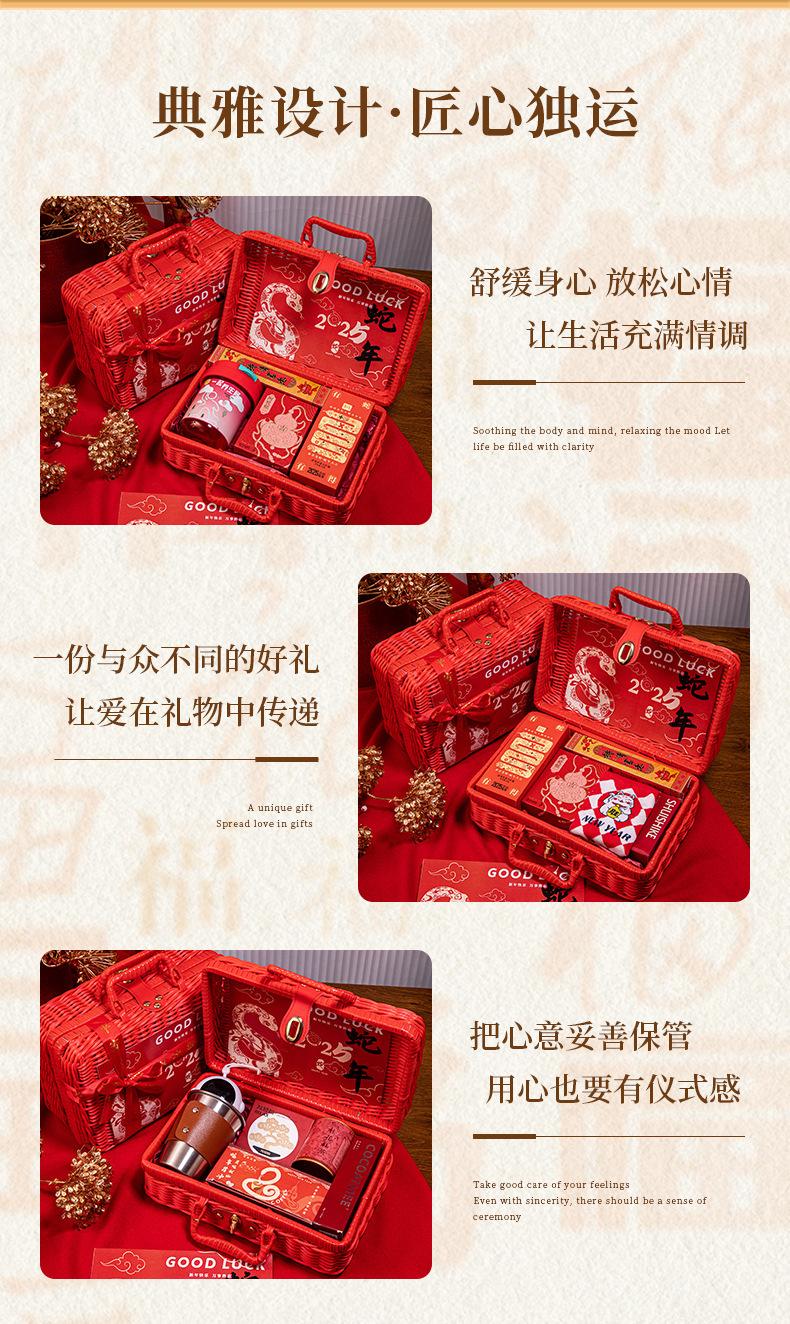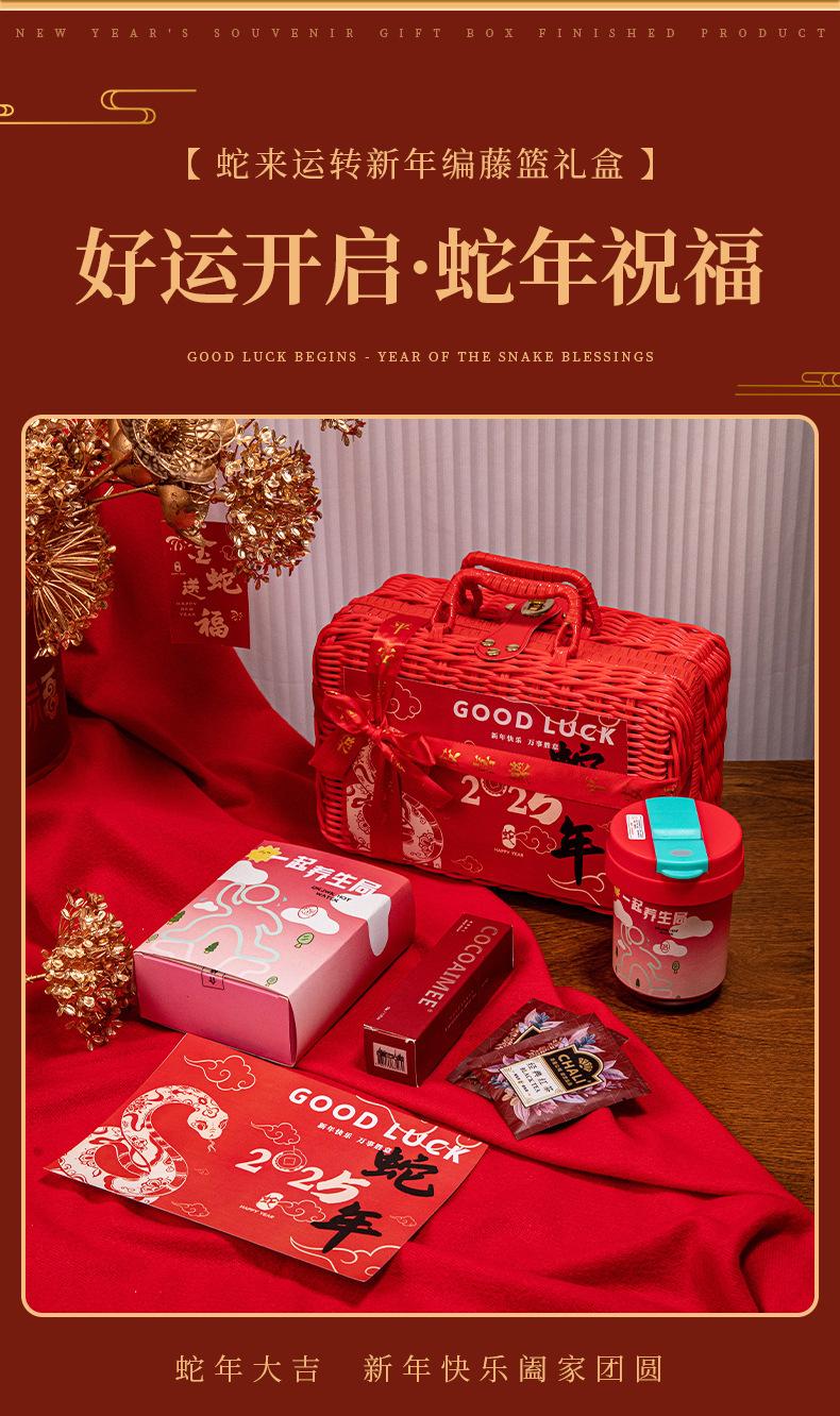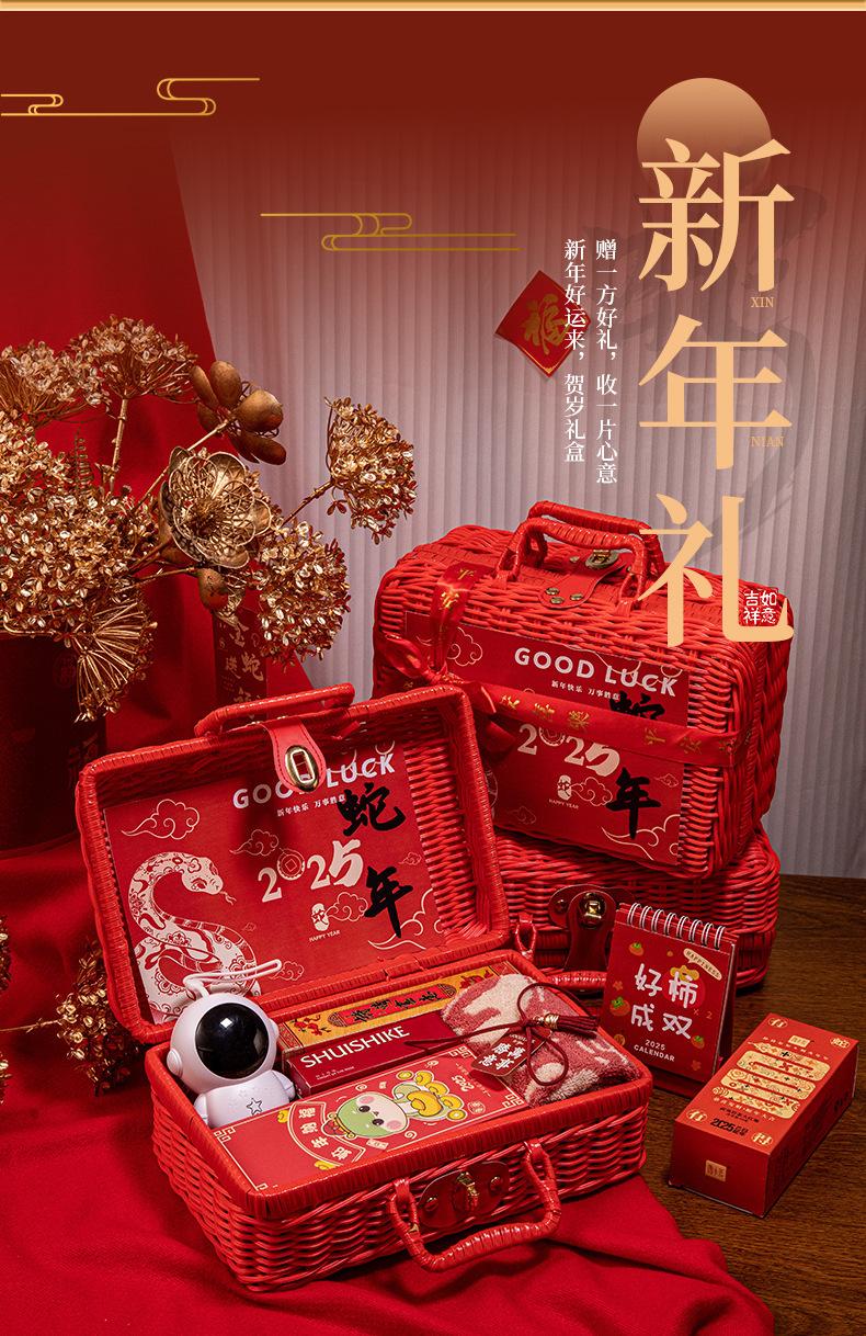 Caja de Regalo de Año Nuevo Caja de Embalaje Tejida de Ratán Galletas Nueces Año Nuevo 2025 Año de la Serpiente Guofeng Tejida Cesta de Regalo Portátil Vacía