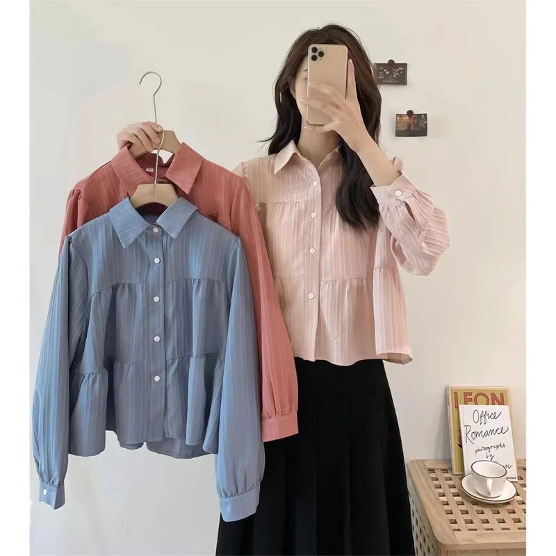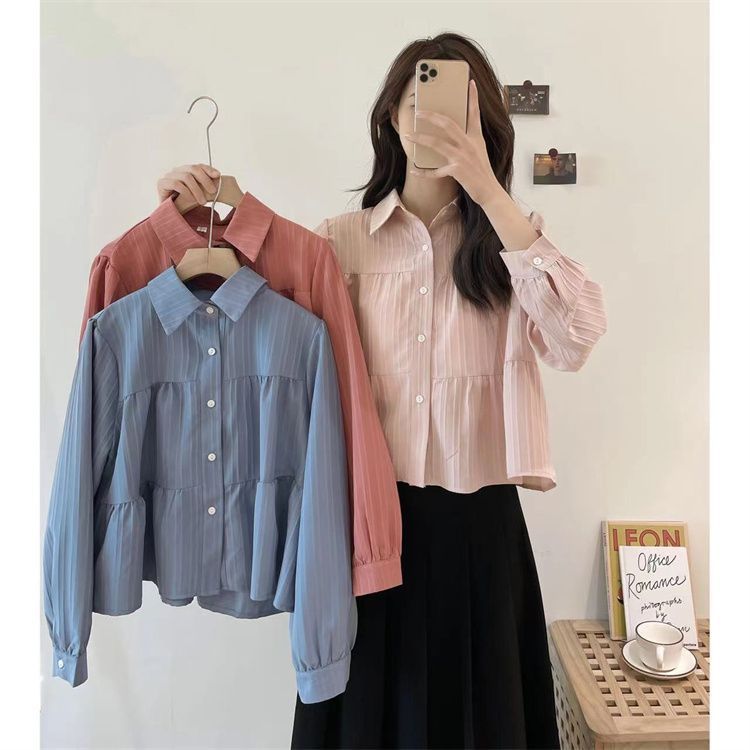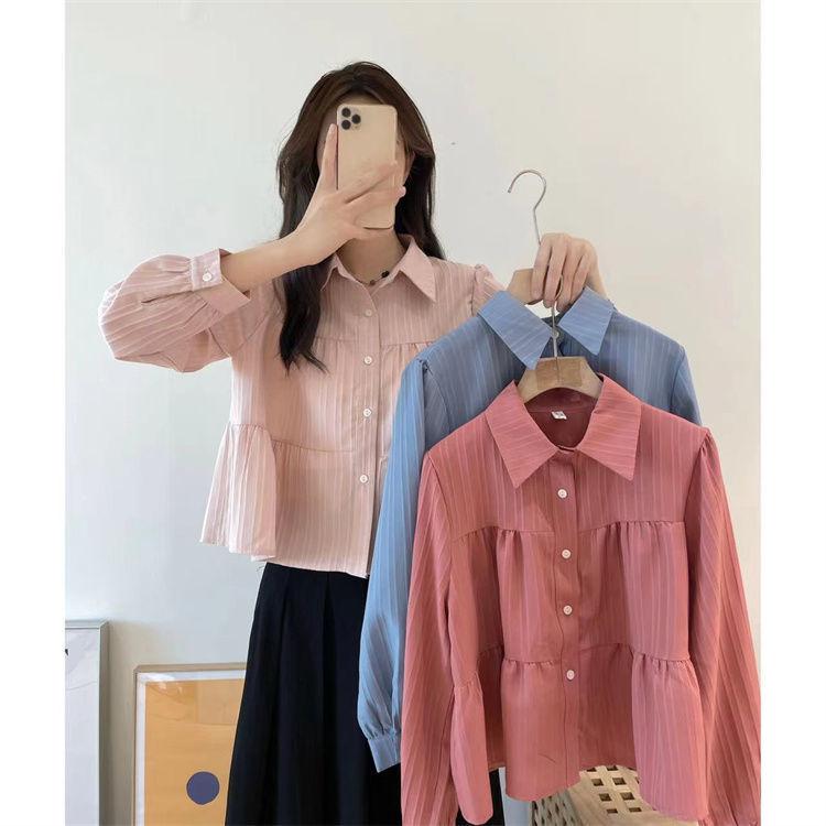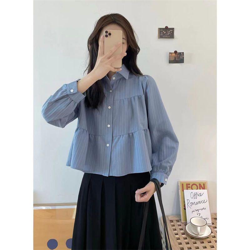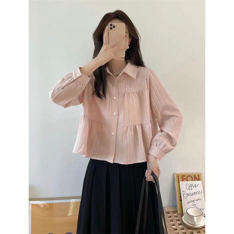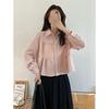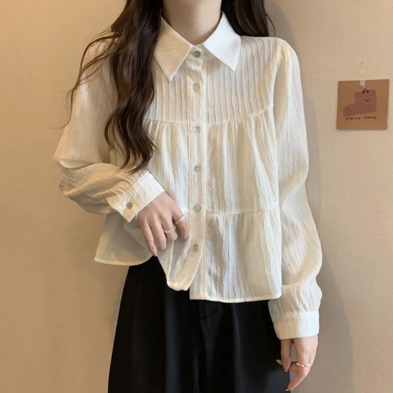 Camisa de muñeca de manga larga con solapa de un solo pecho y diseño francés de estilo coreano de principios de otoño para mujer