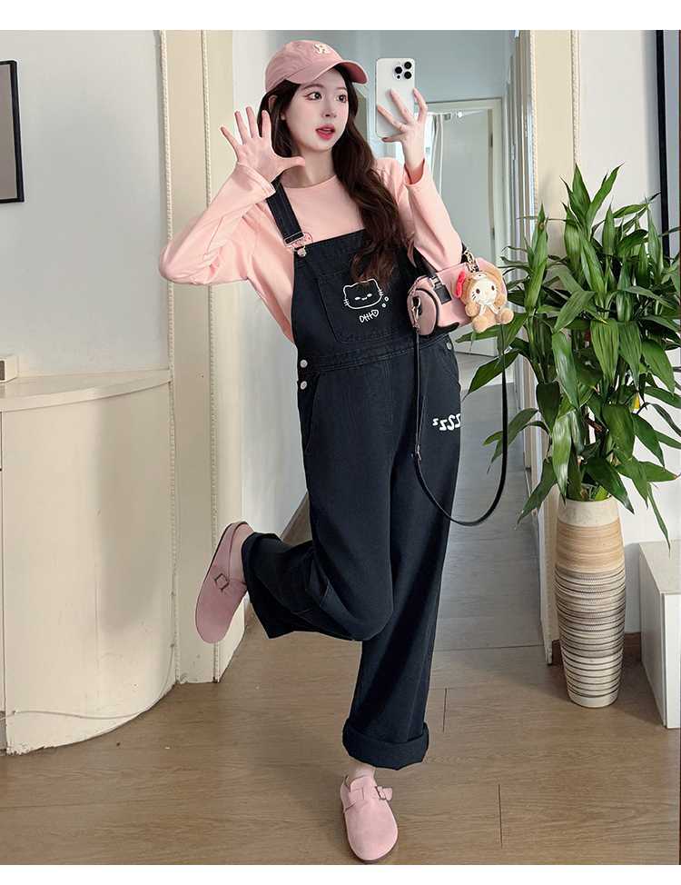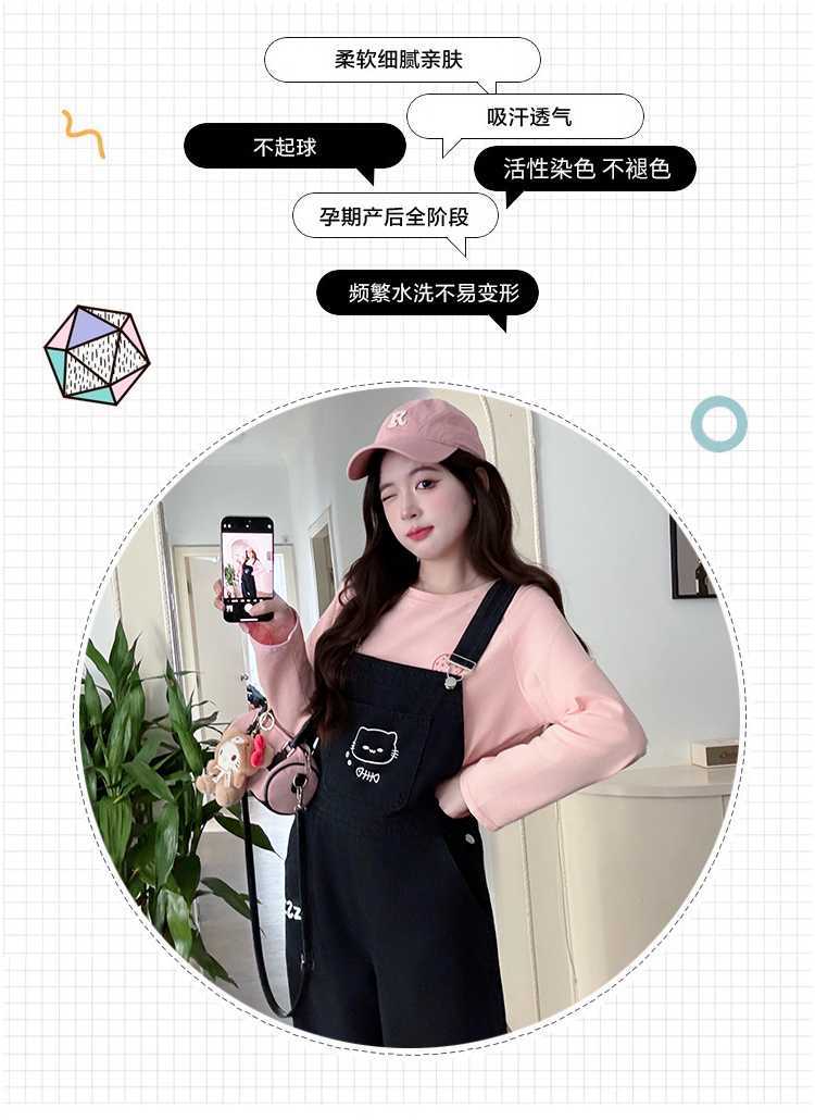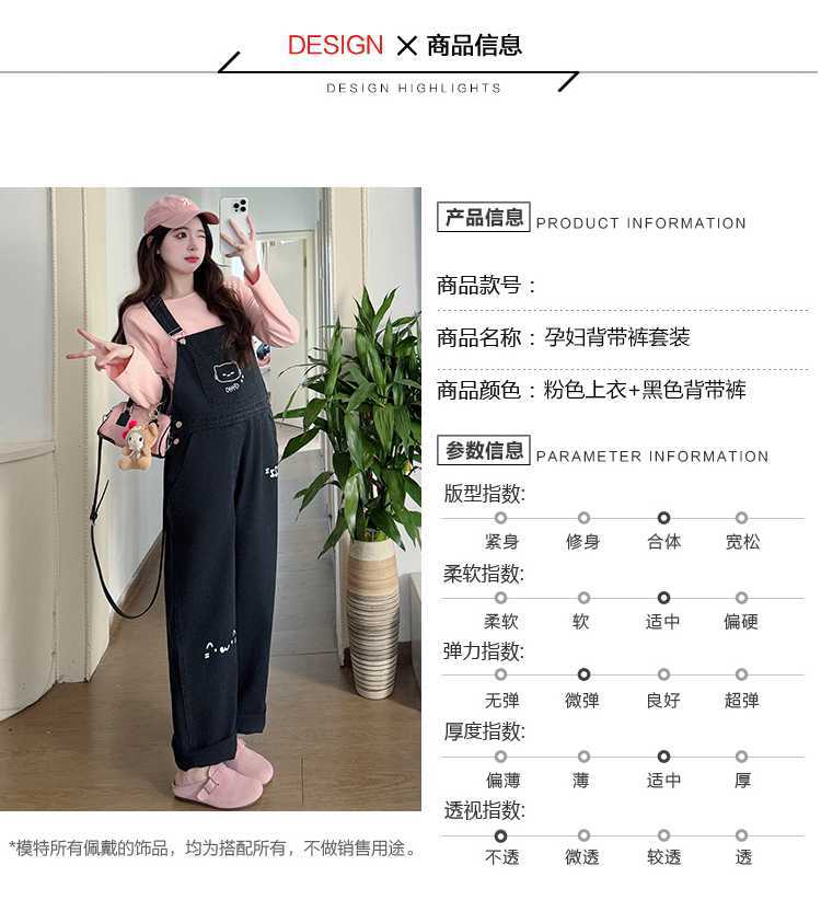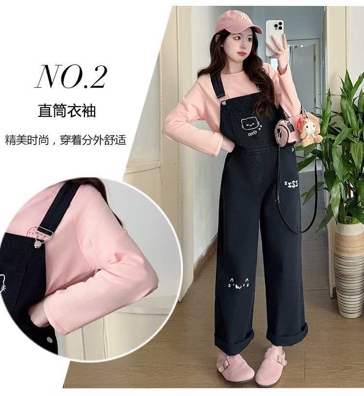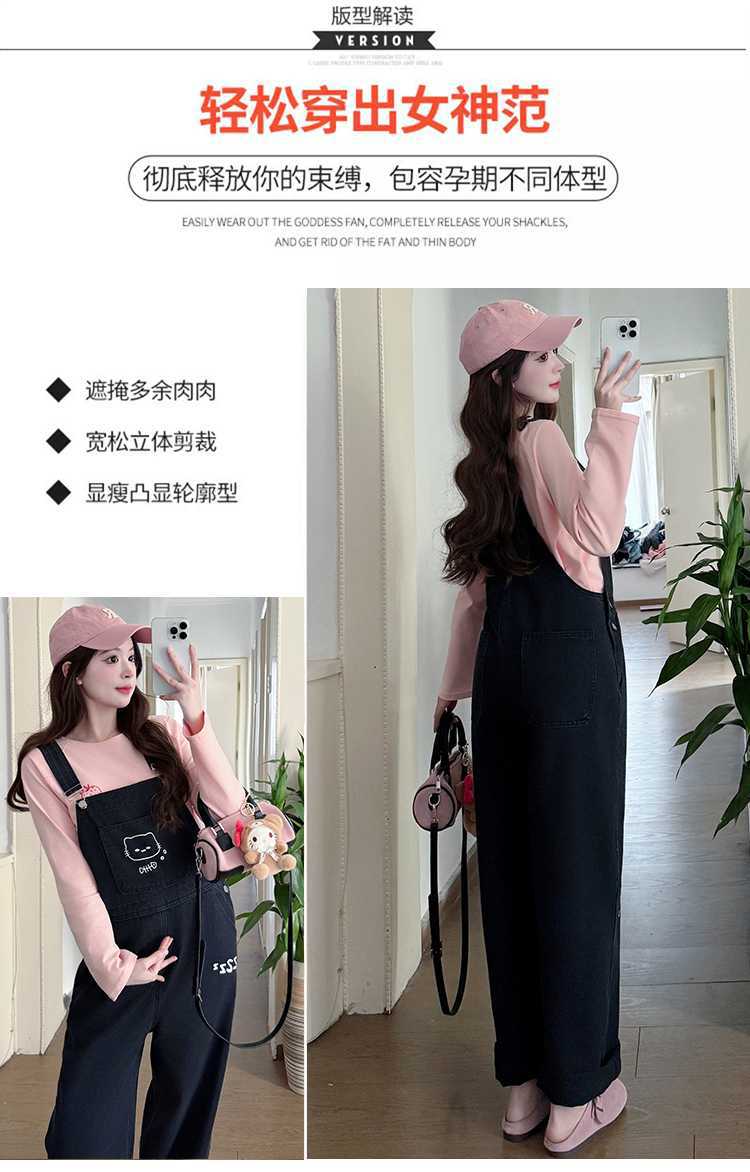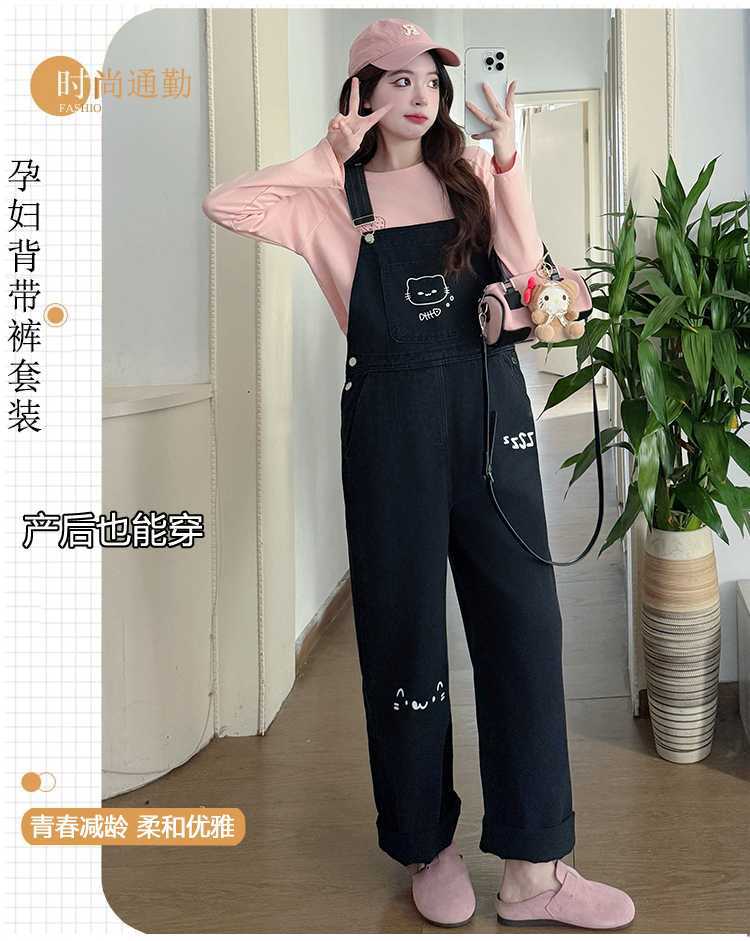 Camiseta de manga larga de dos piezas para embarazadas, sencilla y a la moda, con estampado informal de mezclilla y tirantes, para primavera de 2025