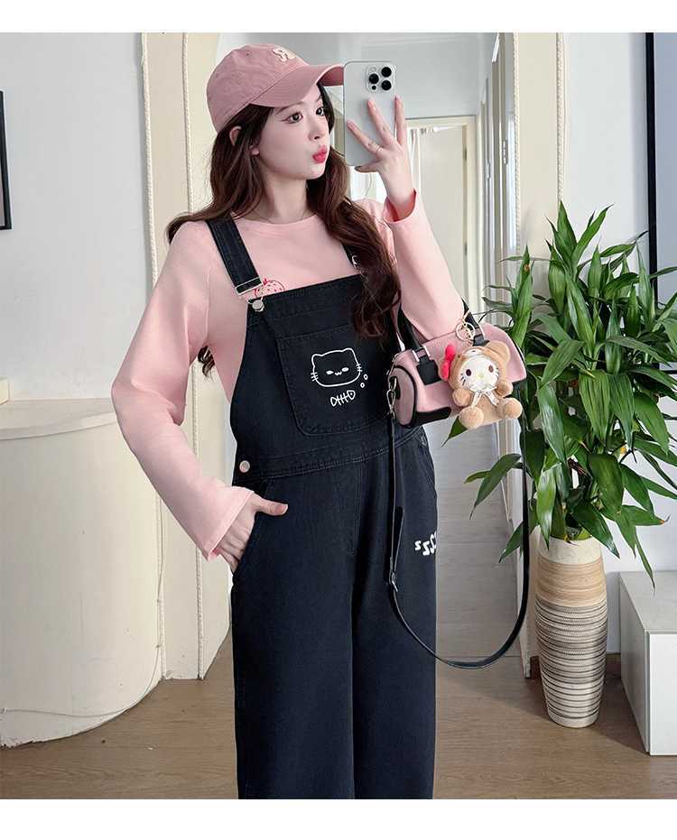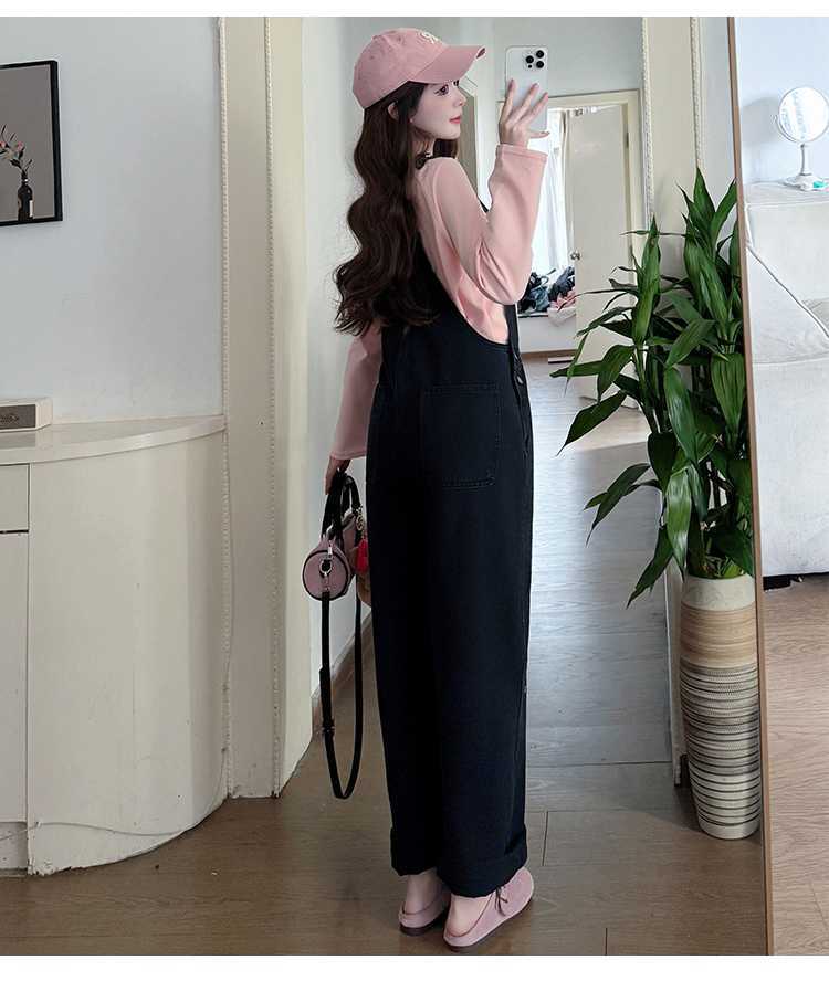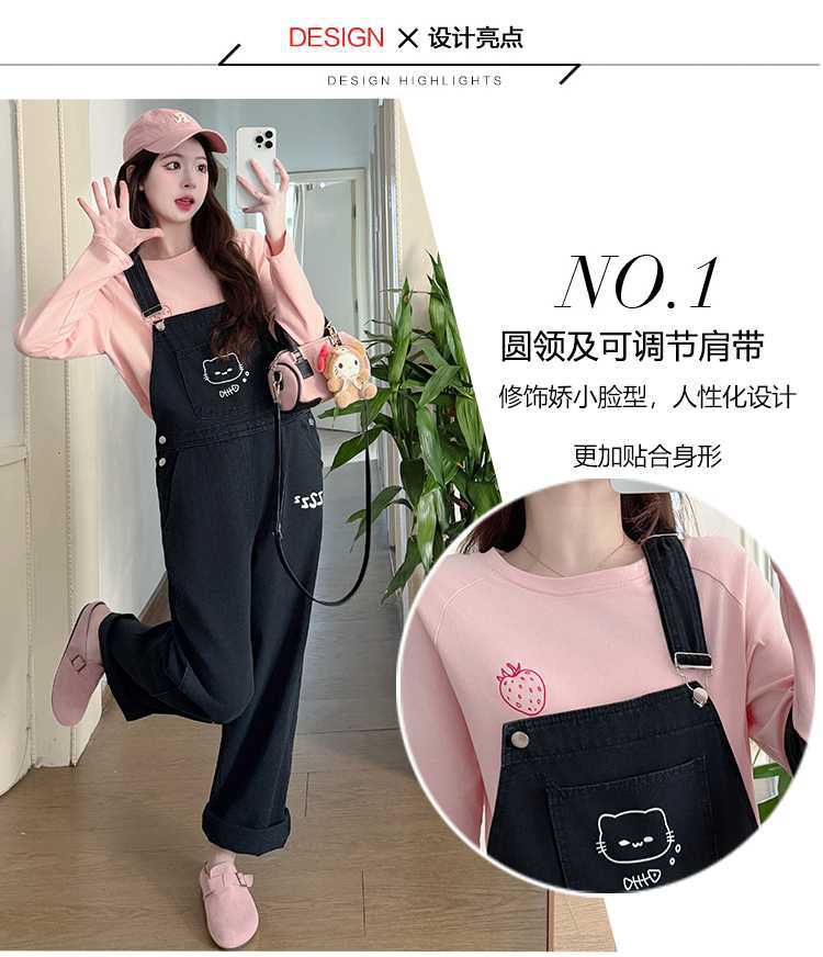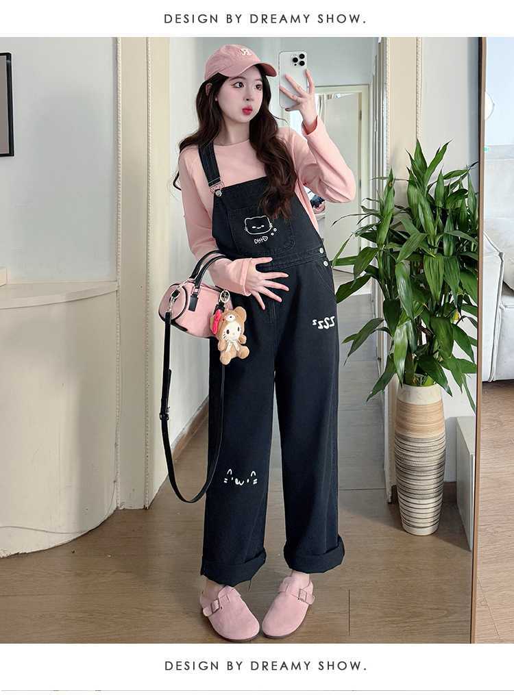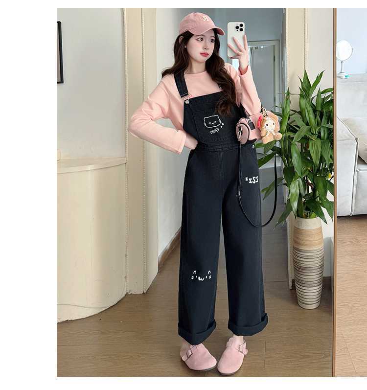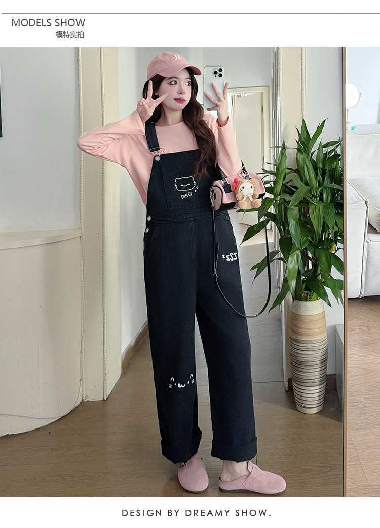 Camiseta de manga larga de dos piezas para embarazadas, sencilla y a la moda, con estampado informal de mezclilla y tirantes, para primavera de 2025