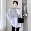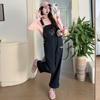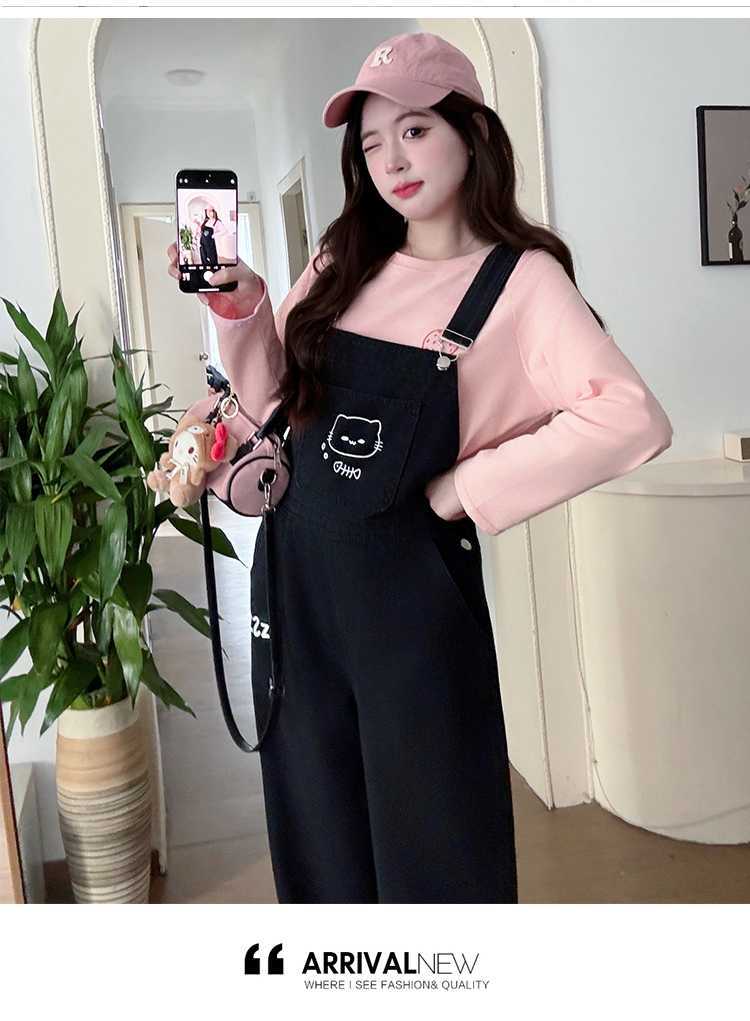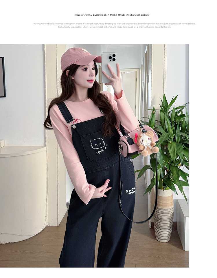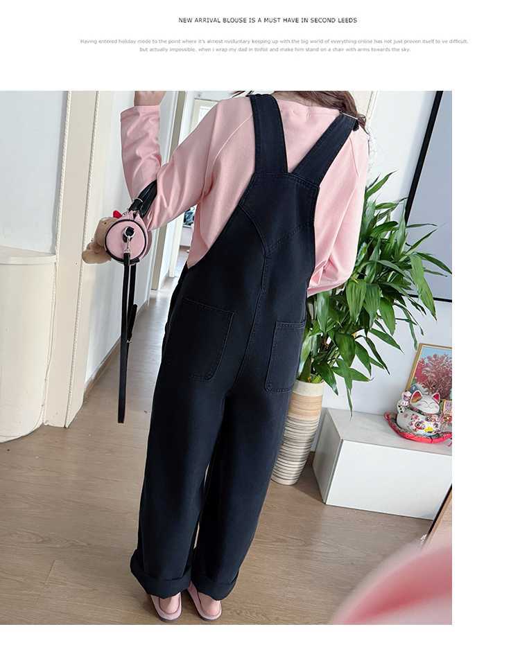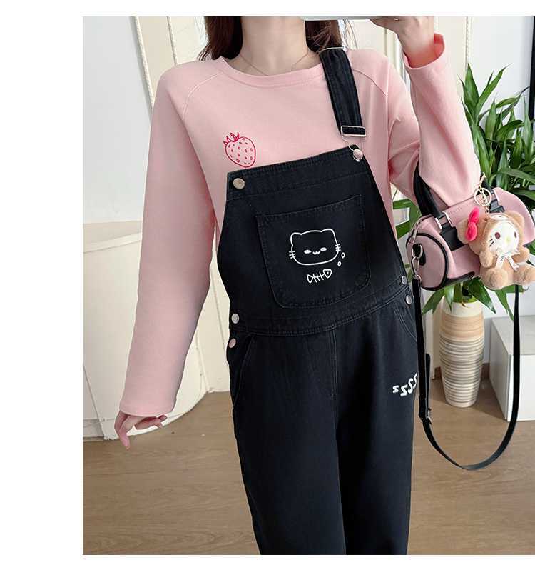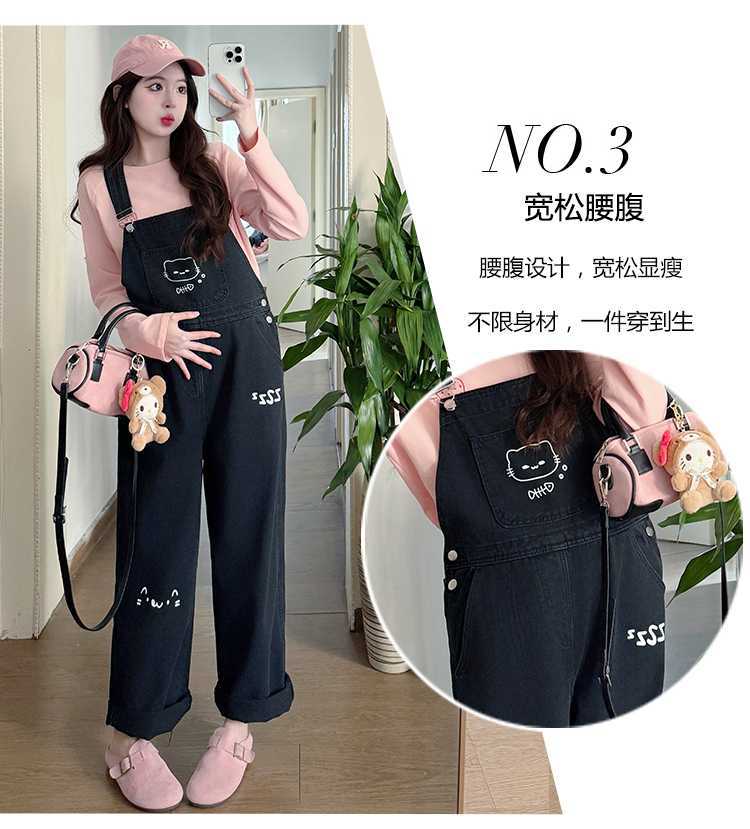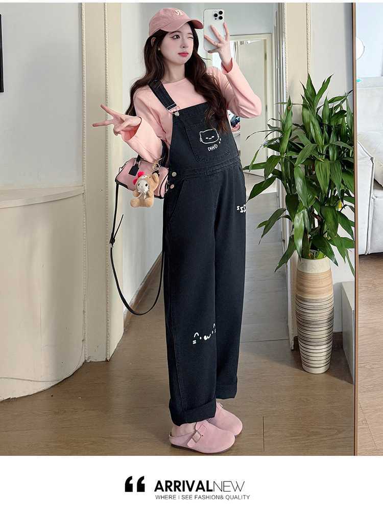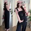 Camiseta de manga larga de dos piezas para embarazadas, sencilla y a la moda, con estampado informal de mezclilla y tirantes, para primavera de 2025