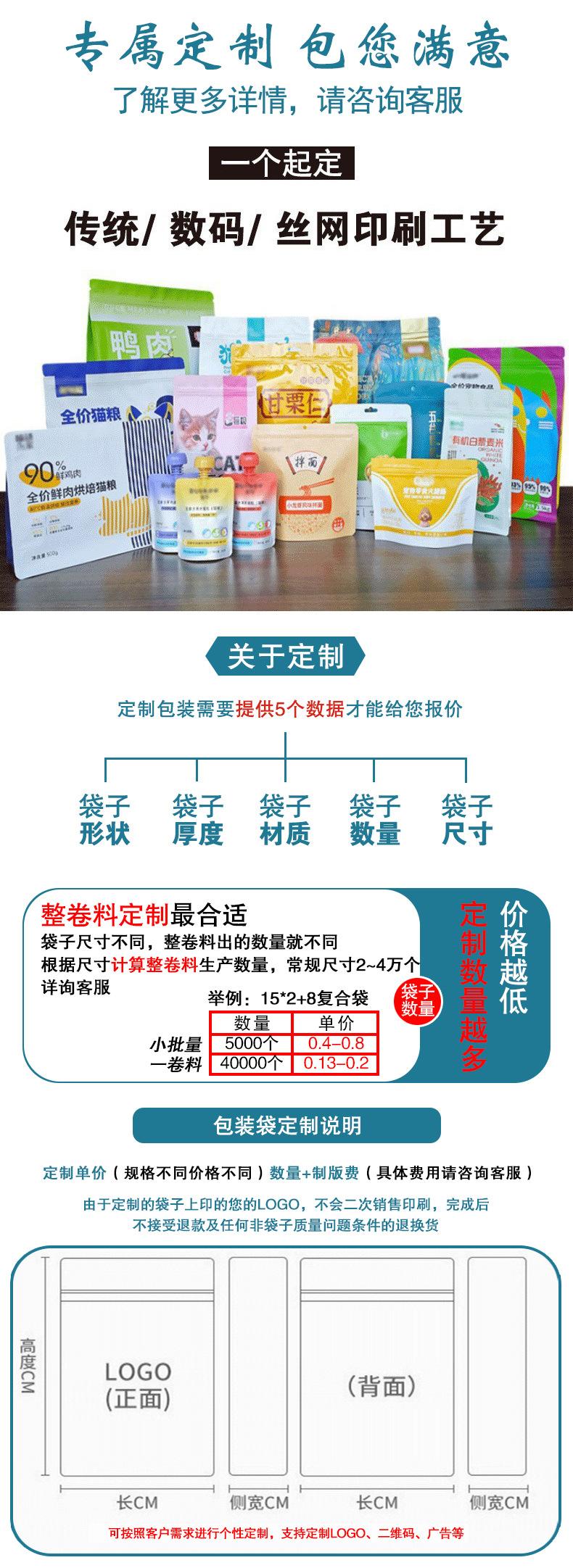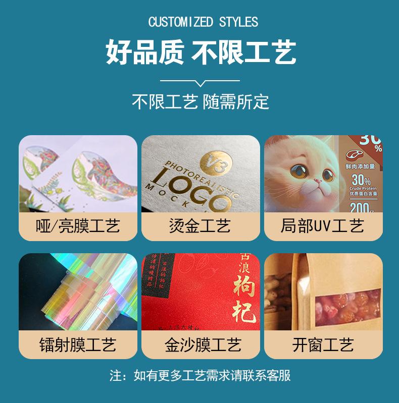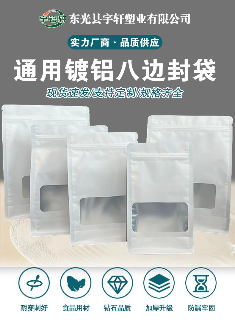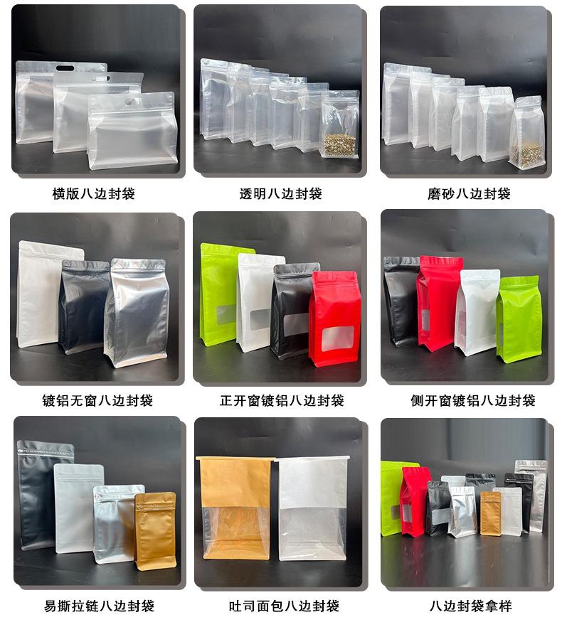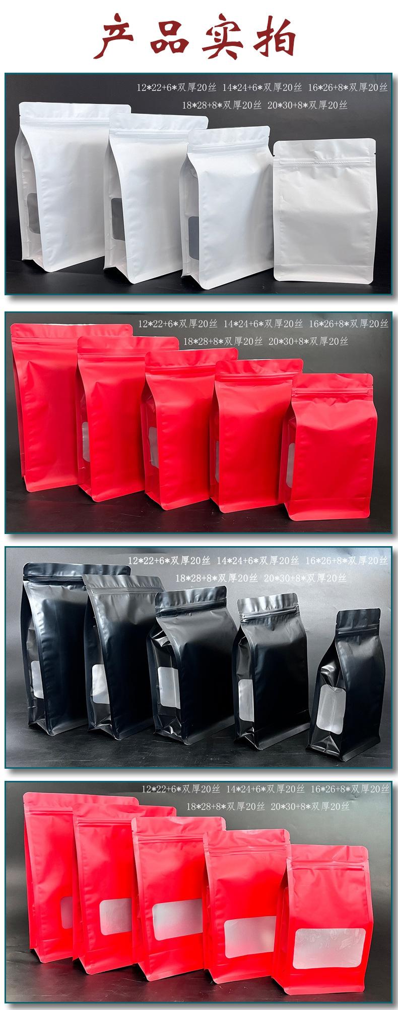Bolsa personalizada blanca con ventana abierta y sello de ocho lados, bolsa para café, bolsa de aluminio autoestable, cebo, alimento para gatos y perros, bolsa sellada, empaque para snacks