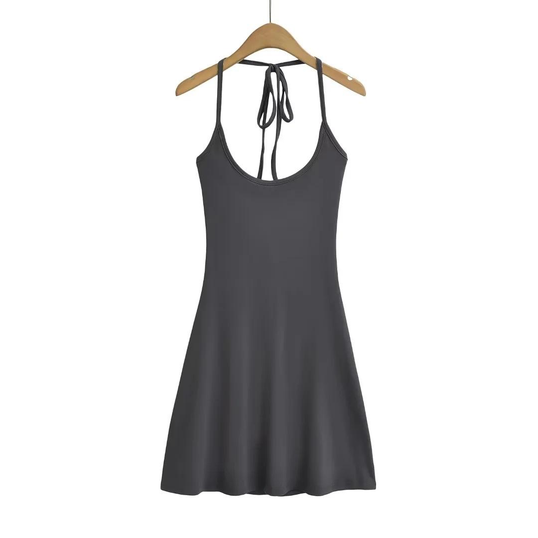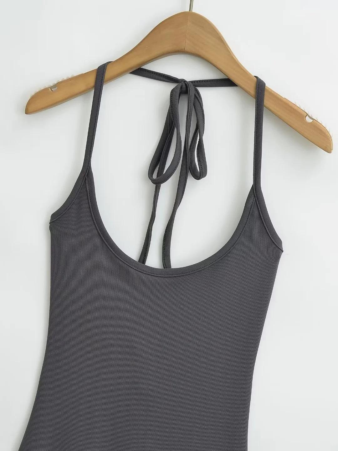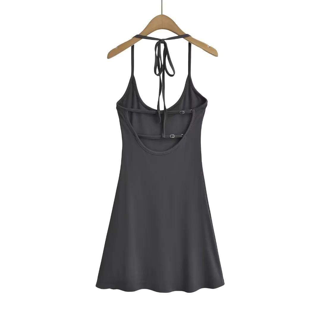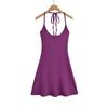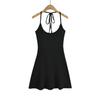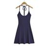 Vestido sin mangas con cuello halter, espalda descubierta y cintura marcada, ropa Gongyi